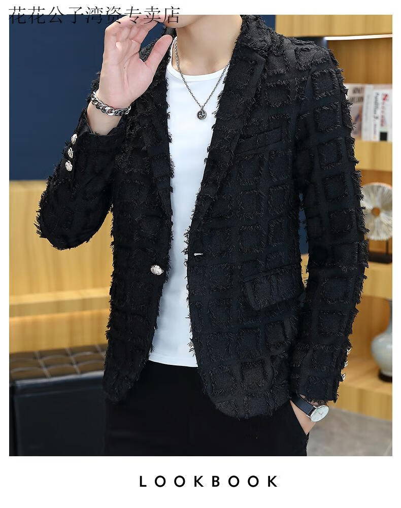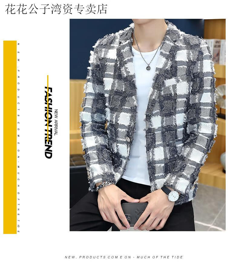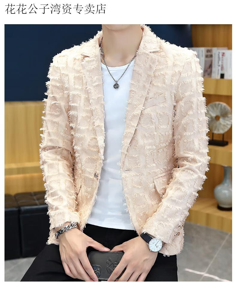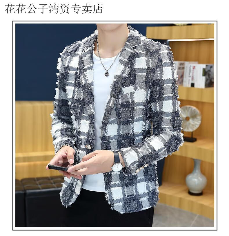 Playboy (PLAYBOY) suit jacket men's spring and autumn hairstylist slim nightclub handsome small suit Korean style trendy raw edge design top Gray L Recommended weight 110-125 Jin Jin equals 0.5 kg