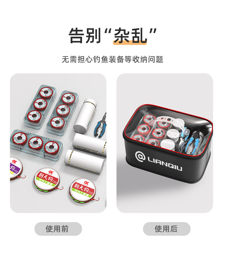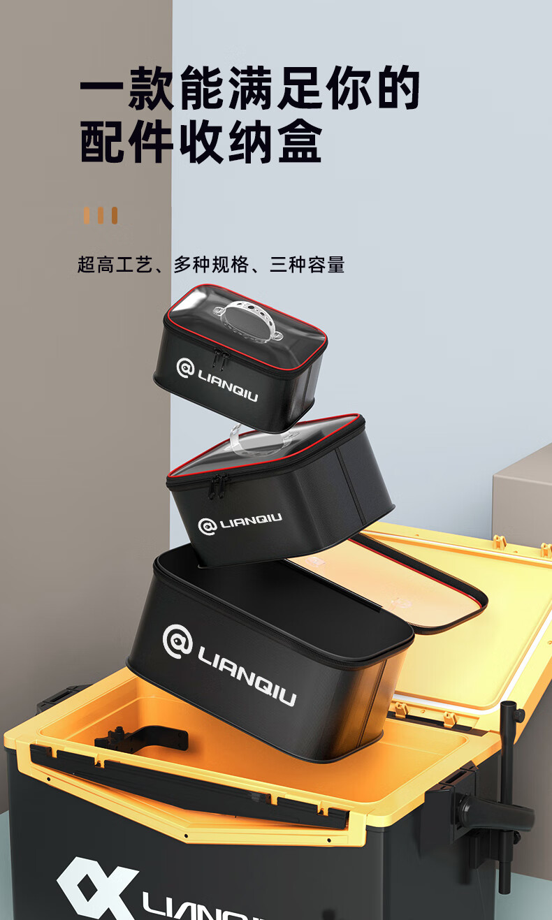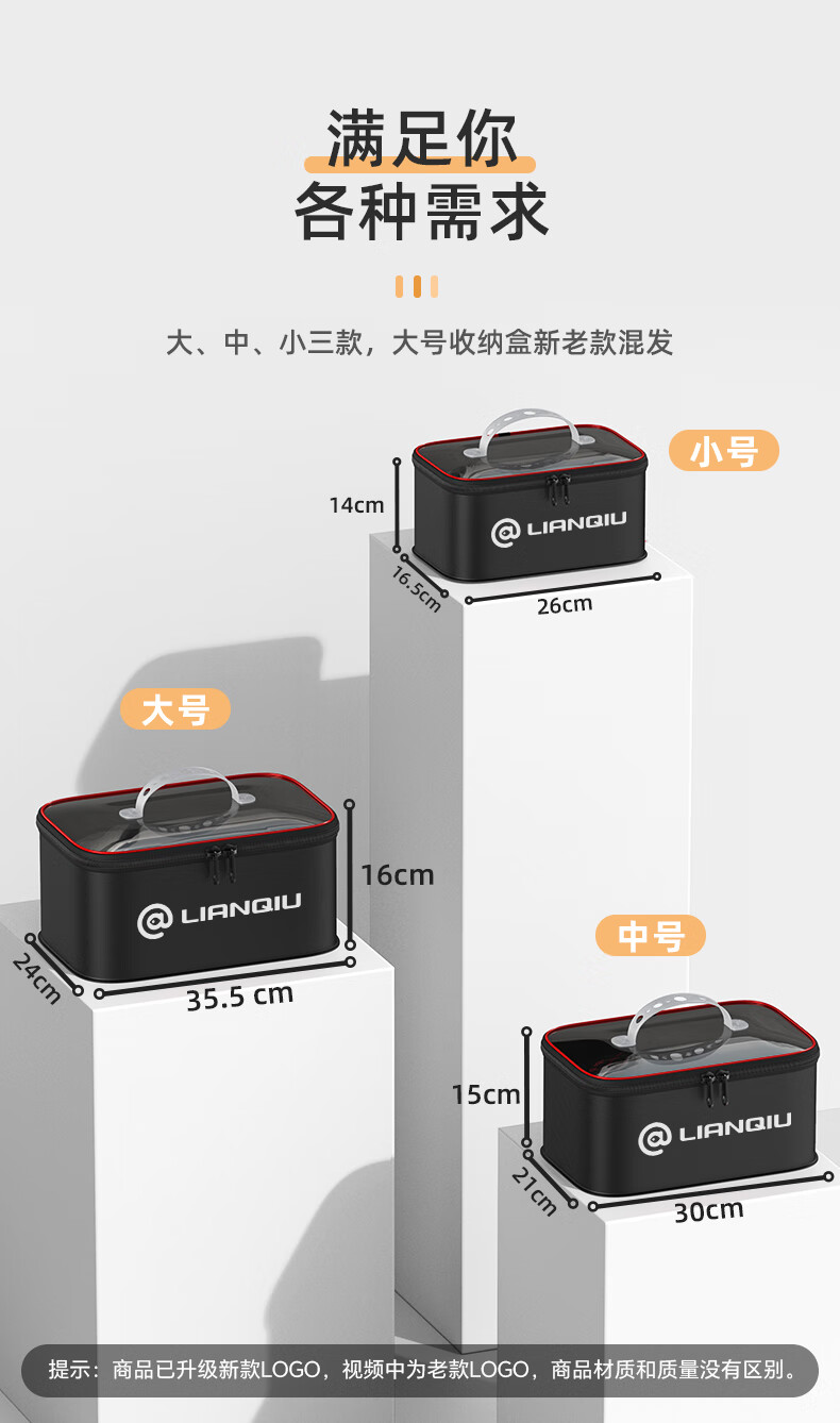 LIANQIU fishing accessories storage box multi-functional fishing gear box Luya fish hook small bait box tool bag fishing box supplies EVA storage box----Small size (black)