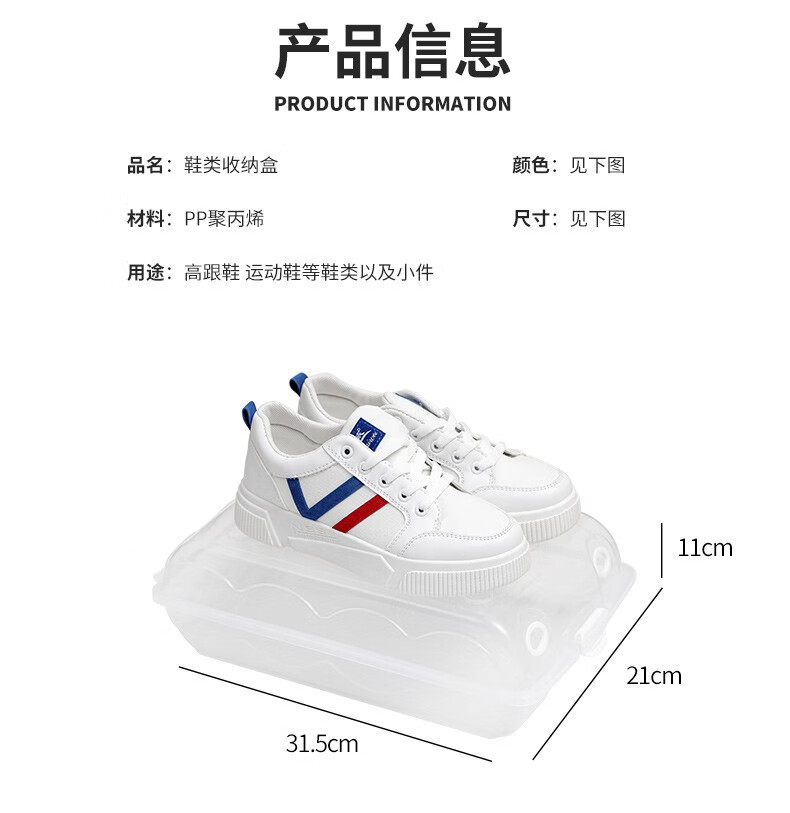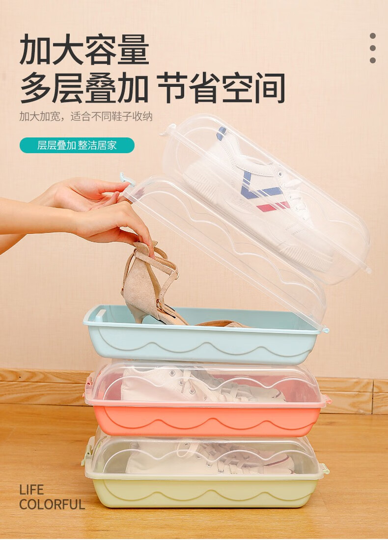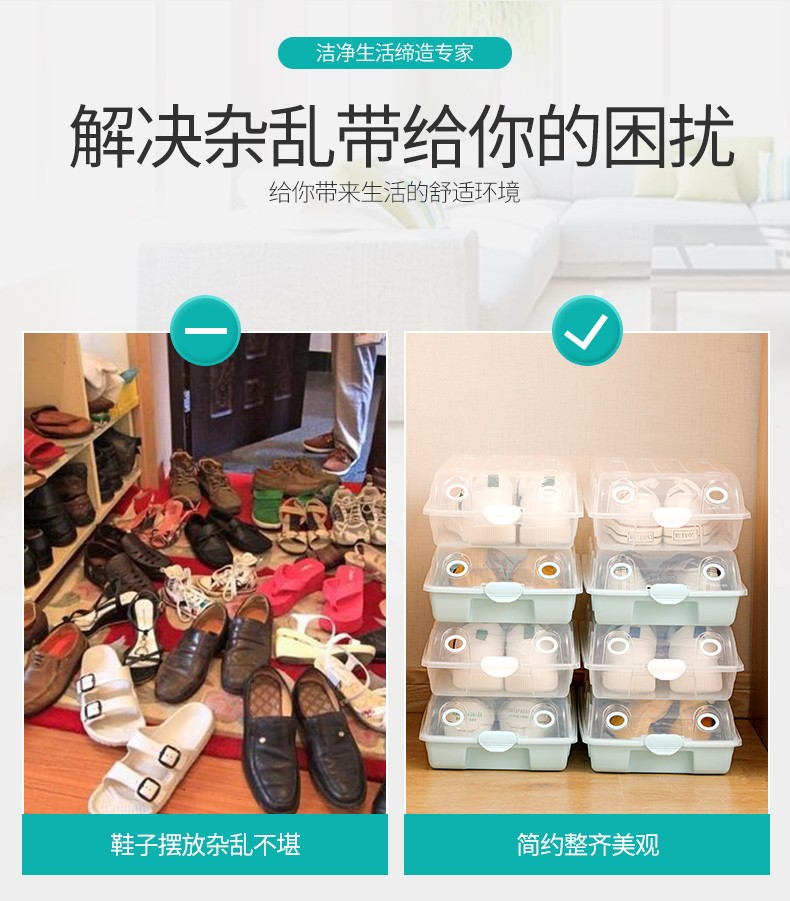 Youwu thickened plastic storage box, transparent drawer-type artifact shoe storage box, shoe cabinet organizer box, simple shoe rack, men's shoes 36.5*22.5*13cm, 39-41 sizes, transparent color, 5 pcs