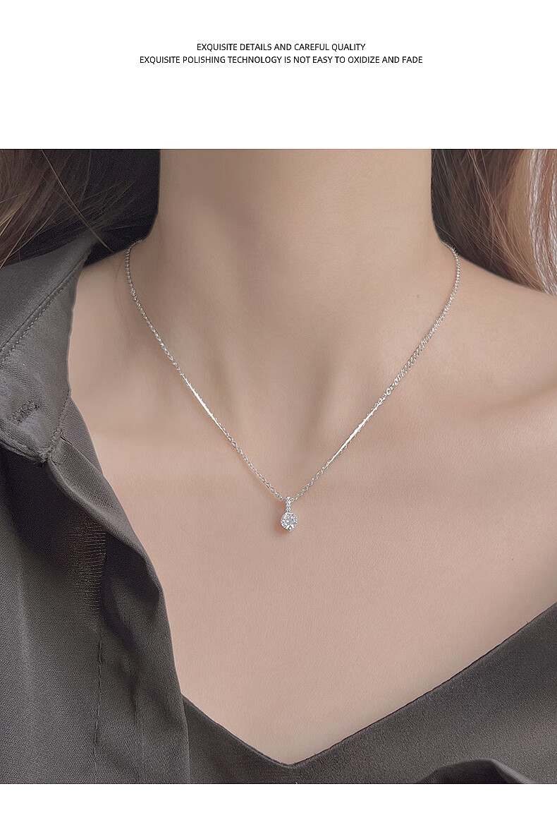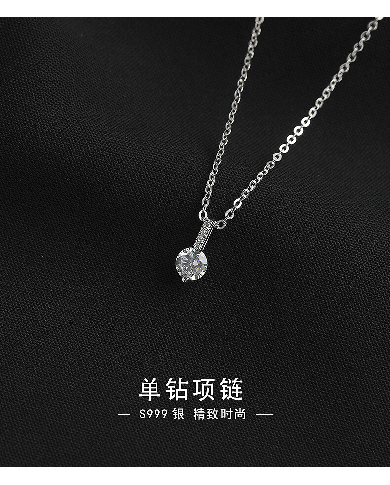 Centenary-old Fenxiang S999 Pure Silver Single Diamond Necklace Women's Light Luxury Niche Design Necklace 2025 New Style Simple Single Diamond Necklace S999 Pure Silver