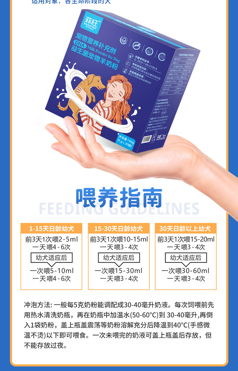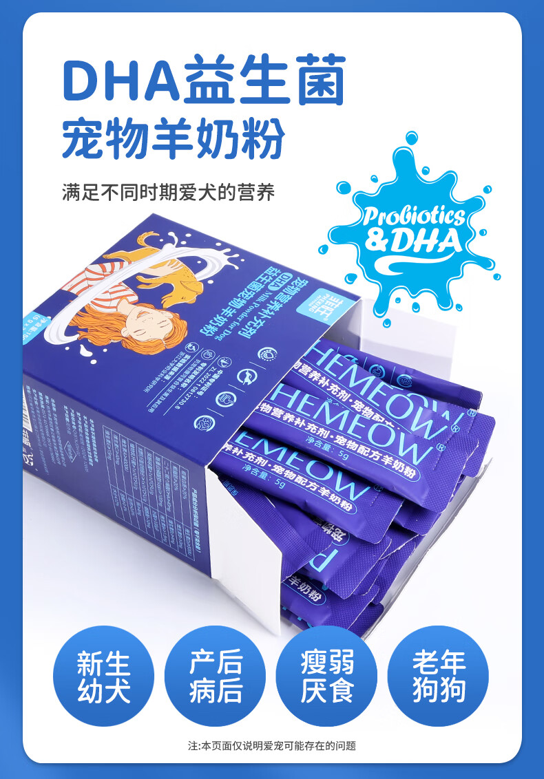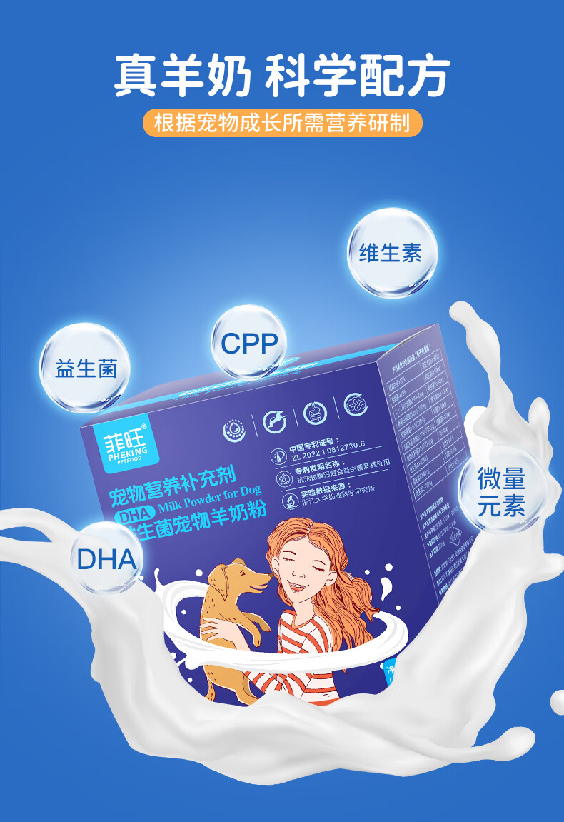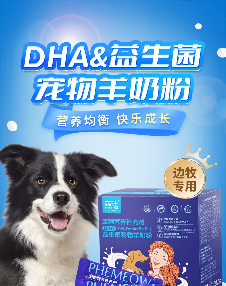 Fei Meow Border Collie Special Goat Milk Powder Dog Puppy Full Month 2-12 Months Shepherd Dog Nutrition (0-3 Months) Buy 2 Get 2 Free, 4 Boxes of Goat Milk Powder
