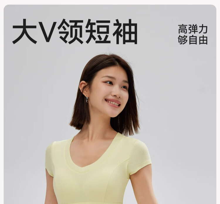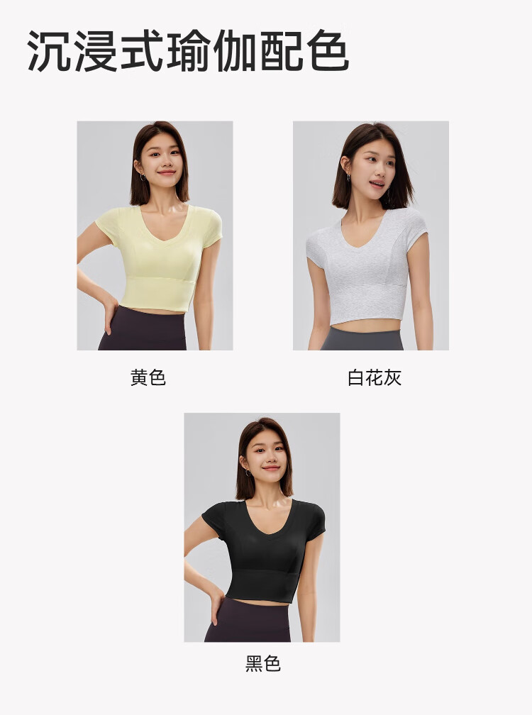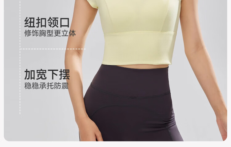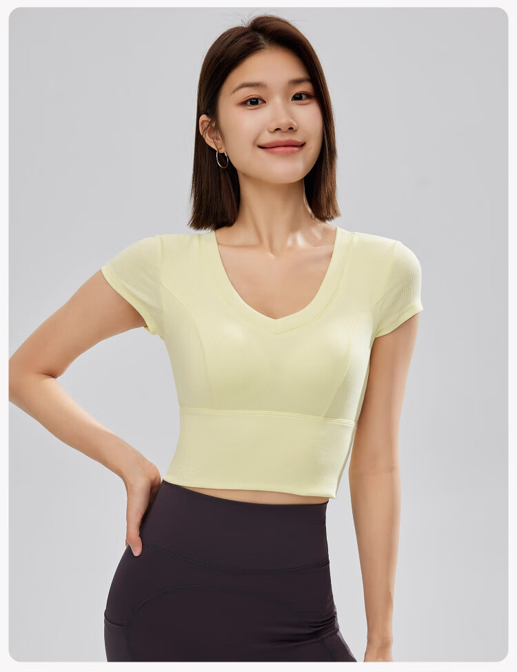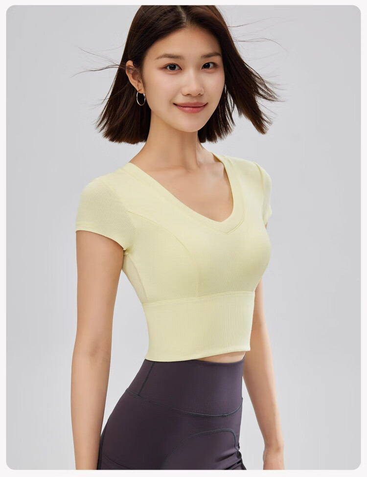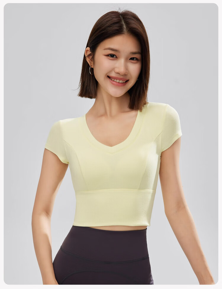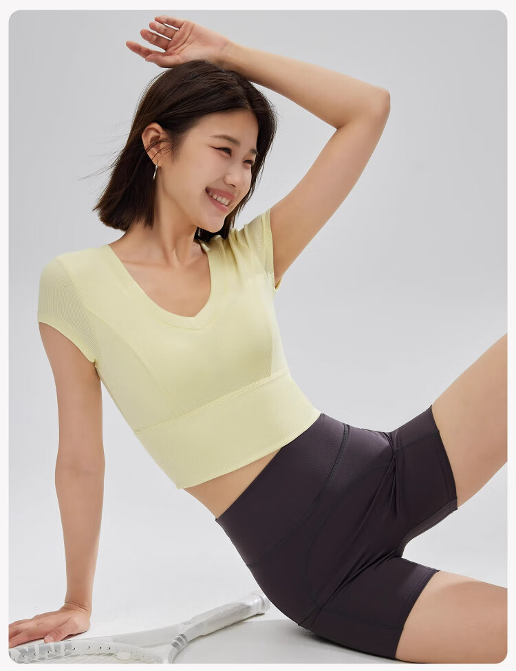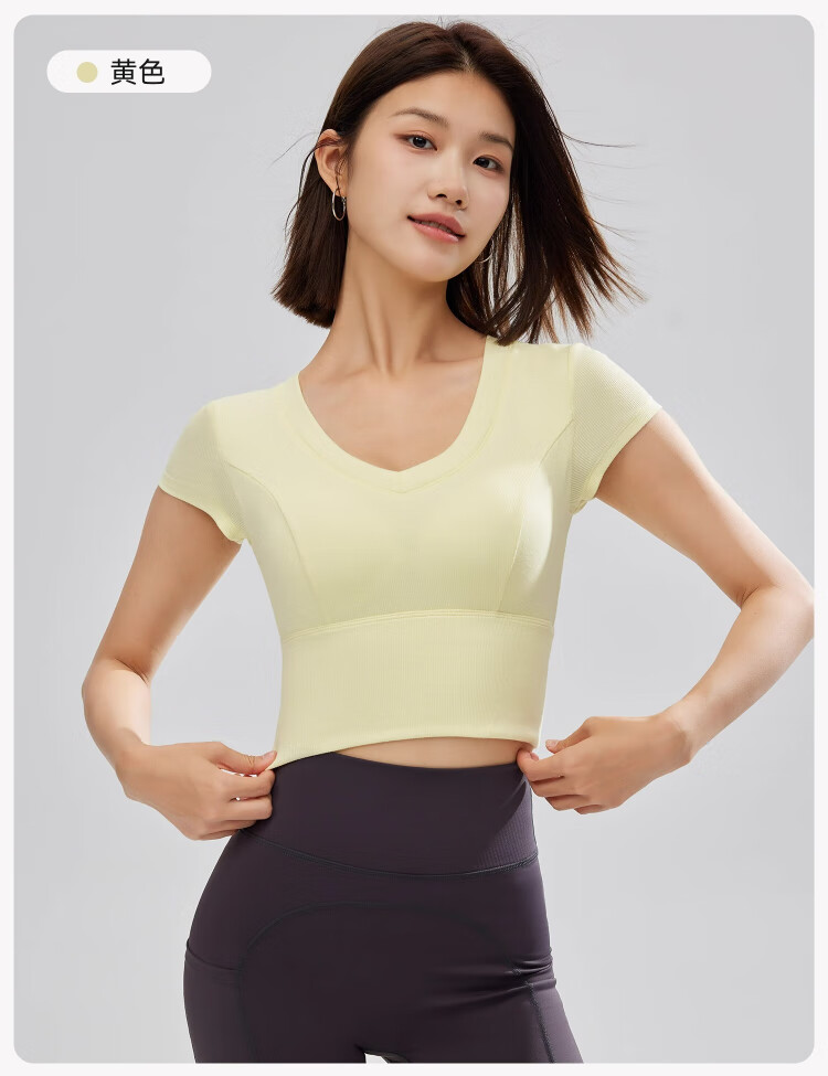 NEVER ME Sports T-shirt Women's Breathable Breathable Padded Short Slim Fit Pilates Running Fitness Wear Top Yellow M
