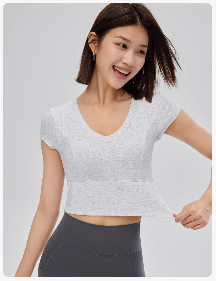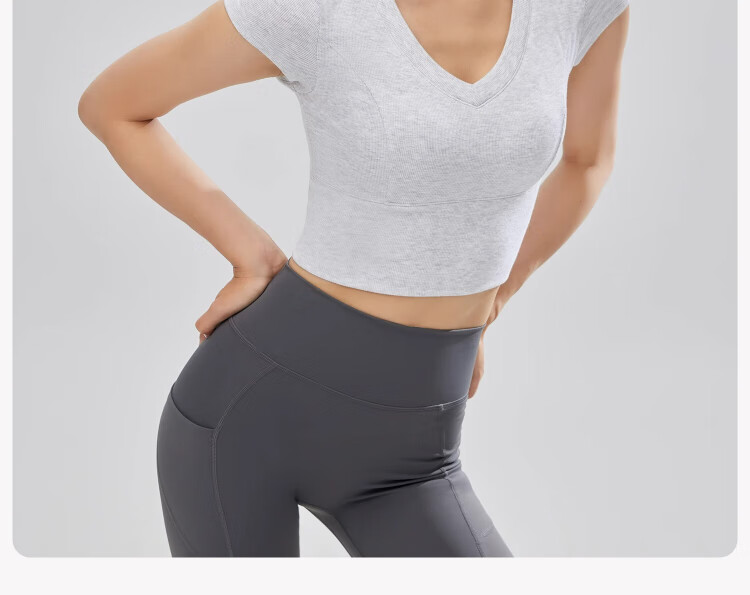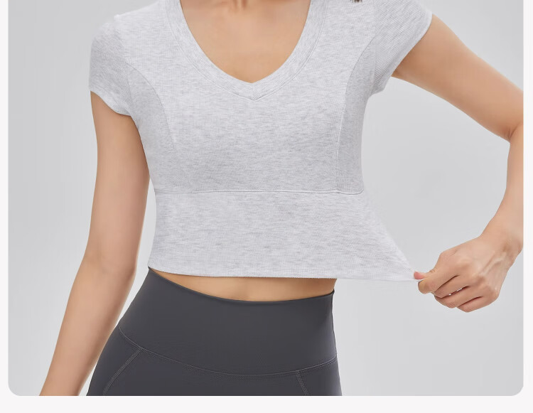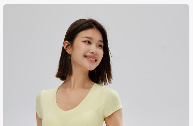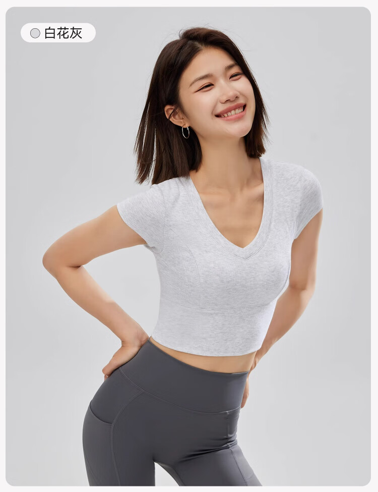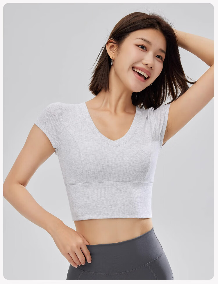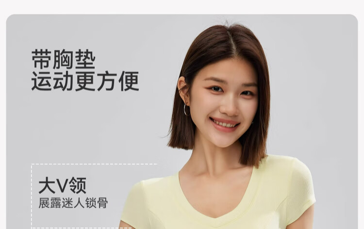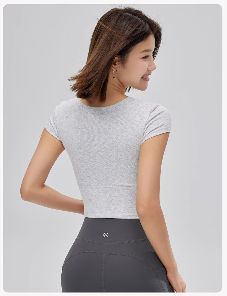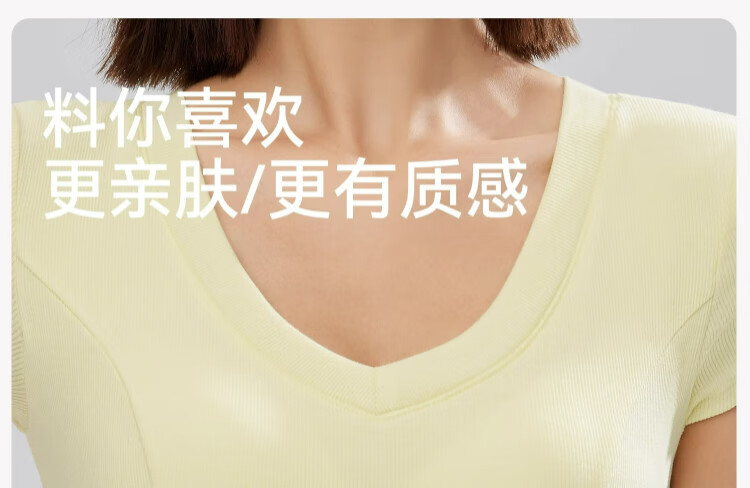 NEVER ME Sports T-shirt Women's Breathable Breathable Padded Short Slim Fit Pilates Running Fitness Wear Top Yellow M