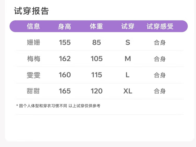 China (cm) 160-165/84-86 165-170 / 88-90 167-172 / 92-96 168-173 / 98-102 170-176 / 106-110