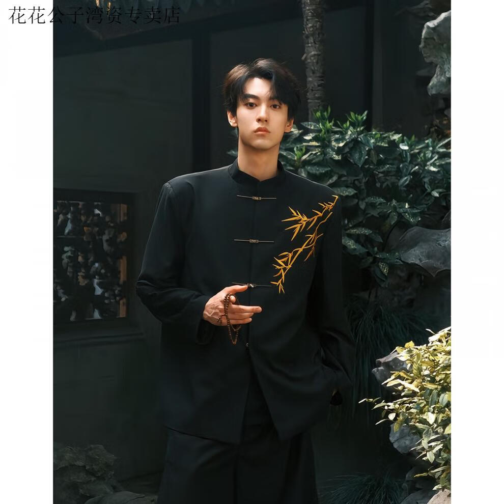 Playboy (PLAYBOY) New Chinese Style Adult Ceremony Suit Chinese Style Golden Bamboo Embroidery Mao Suit Men's Stand Collar Suit Jacket Engagement Golden Suit Golden Bamboo M (Suitable for 100-115 Jin Jin equals 0.5 kg)