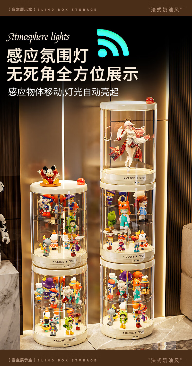 GOTO labubu storage box rotating blind box display stand transparent labubu vinyl doll display cabinet ladder basic rotating blind box storage box