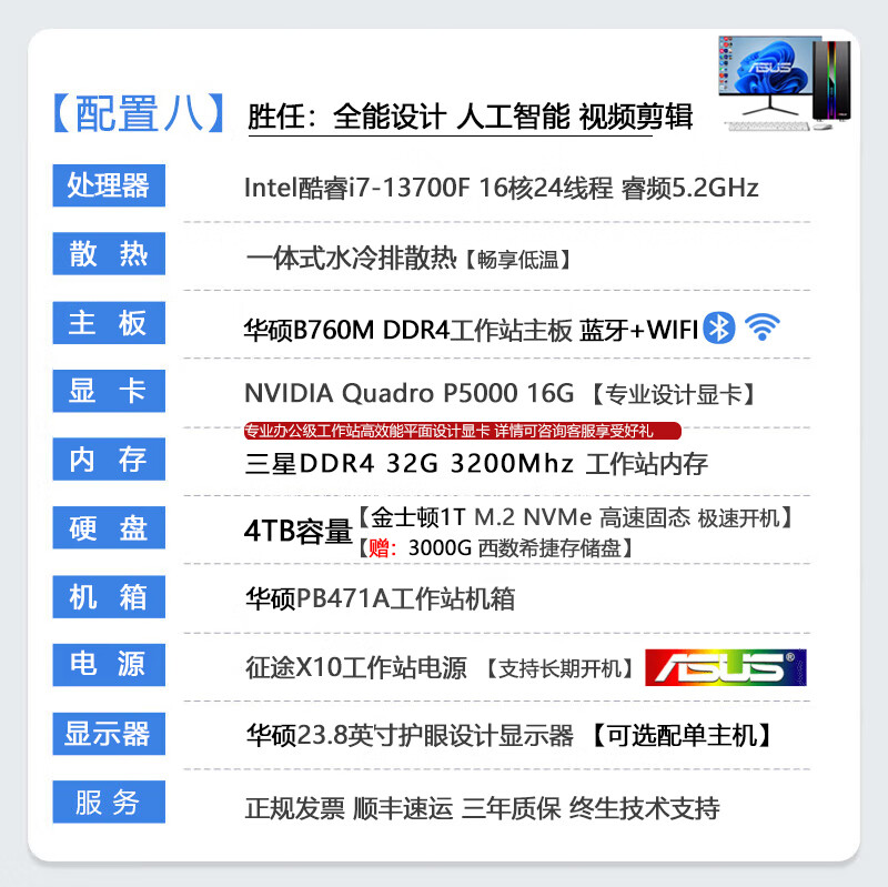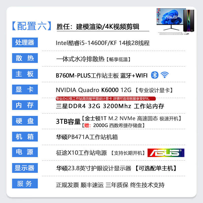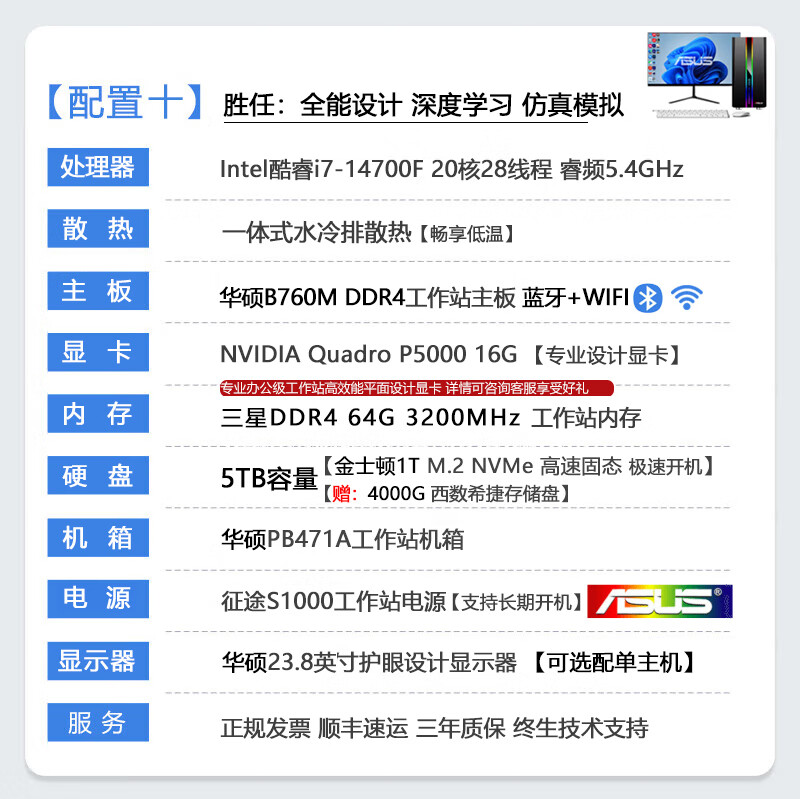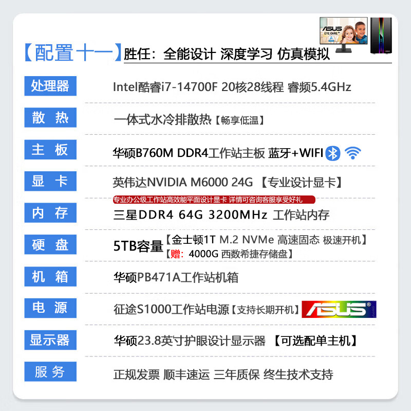 SMVP ASUS designer desktop 3DMAX rendering UG programming graphics workstation i9 design host desktop AI simulation modeling PS drawing CAD editing computer subsidy 20% ASUS designer complete set (host + monitor) twelve i7 14700F+32G+5T+5060