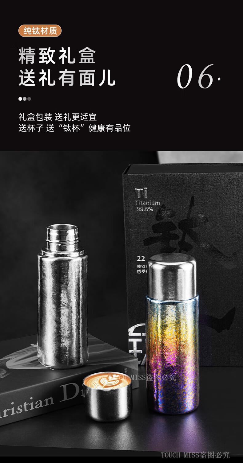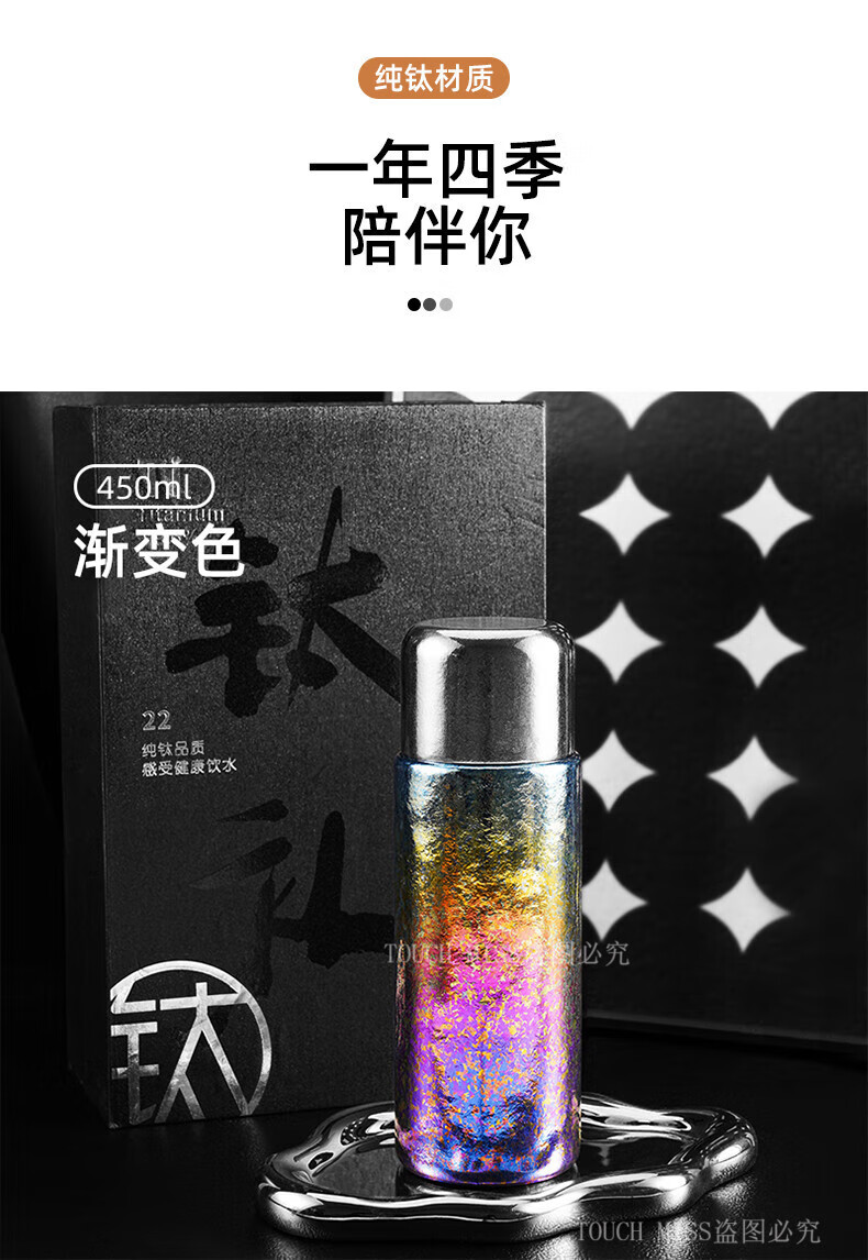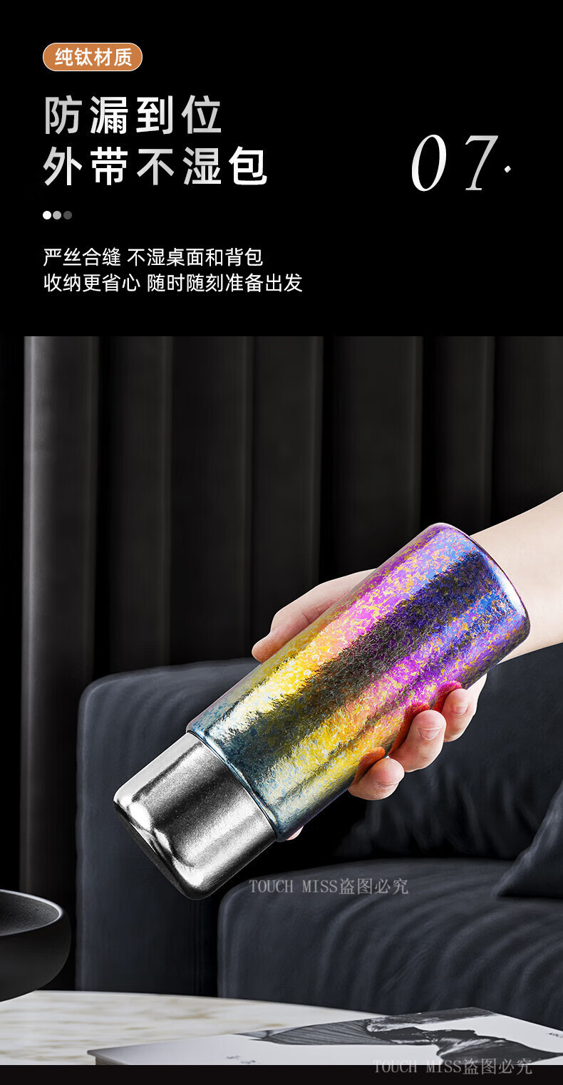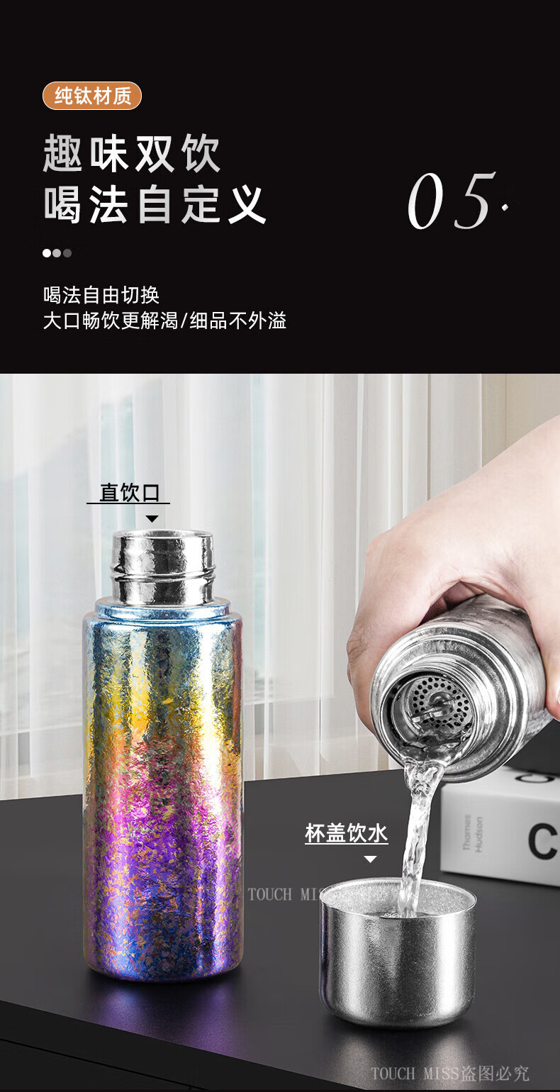 Touchmiss Pure Titanium Insulated Cup Men's and Women's Portable Water Cup Tea Water Separation Tea Cup High-end Stewed Tea Cup 2026 New Titanium Cup Natural Color 450ML Gift Box Packaging