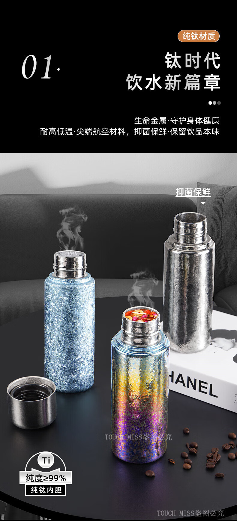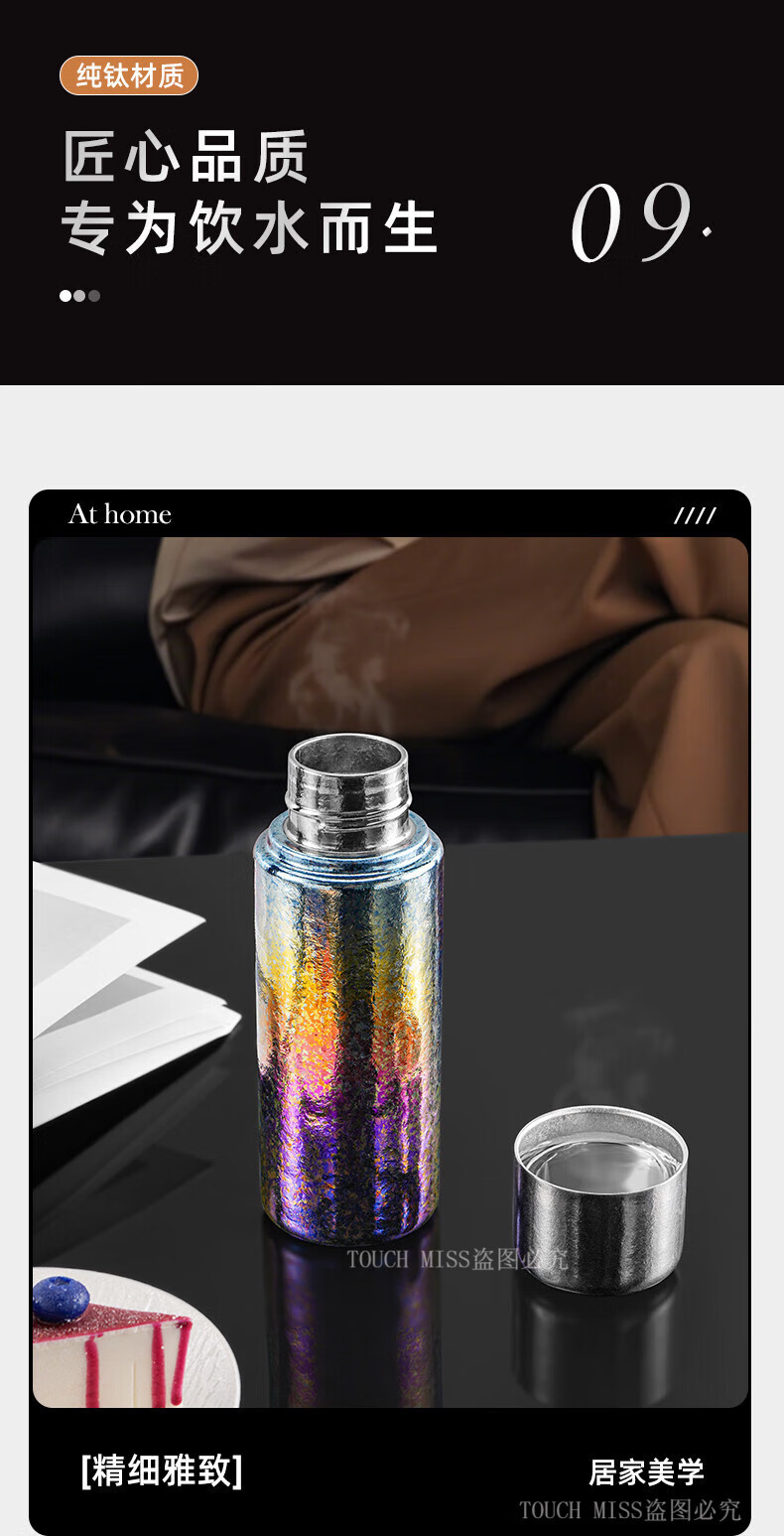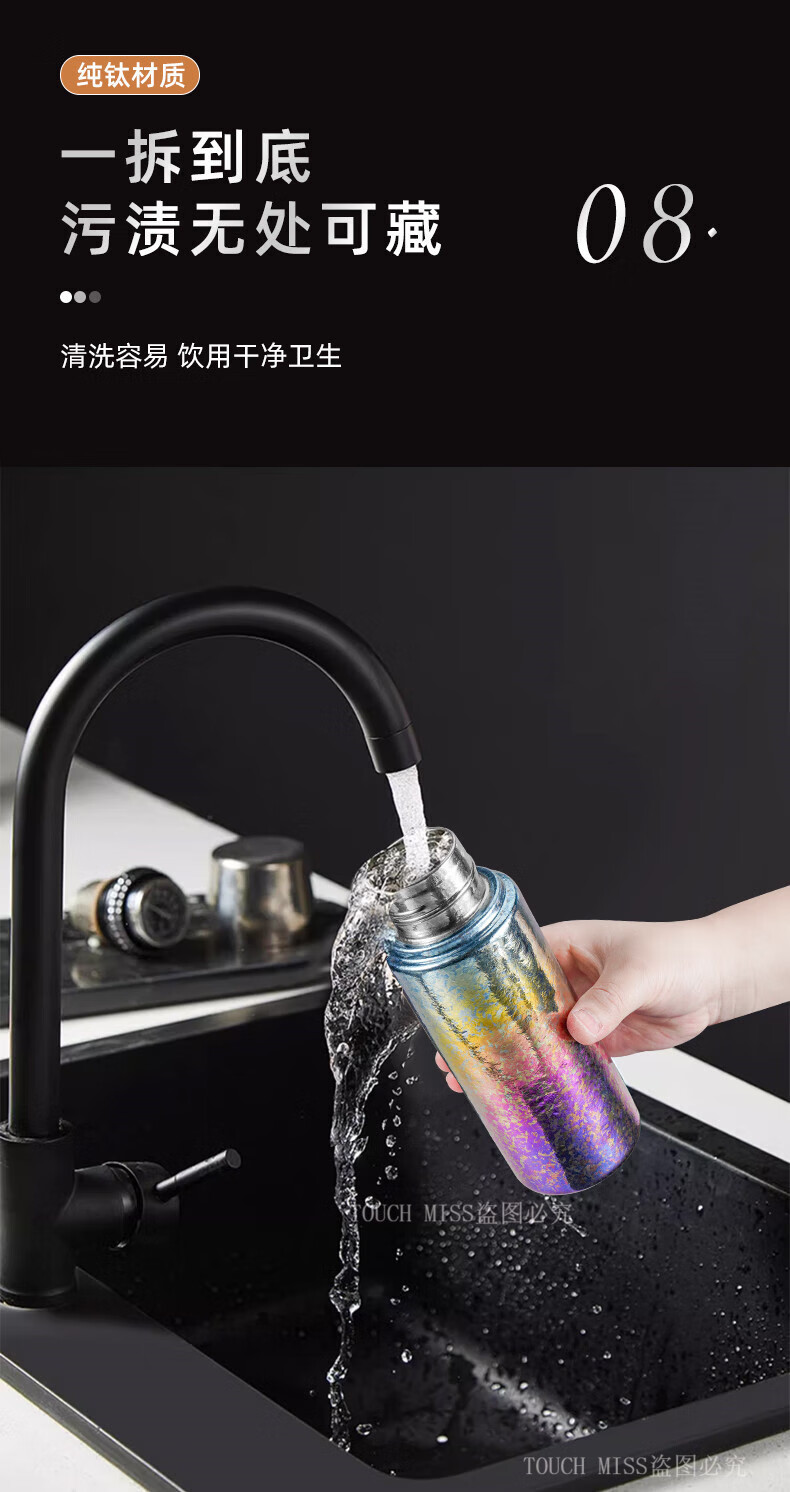 Touchmiss Pure Titanium Insulated Cup Men's and Women's Portable Water Cup Tea Water Separation Tea Cup High-end Stewed Tea Cup 2026 New Titanium Cup Natural Color 450ML Gift Box Packaging