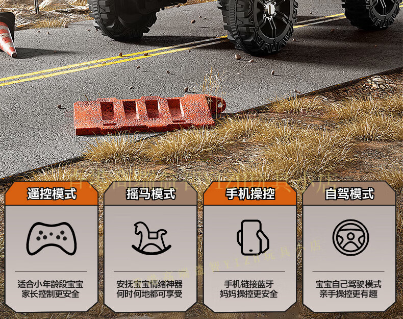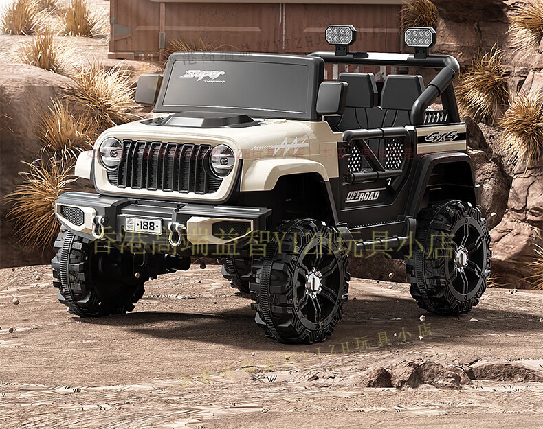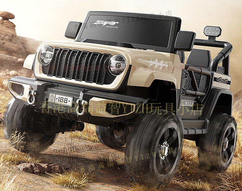 HTI children's electric vehicle four-wheel off-road vehicle can seat men, women and children remote control car baby four-wheel drive charging stroller yellow