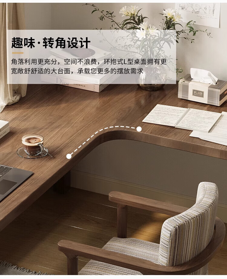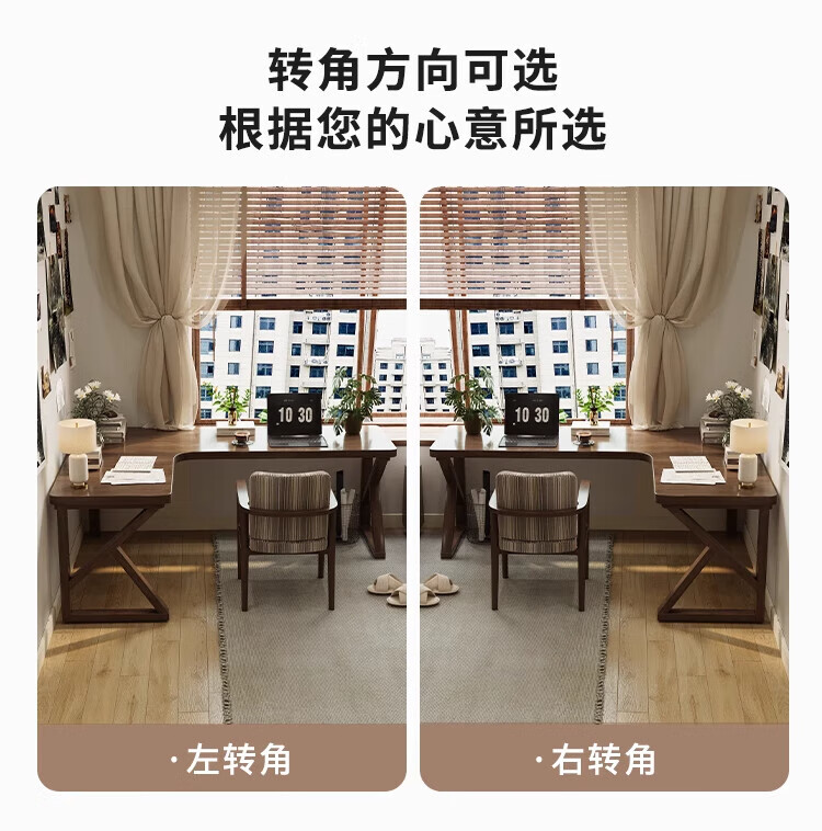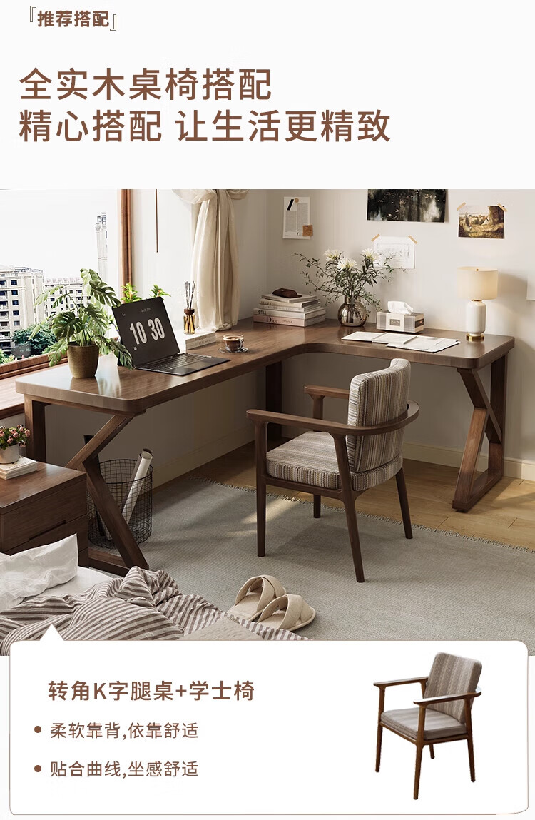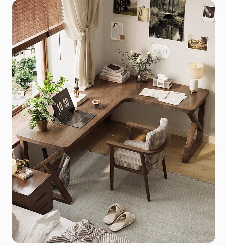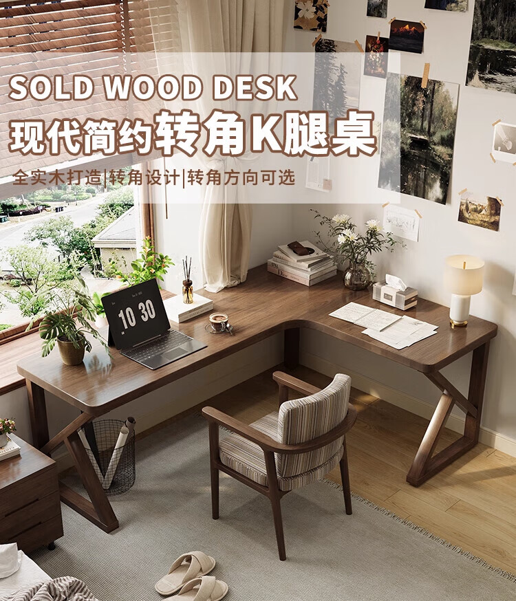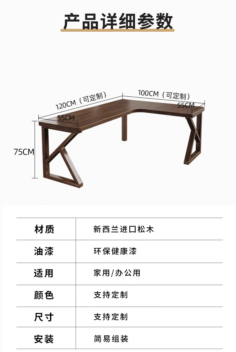 Mori round wood square solid wood corner desk bedroom corner writing desk work desktop computer table student home study desk table length 140*55*75 corner length 120cm