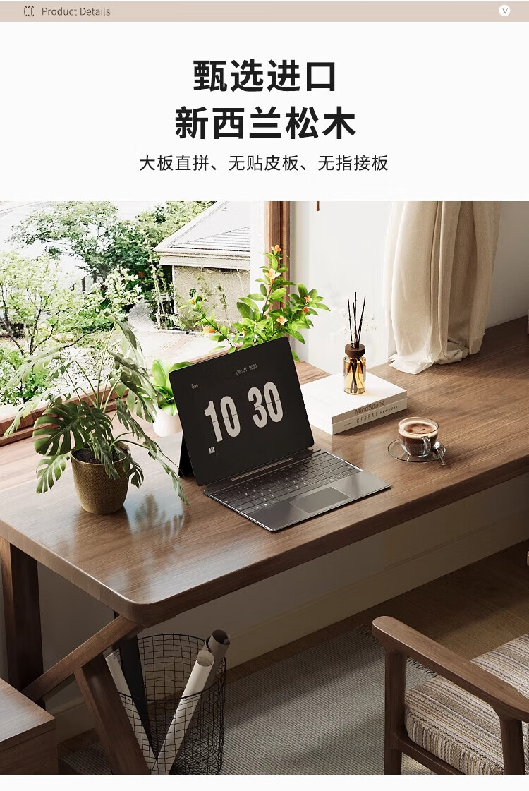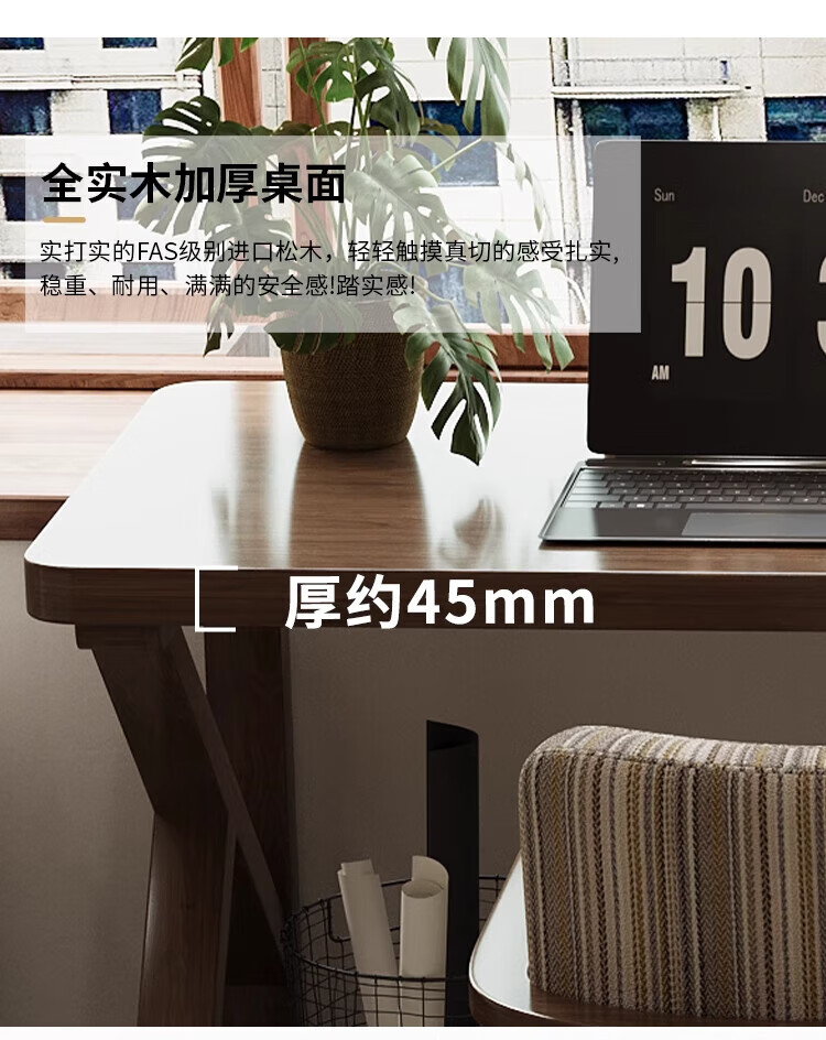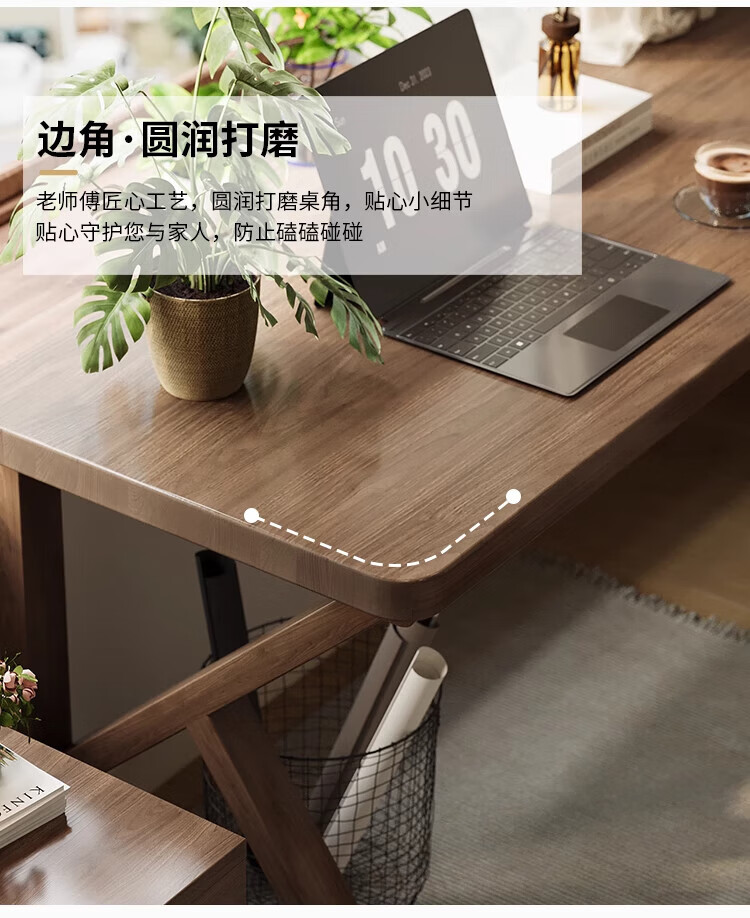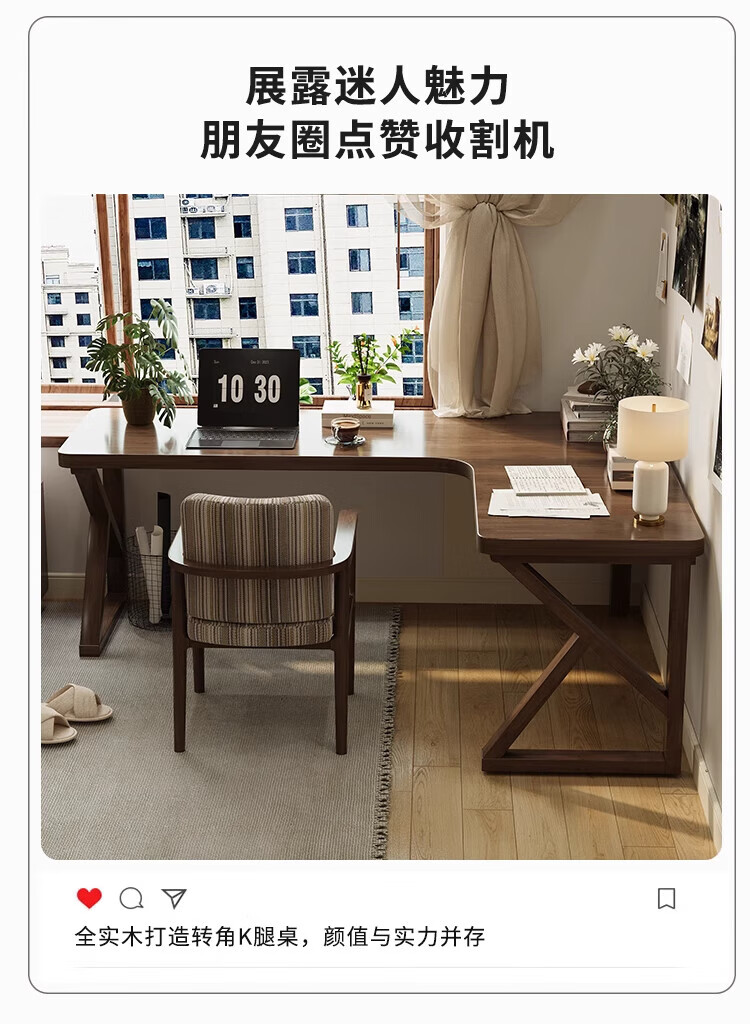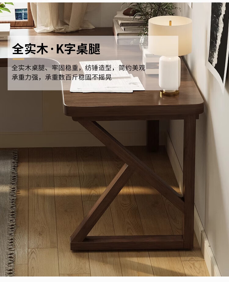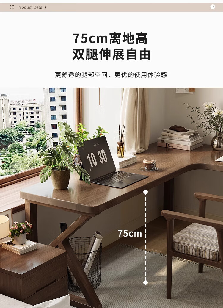 Mori round wood square solid wood corner desk bedroom corner writing desk work desktop computer table student home study desk table length 140*55*75 corner length 120cm