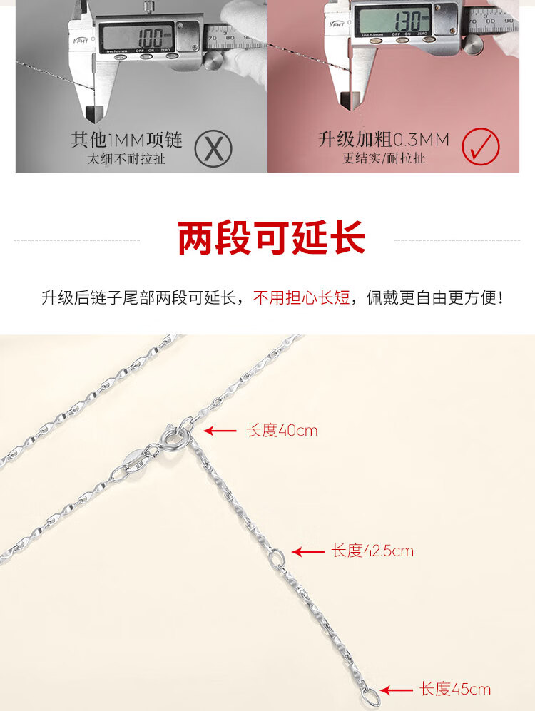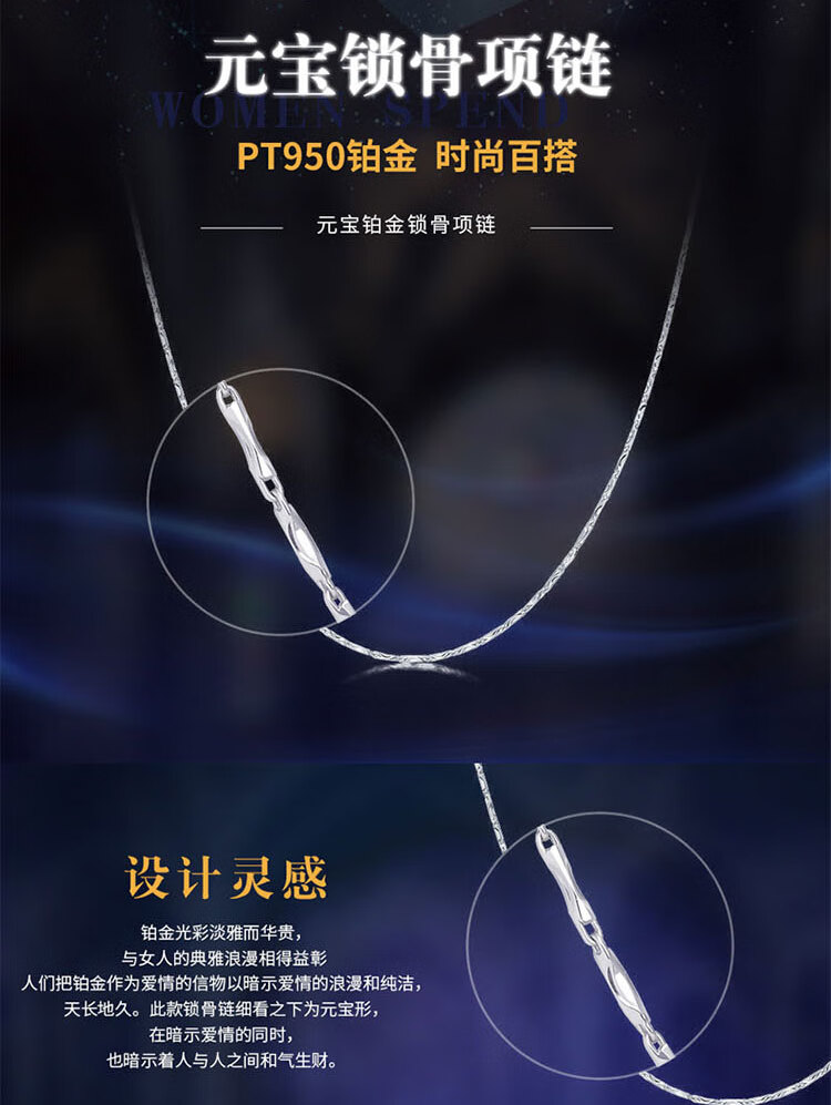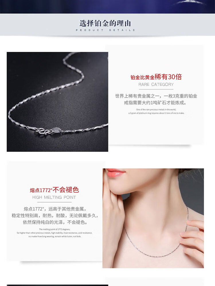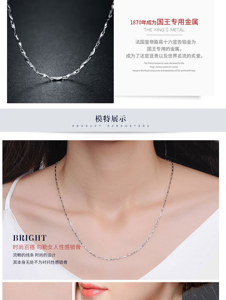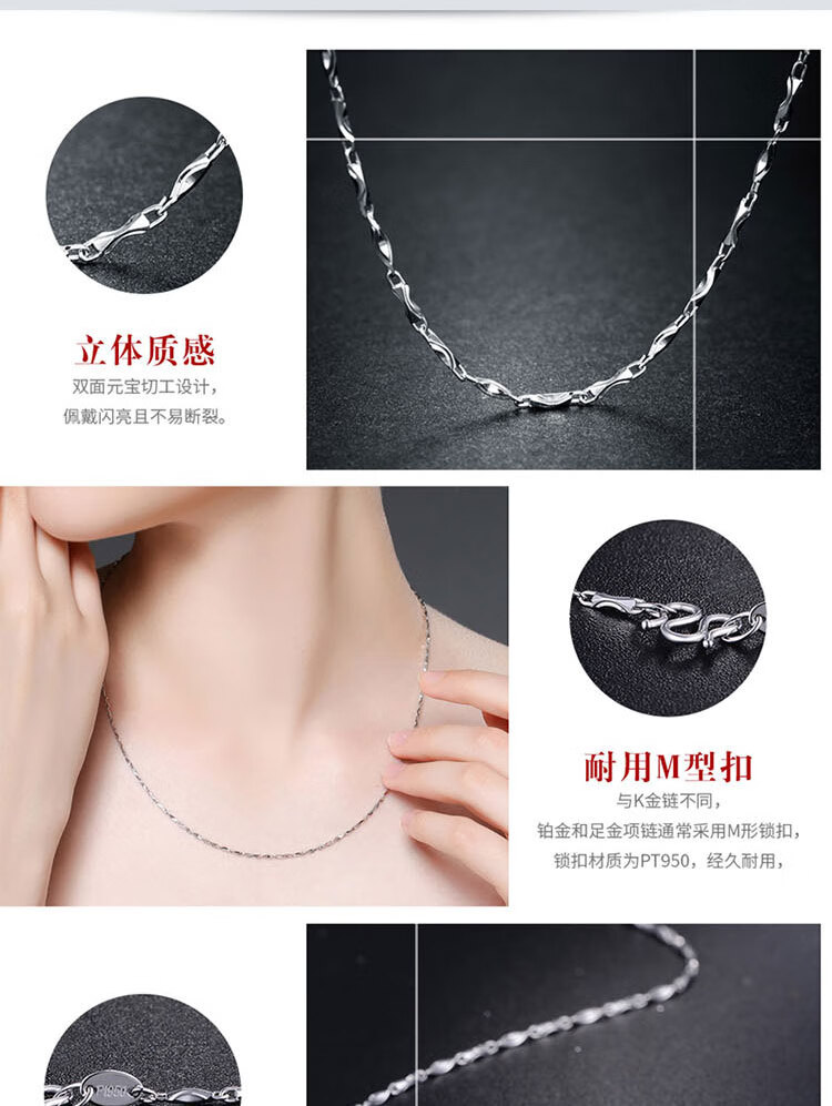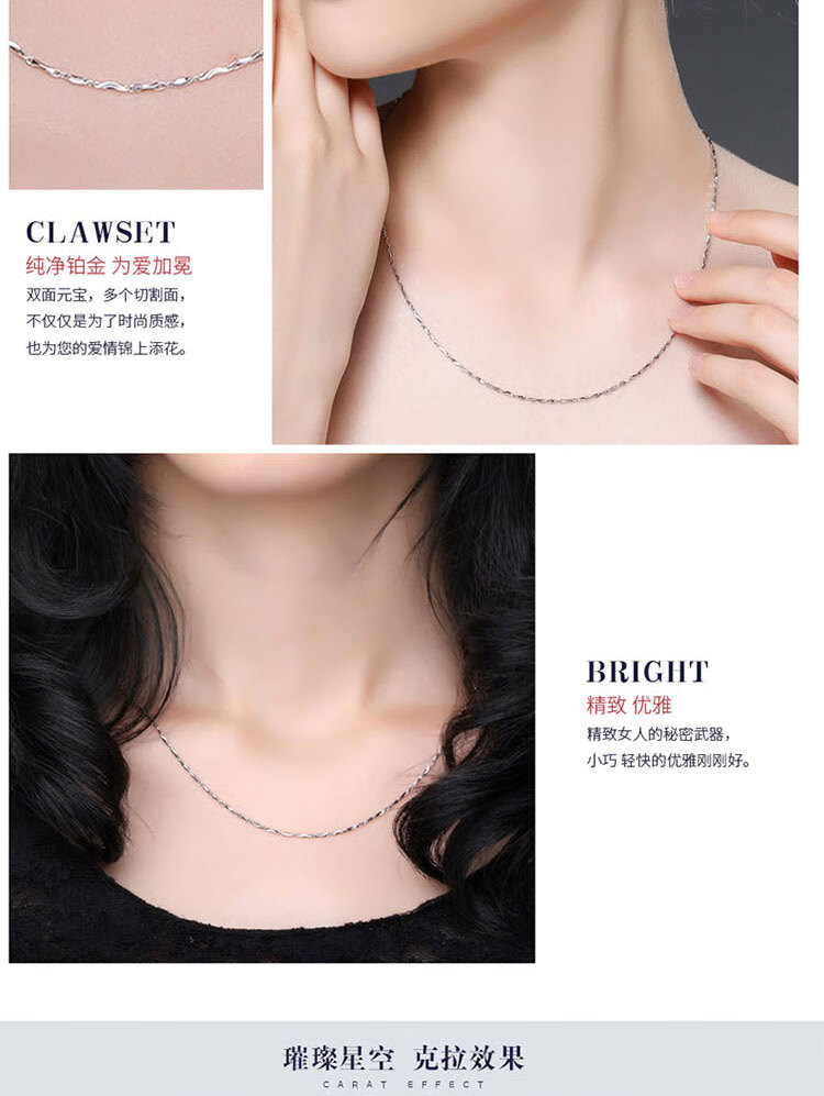 MHFDO old Phoenix quality platinum single pendant necklace women's single chain plain chain light luxury platinum Pt Chopard chain old Fengxiang quality 1.3g x 55cm old Fengxiang quality