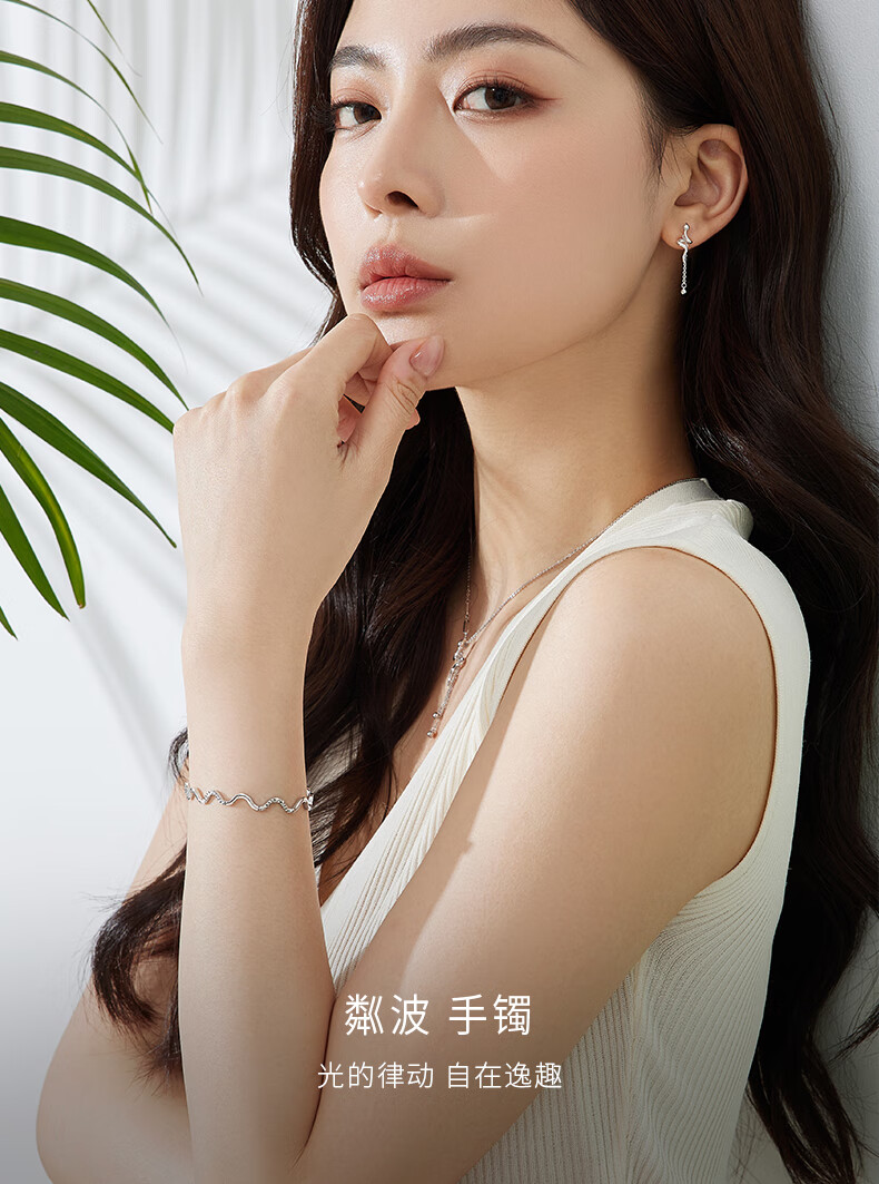 Jinzhizun (3DG Jewelery) wavy platinum PT950 bracelet, fashionable and versatile gift for girlfriend, priced by gram 41cm-8.85g (including labor cost 602 yuan)