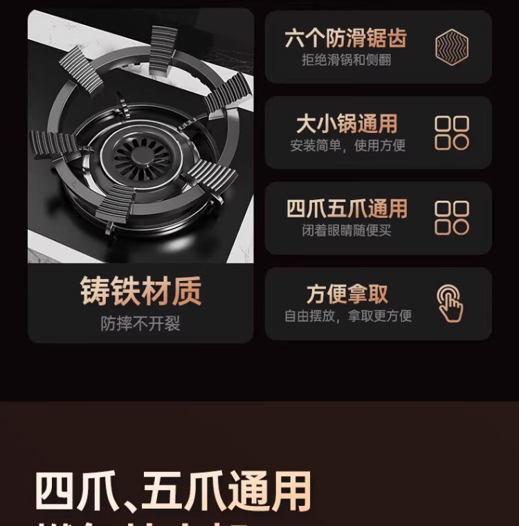 Gas stove anti-slip bracket, natural gas stove windshield, pot holder holder, suitable for Vantage Fotile Boss accessories, universal, new upgraded model, thickened six claws, 1 pack