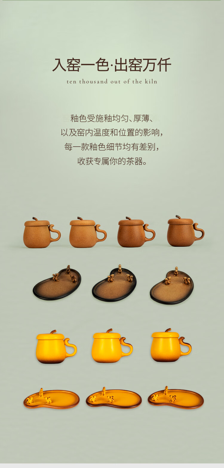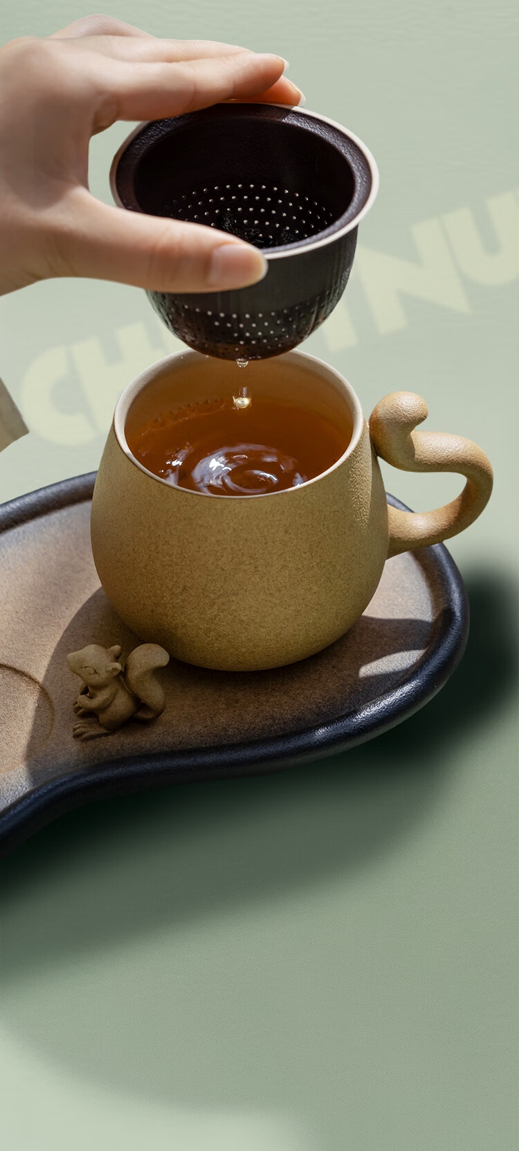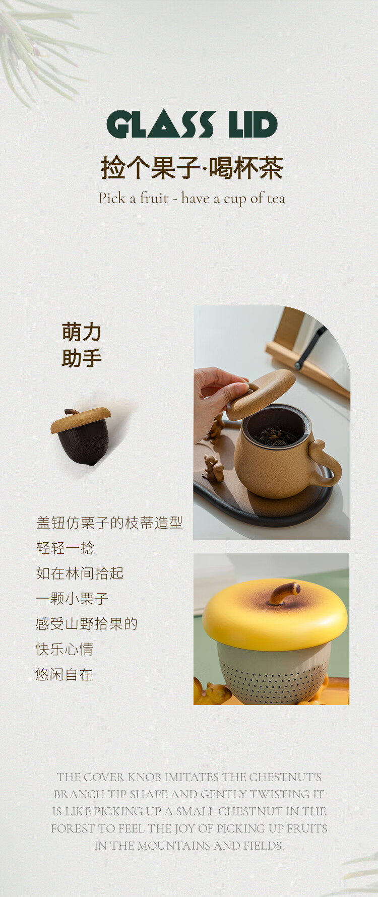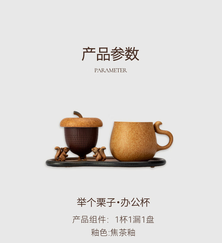 Wanqiantang (Edenus) high-end ceramic office cup, men's and women's coffee cup, personal household tea cup, water cup with tea tray, a chestnut, burnt tea glaze (1 cup, 1 drain, 1 plate)