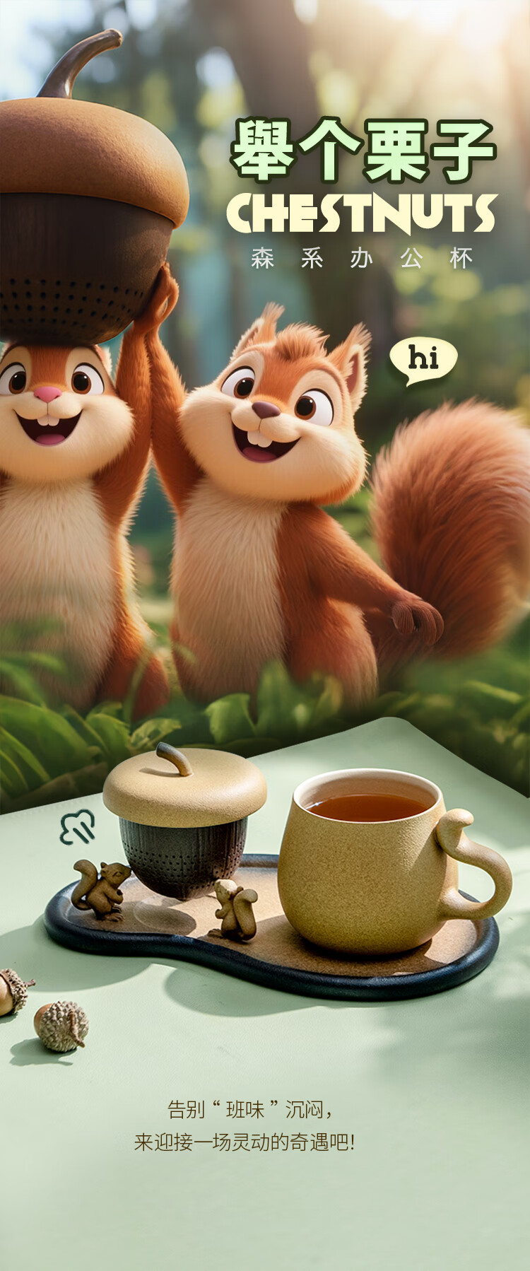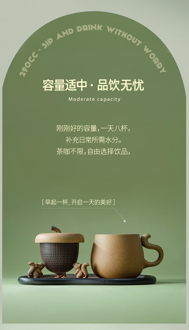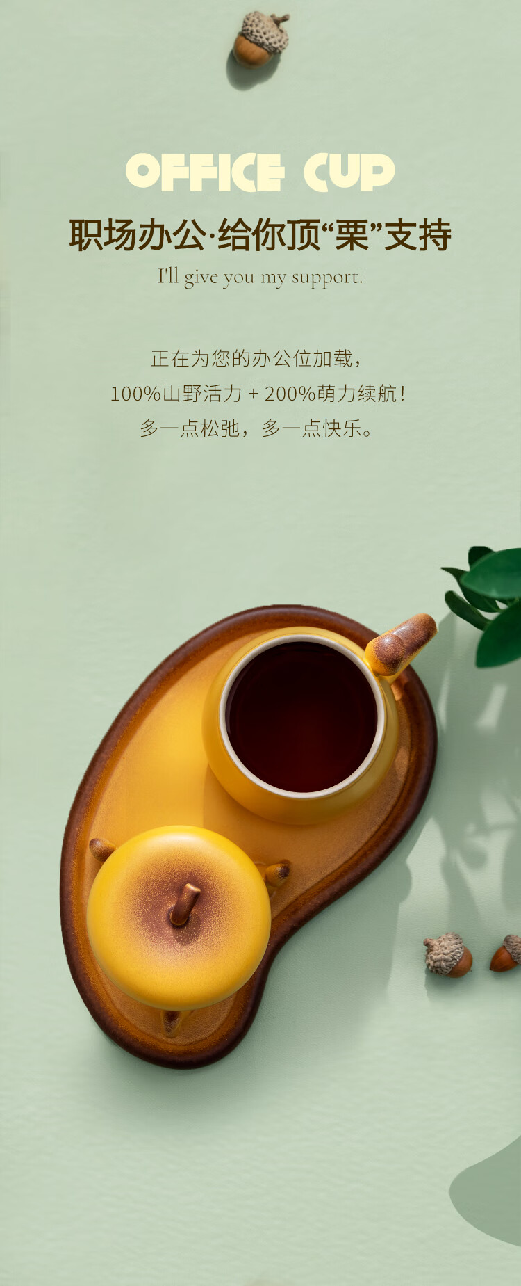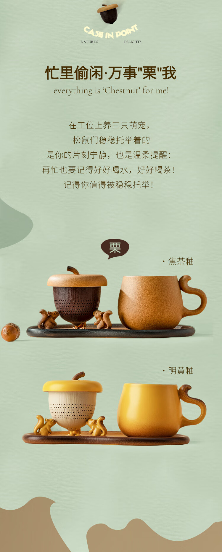 Wanqiantang (Edenus) high-end ceramic office cup, men's and women's coffee cup, personal household tea cup, water cup with tea tray, a chestnut, burnt tea glaze (1 cup, 1 drain, 1 plate)