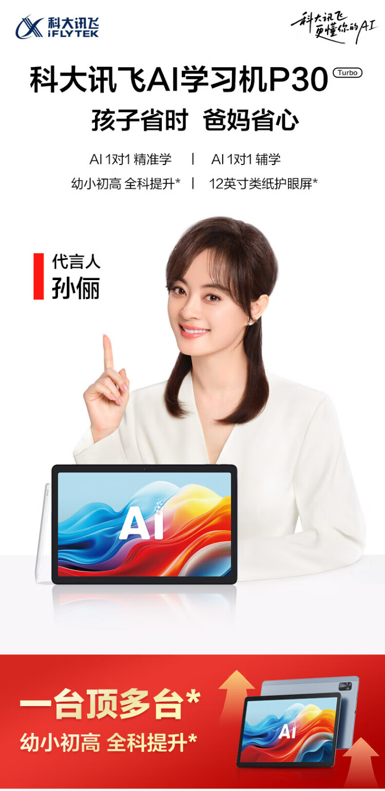 IFLYTEK artificial intelligence learning machine P30/S30 turbo personalized AI precision learning eye protection tablet for primary school students, junior high school students and high school students Sun Li endorses new product S30Turbo-new product launch