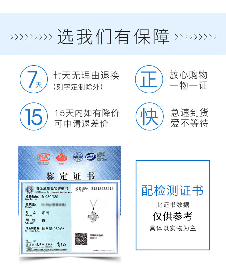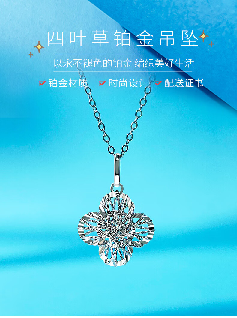 COISE platinum pt950 necklace women's four-leaf clover pendant platinum clavicle chain ins style girl birthday gift wife Qinghuan four-leaf clover platinum pendant + 925 silver flash European chain