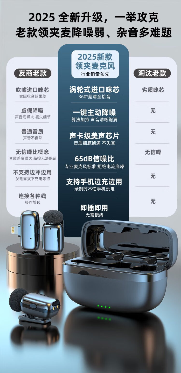 Good Shepherd Wireless Lavalier Microphone Sound Card Live Broadcast Equipment Set Anchor Live Recording Equipment Outdoor Short Video Radio Microphone Douyin Karaoke Professional Noise Reduction Wireless Microphone Two-person with Storage Version丨One for Two Noise Reduction*Compact*Long Battery Life