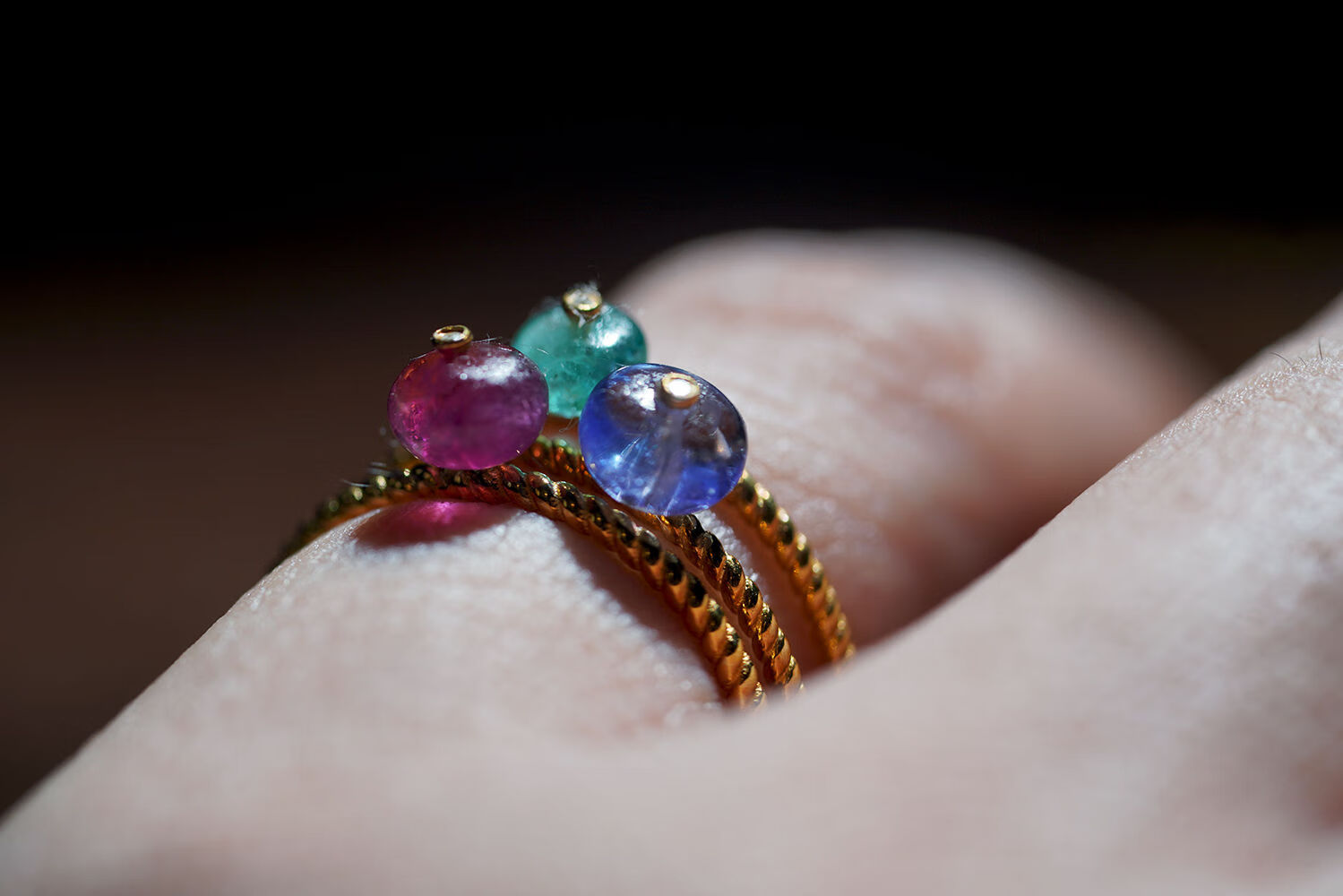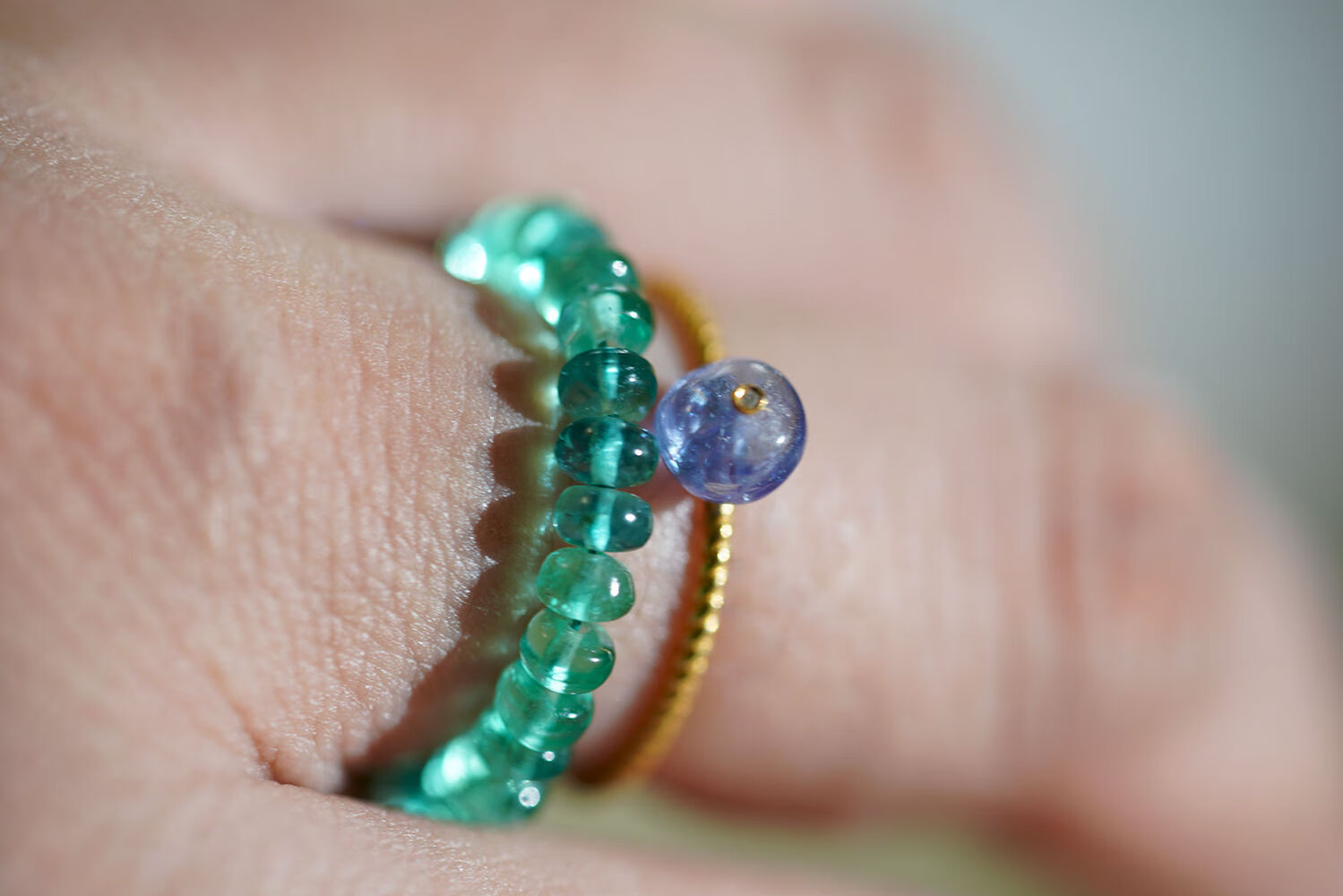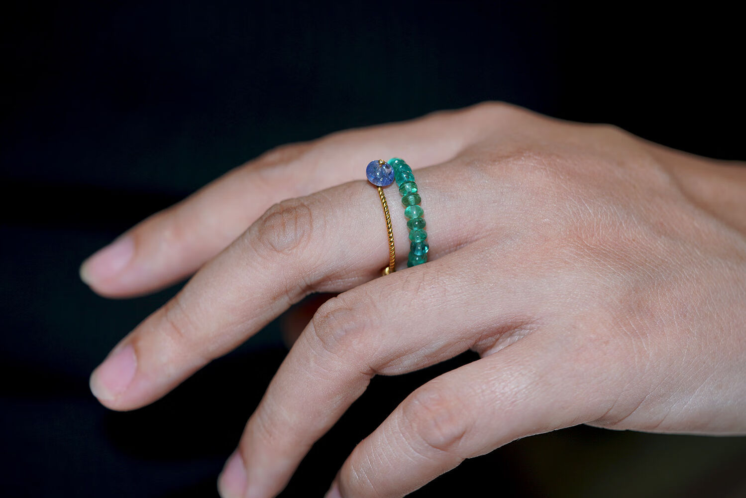 KUXAFONGFONG natural emerald Rubile Tanzanite diamond twisted open removable silver ring stacked tail ring Tanzanite No. 10 down