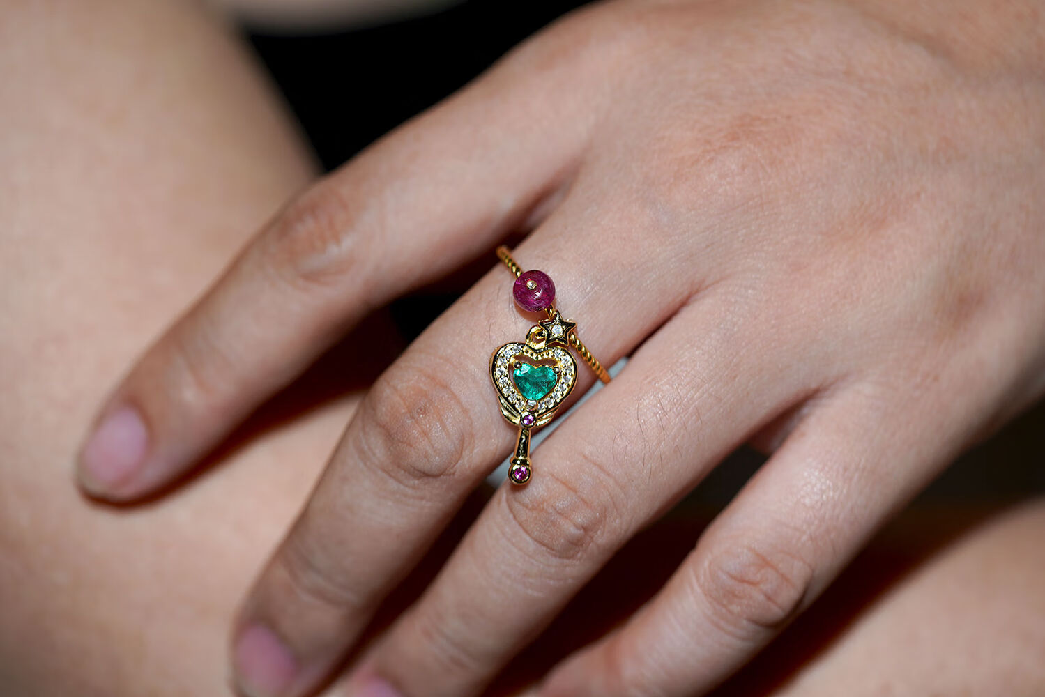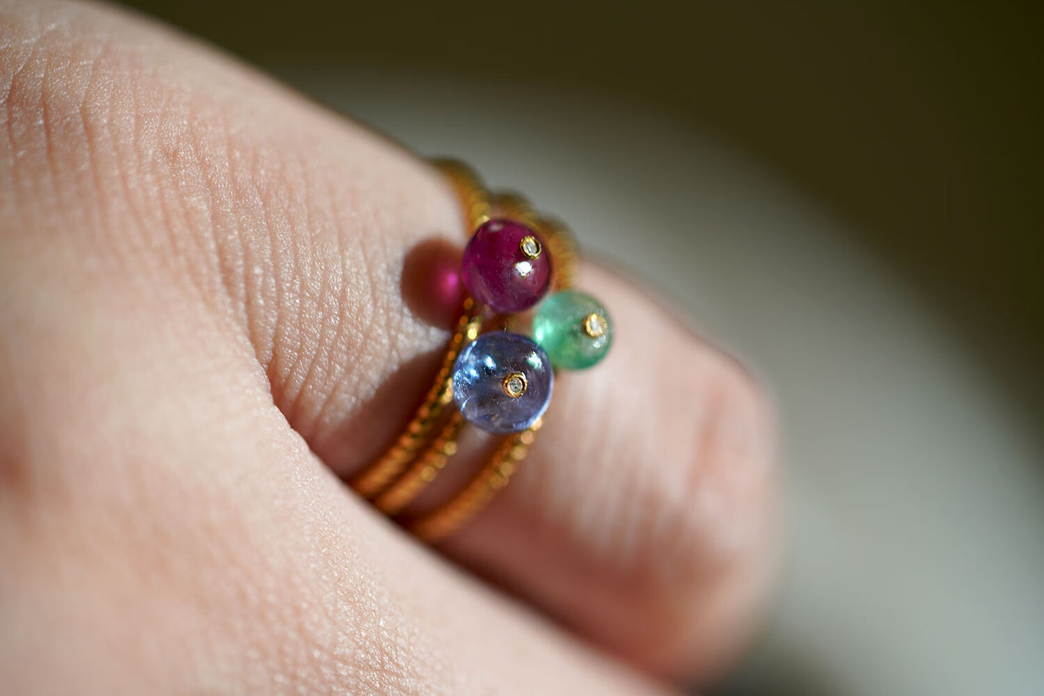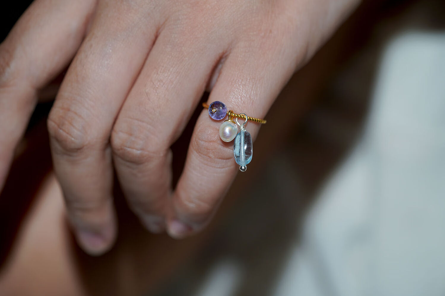 KUXAFONGFONG natural emerald Rubile Tanzanite diamond twisted open removable silver ring stacked tail ring Tanzanite No. 10 down