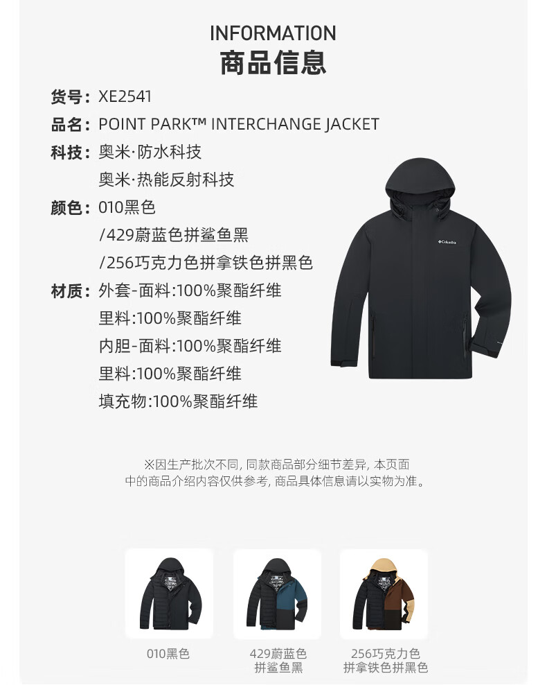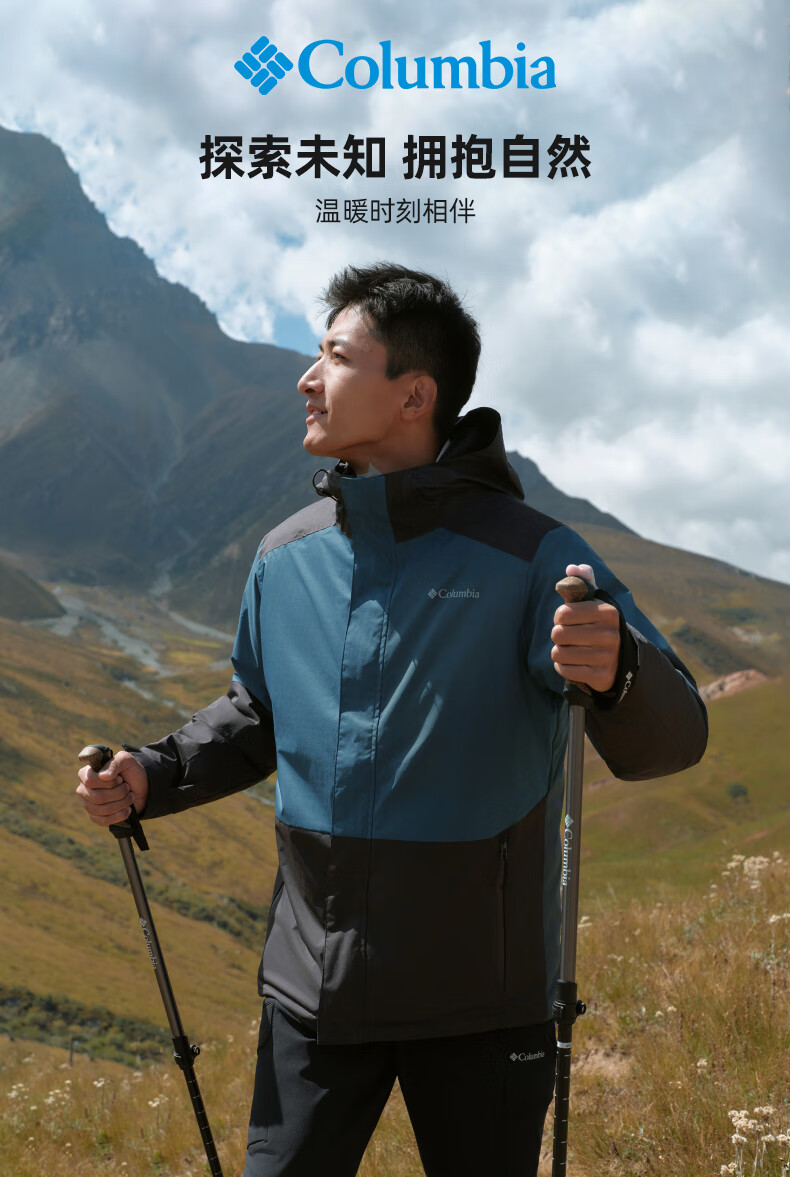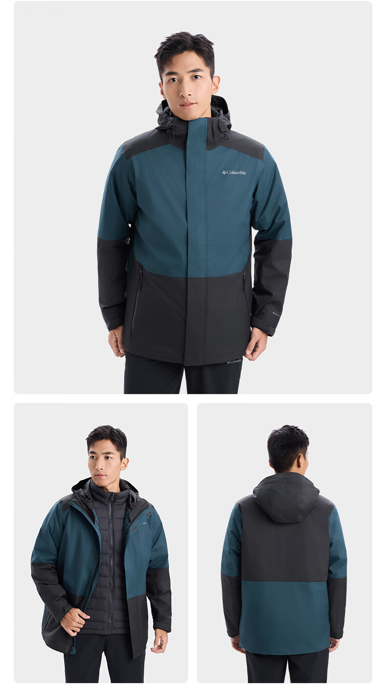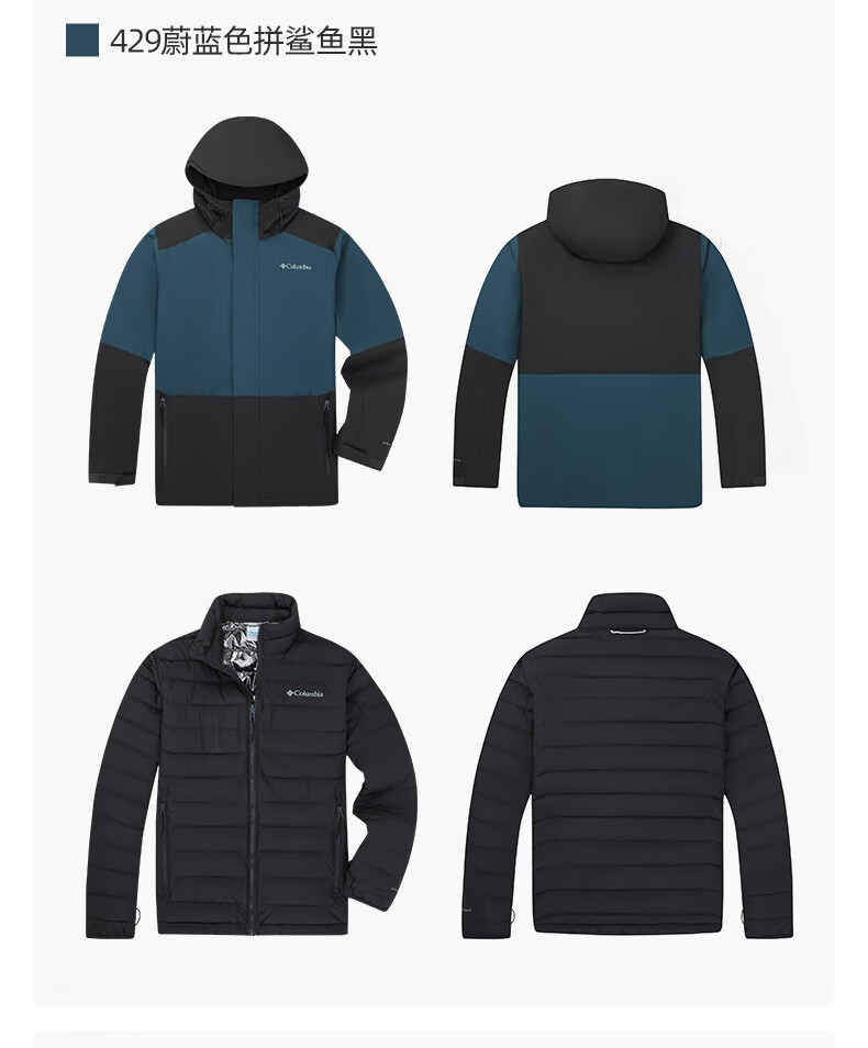 Columbia Outdoor 25 Autumn and Winter New Men's Silver Point Thermal Three-in-One Cotton Liner Waterproof Jacket XE2541 429 Azure Blue and Shark Black M (175/96A)