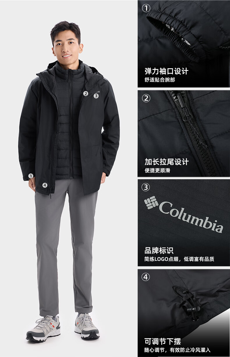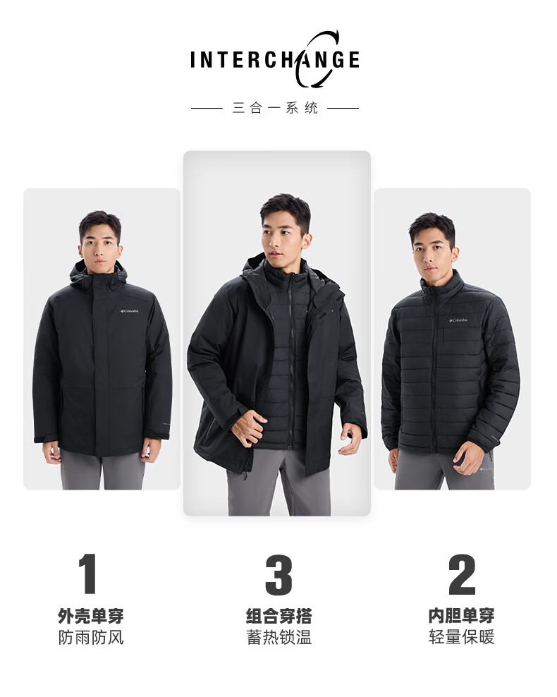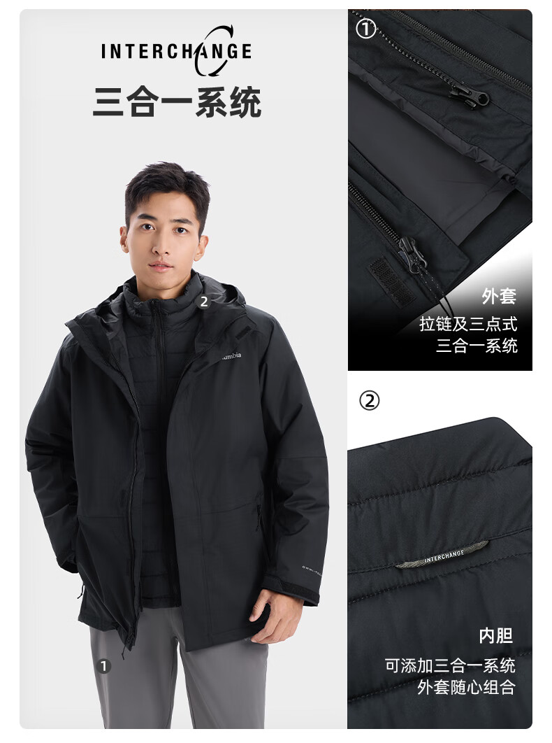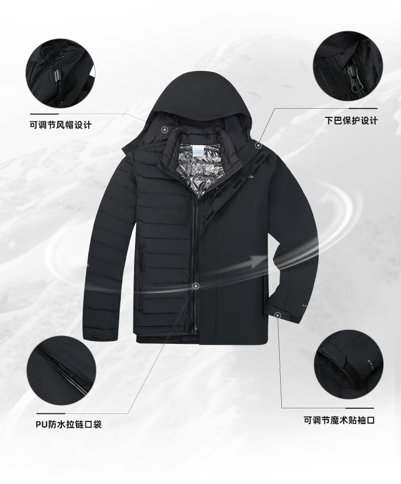 Columbia Outdoor 25 Autumn and Winter New Men's Silver Point Thermal Three-in-One Cotton Liner Waterproof Jacket XE2541 429 Azure Blue and Shark Black M (175/96A)
