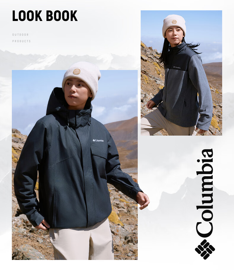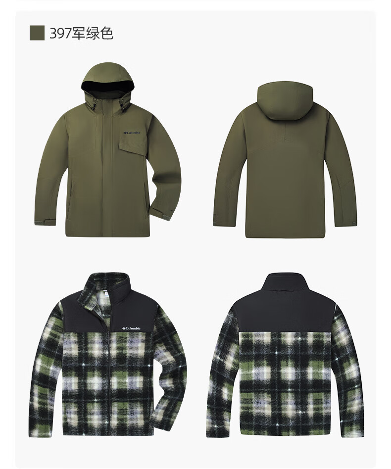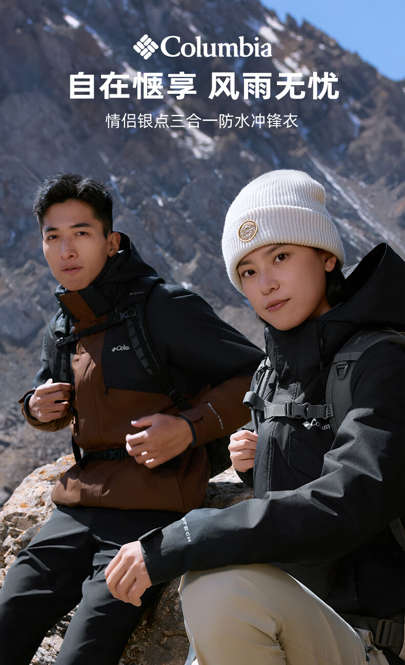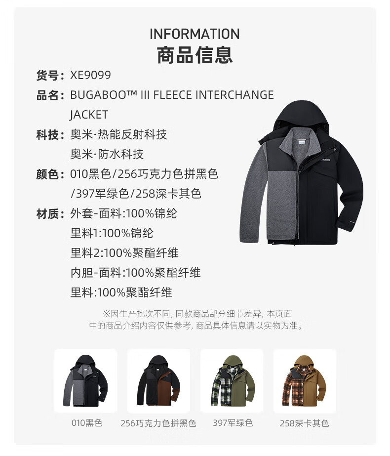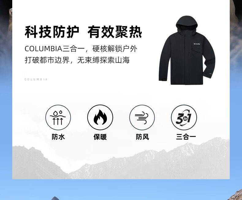 Columbia Outdoor 25 Autumn and Winter New Men's and Women's Silver Dot Fleece Liner Three-in-One Waterproof Jacket XE9099 010 Black L (180/100A)