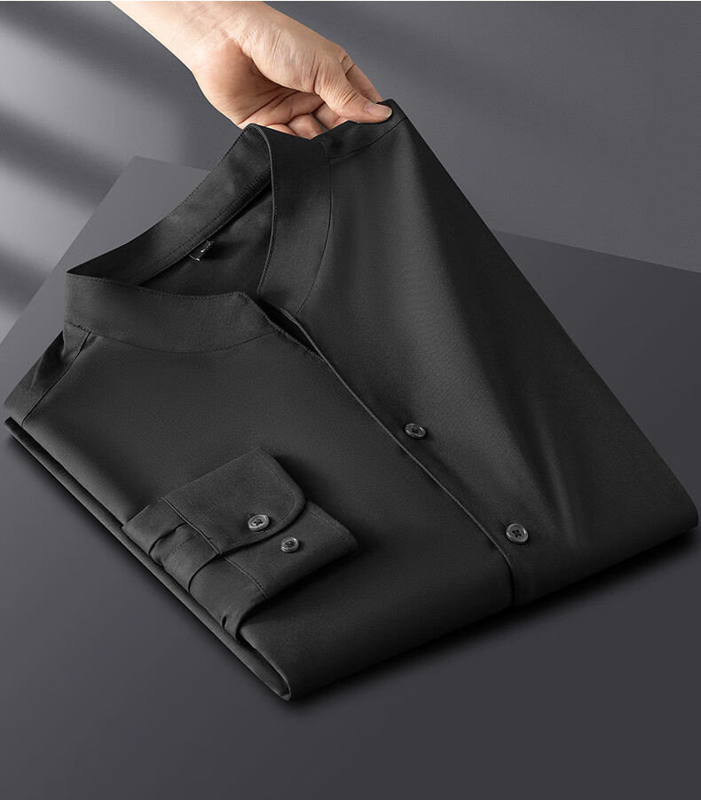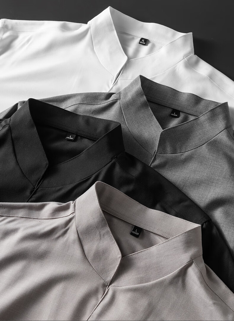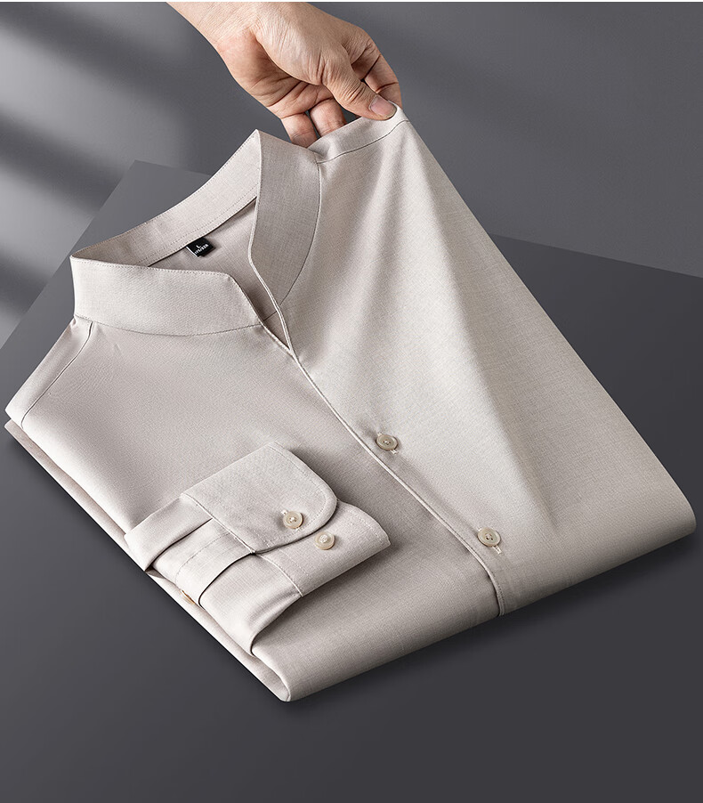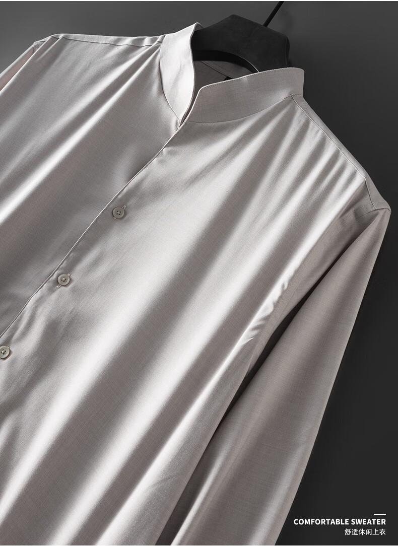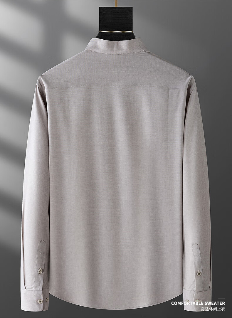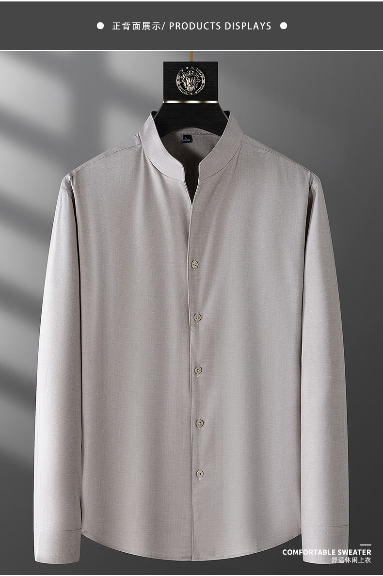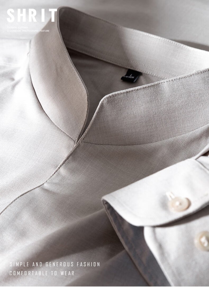 Chaolilong Spring and Autumn Thin Henley Collar Cool Shirt Men's Long Sleeve High-End Mid-mountain Collar Casual Korean Style Trendy Shirt Men's Khaki XL