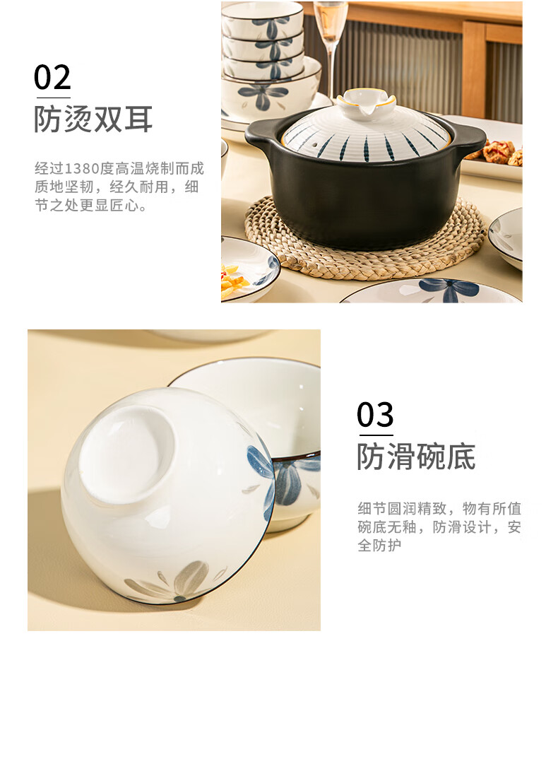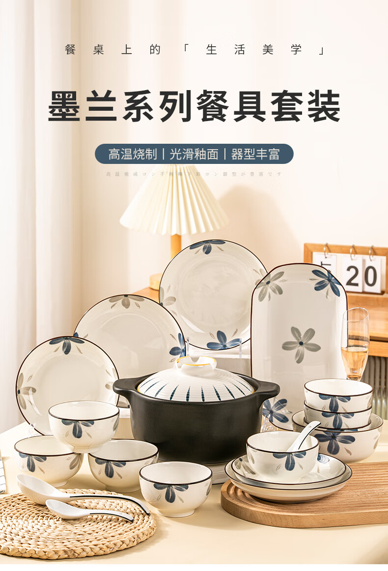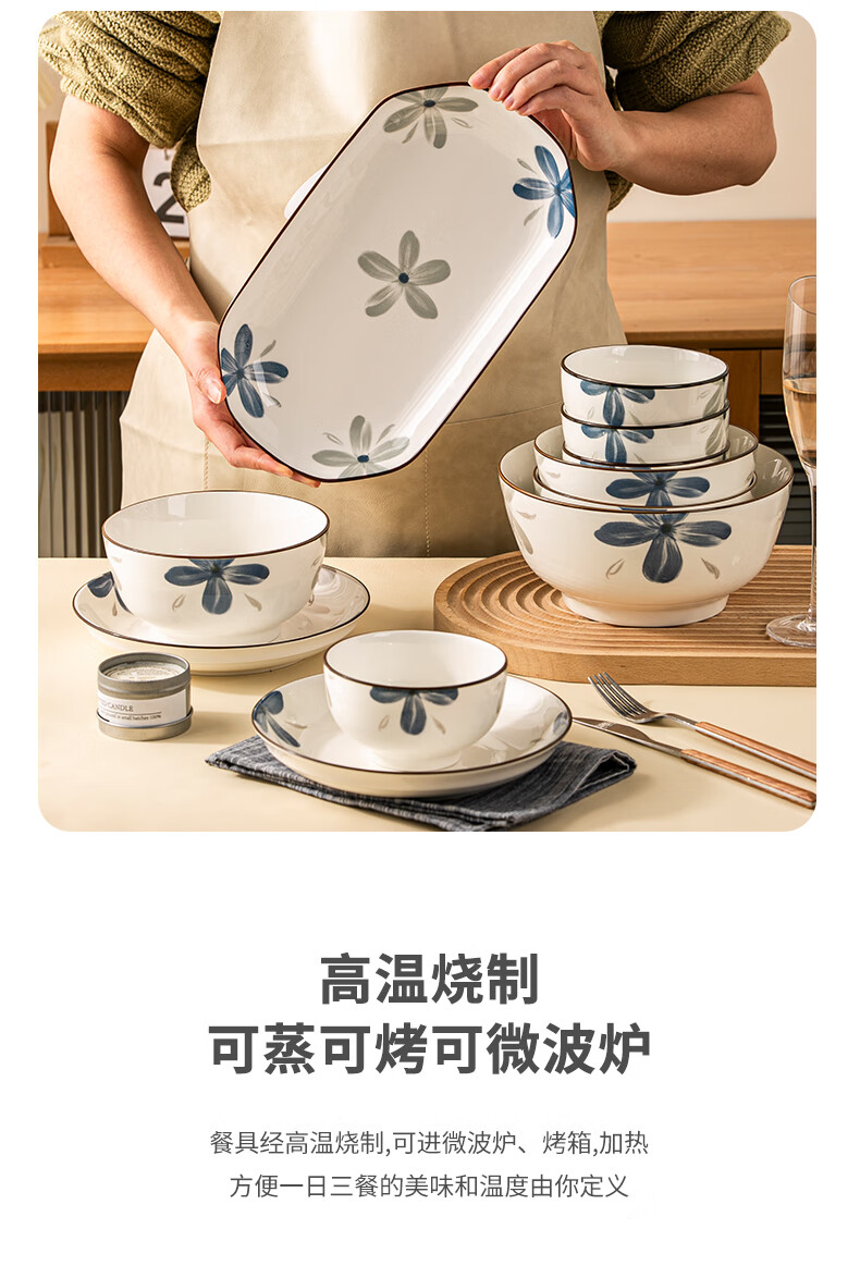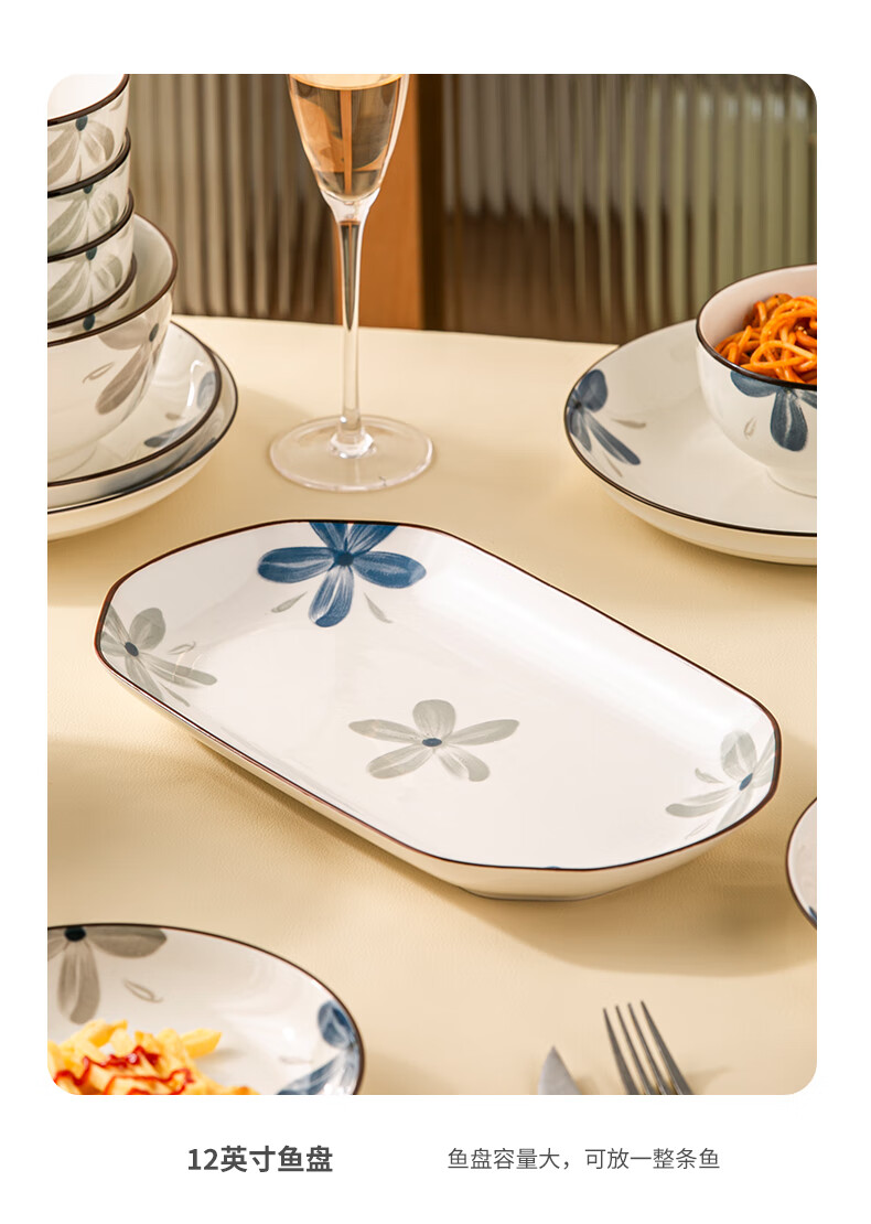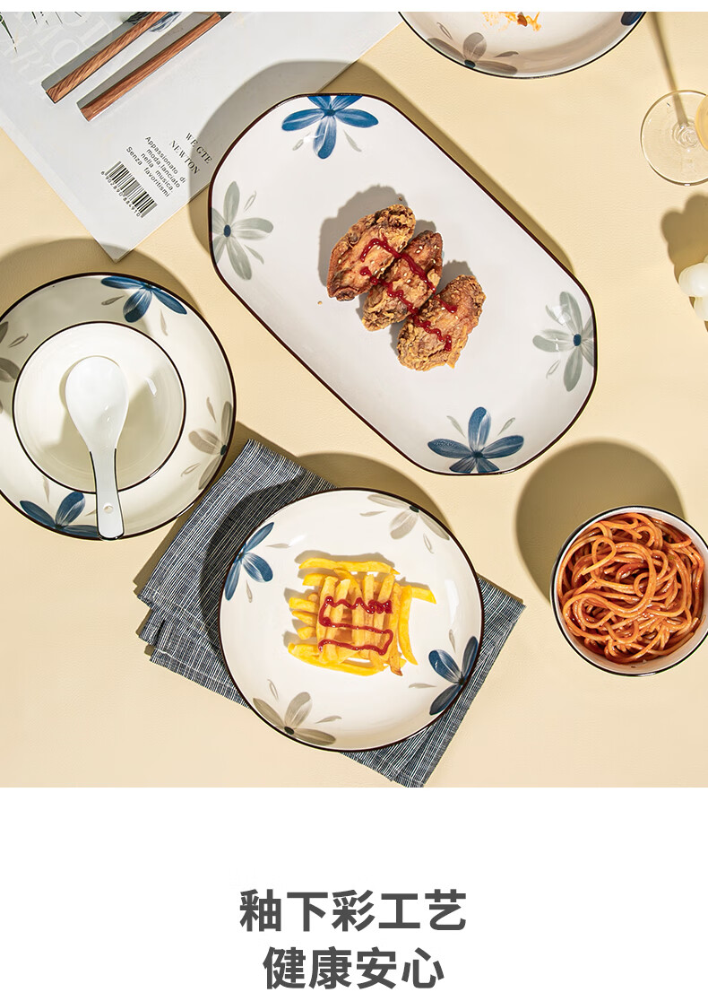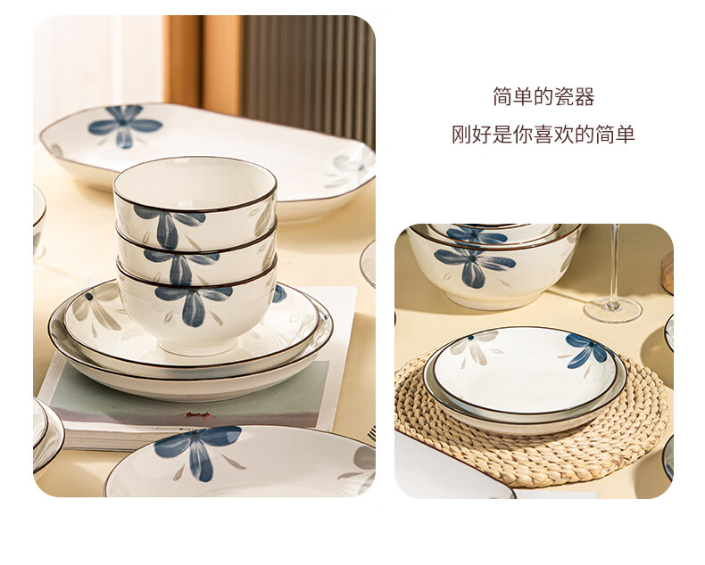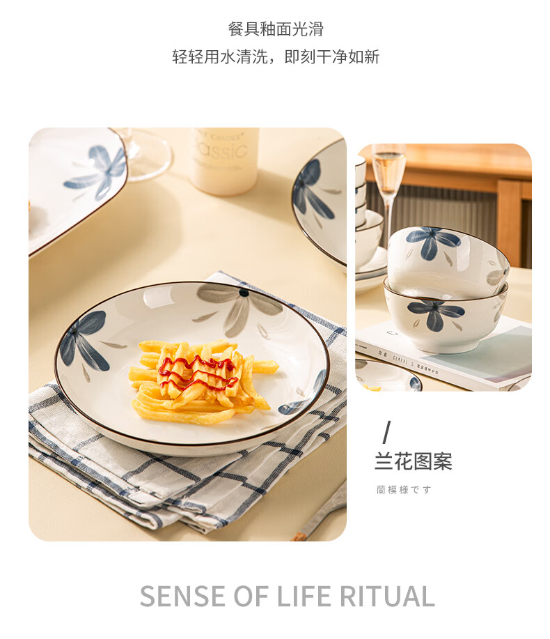 Small orchid ceramic bowl, underglaze color ceramic tableware, moving to new home, bowls, plates, chopsticks, bowls and plates set, 2 6-inch noodle bowls