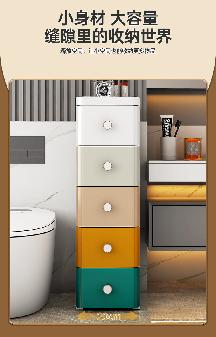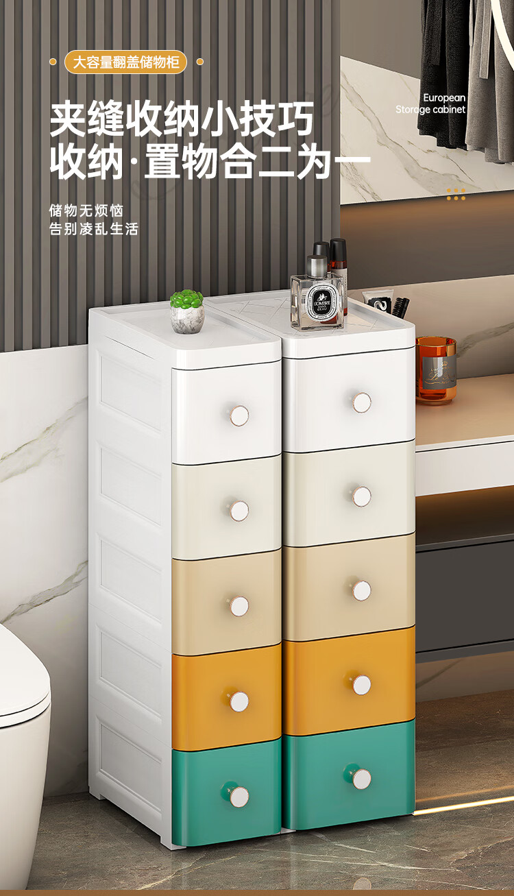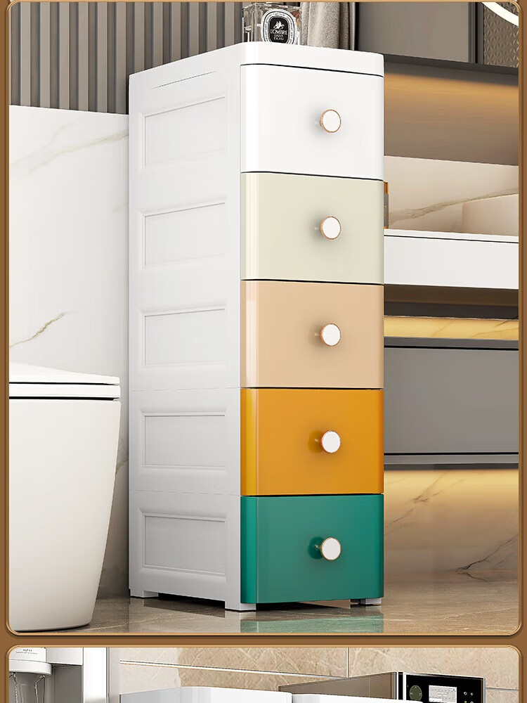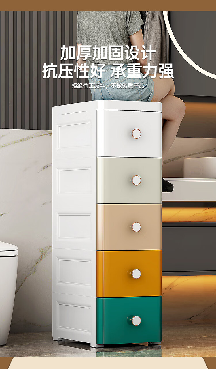 JD Logistics Furniture Crack Storage Cabinet Drawer-type Storage Rack Bathroom Kitchen Narrow Storage Cabinet 25cm Width Pure White 6 Layers
