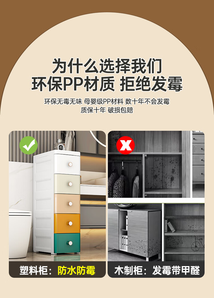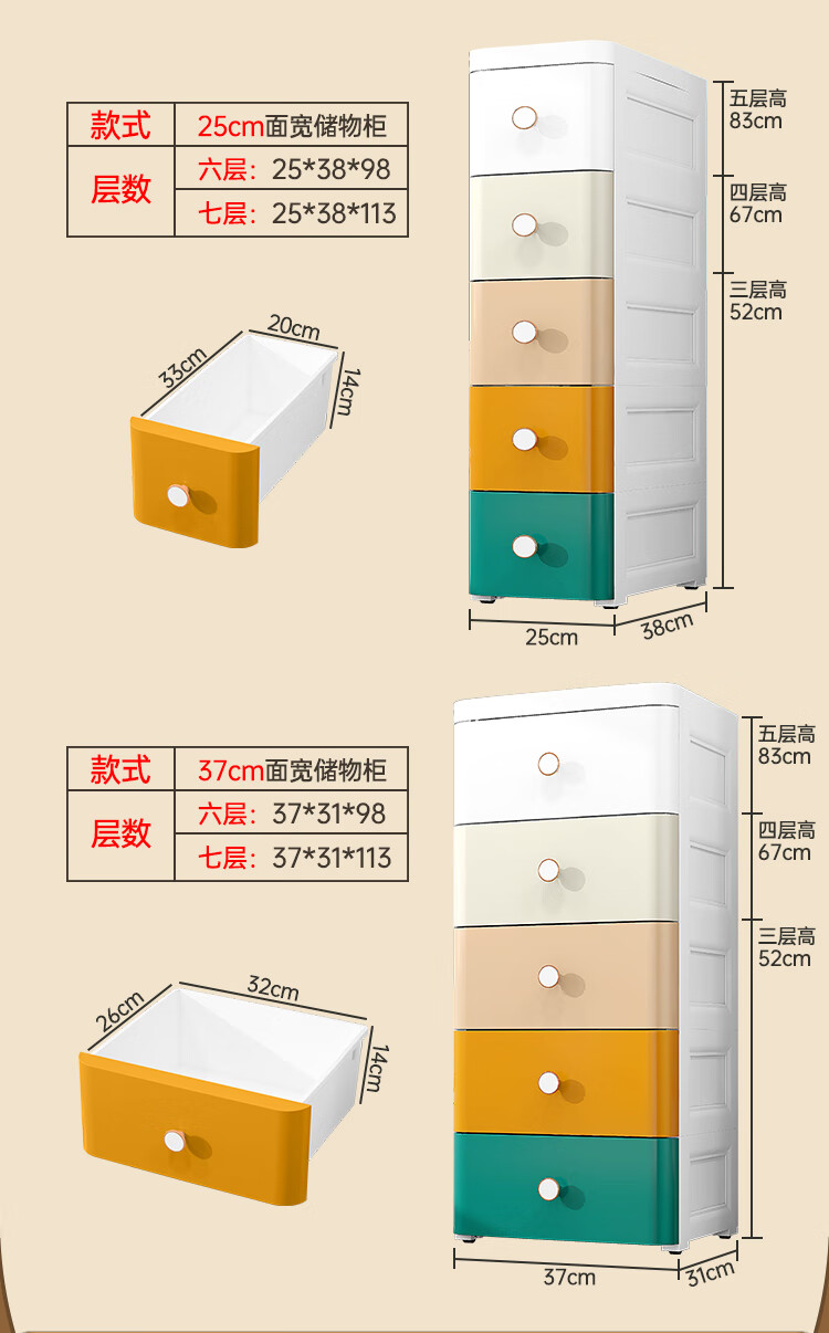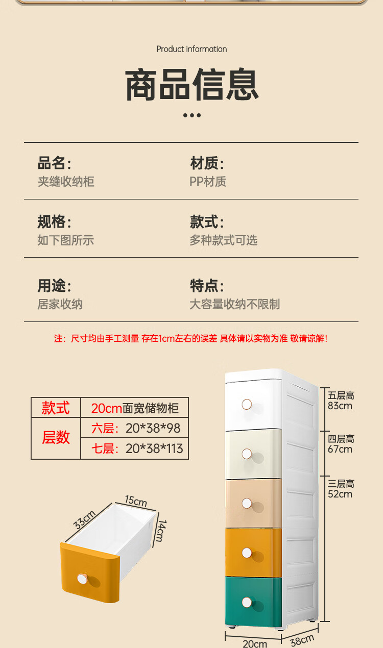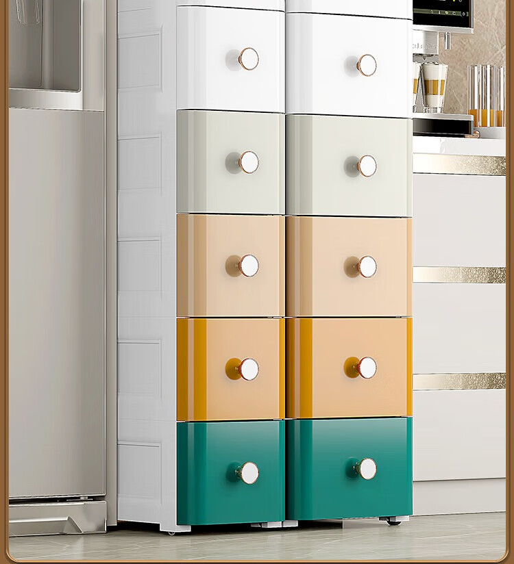 JD Logistics Furniture Crack Storage Cabinet Drawer-type Storage Rack Bathroom Kitchen Narrow Storage Cabinet 25cm Width Pure White 6 Layers