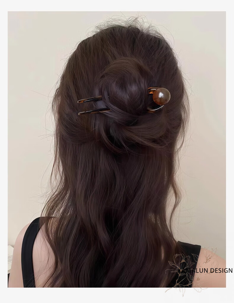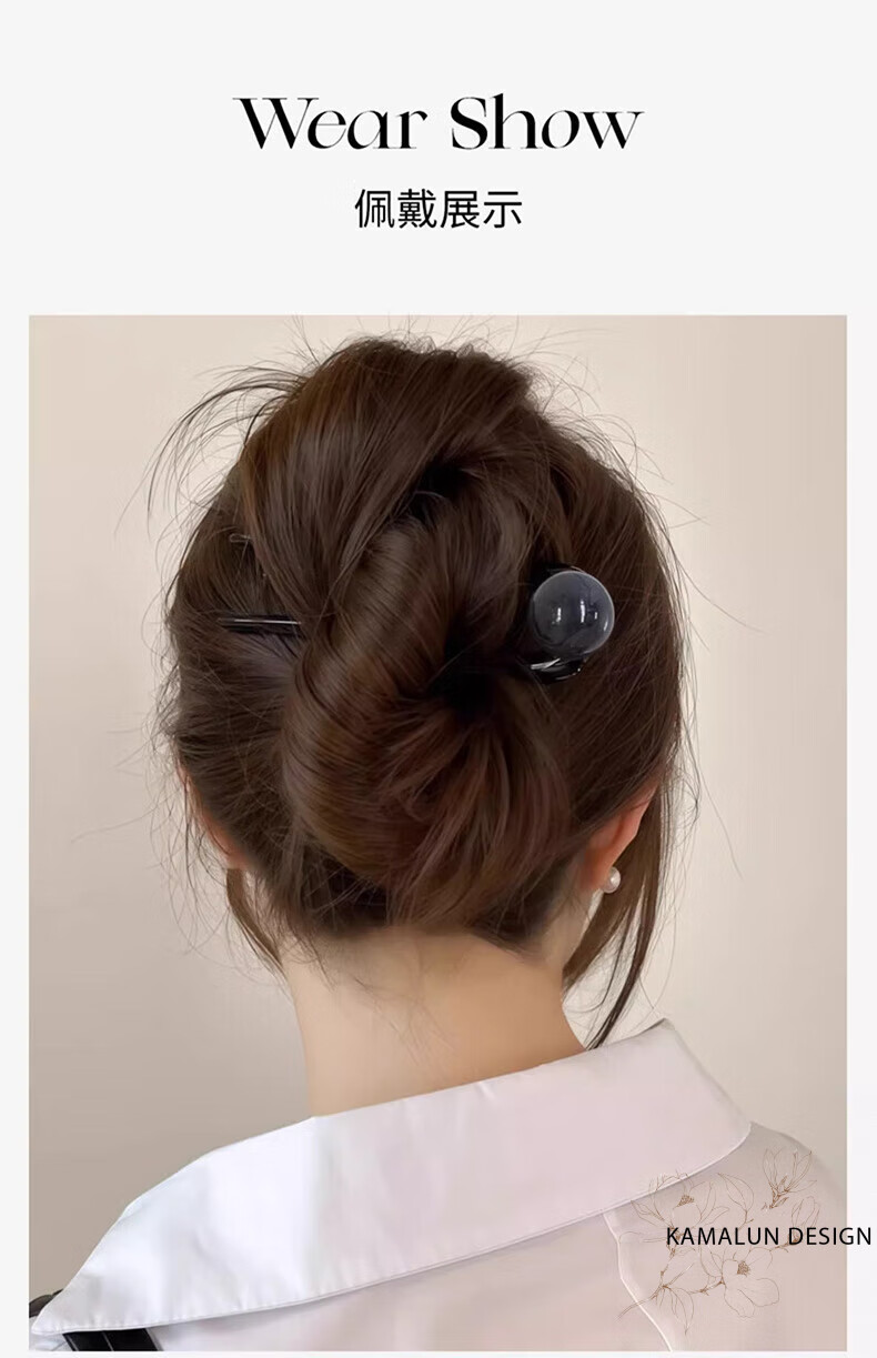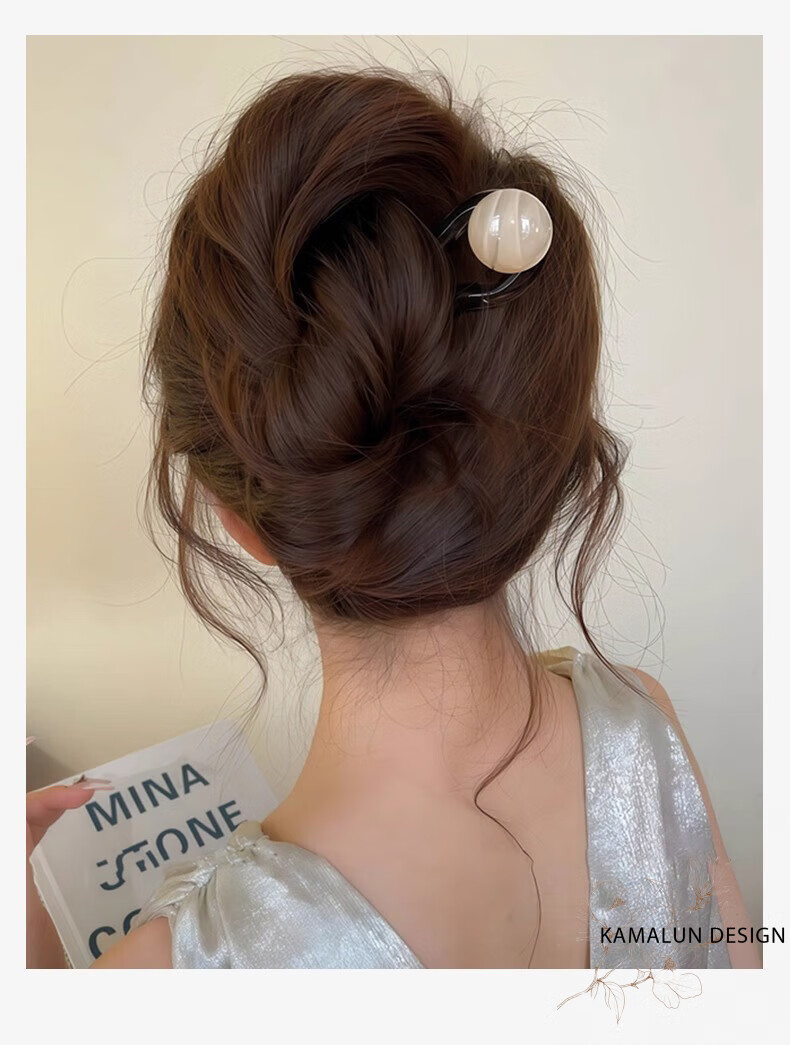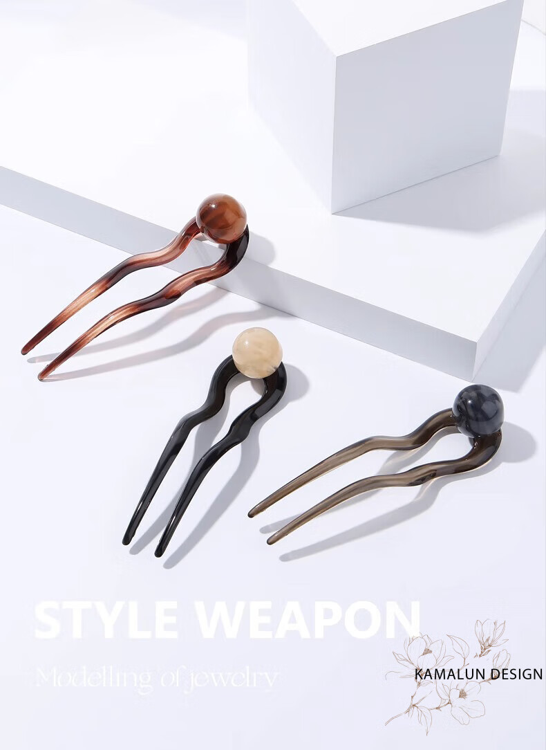 Kamalun (KAMALUN) retro U-shaped hairpin women's high-end hairpin 2025 new summer ball head hairpin hairpin at the back of the head gray black + brand gift box