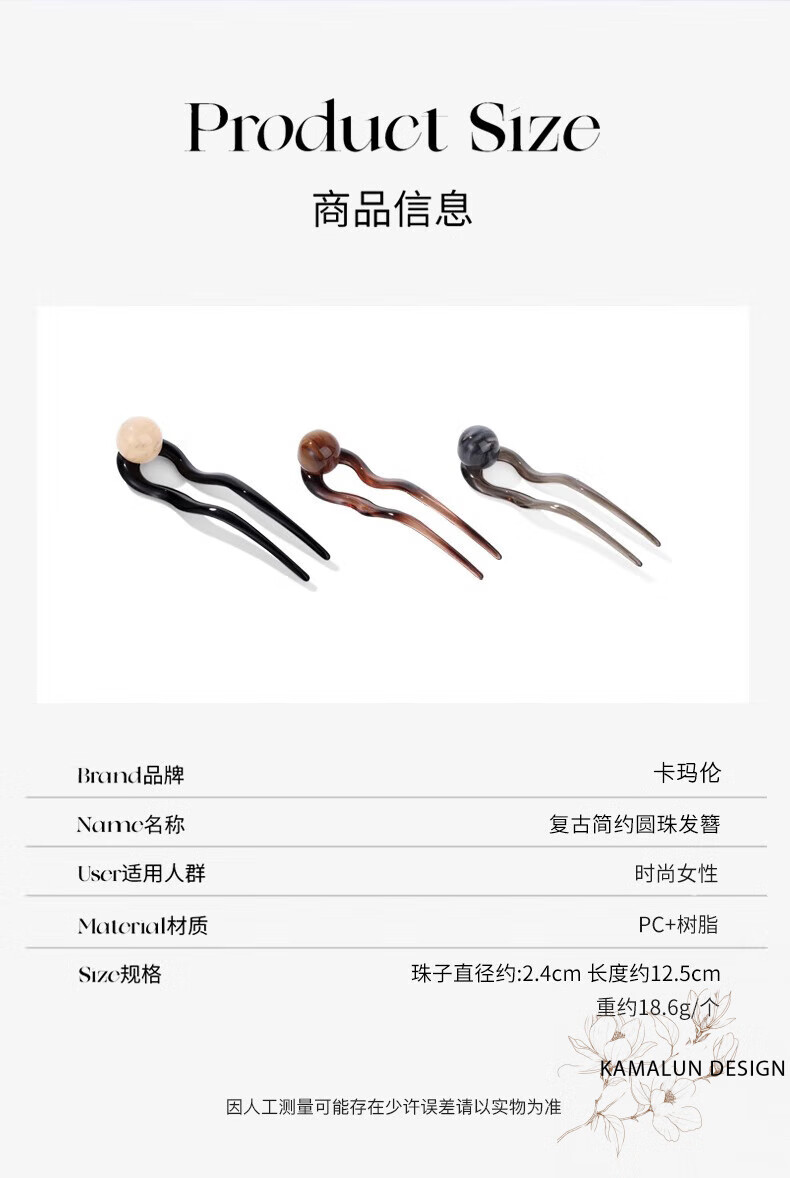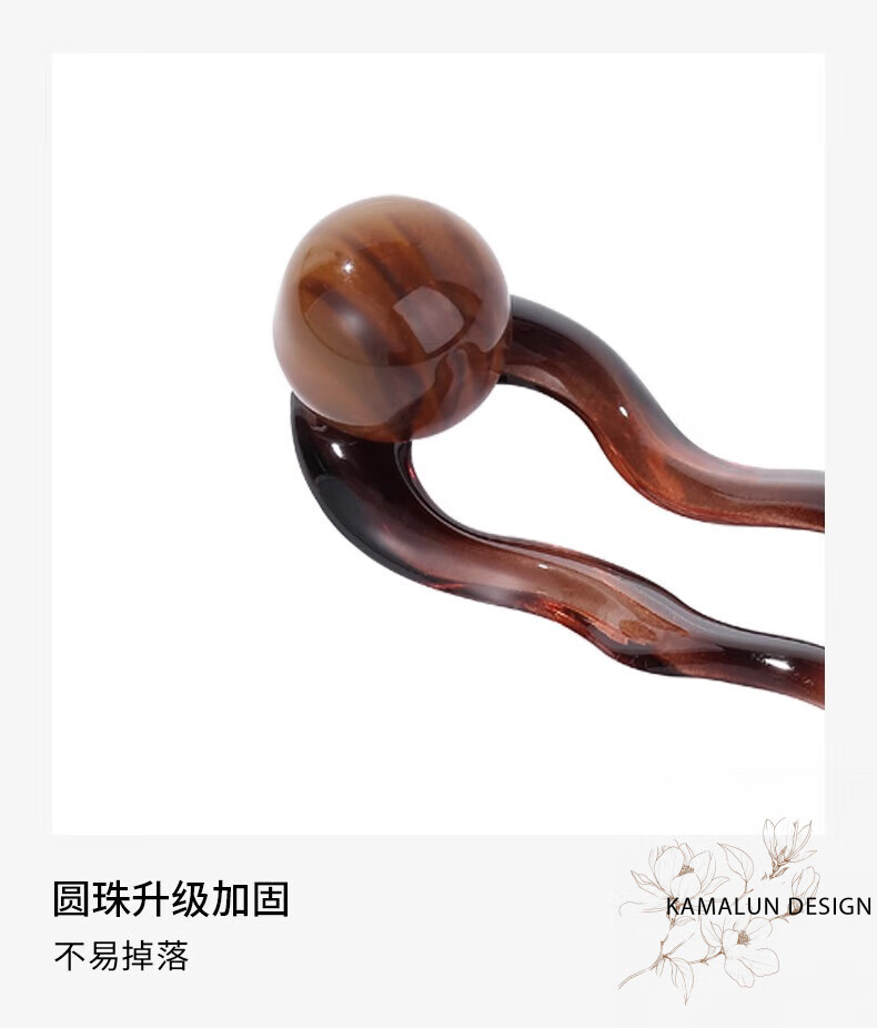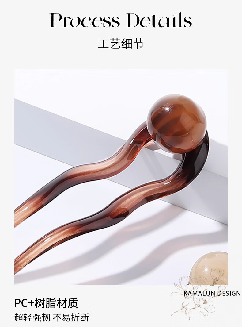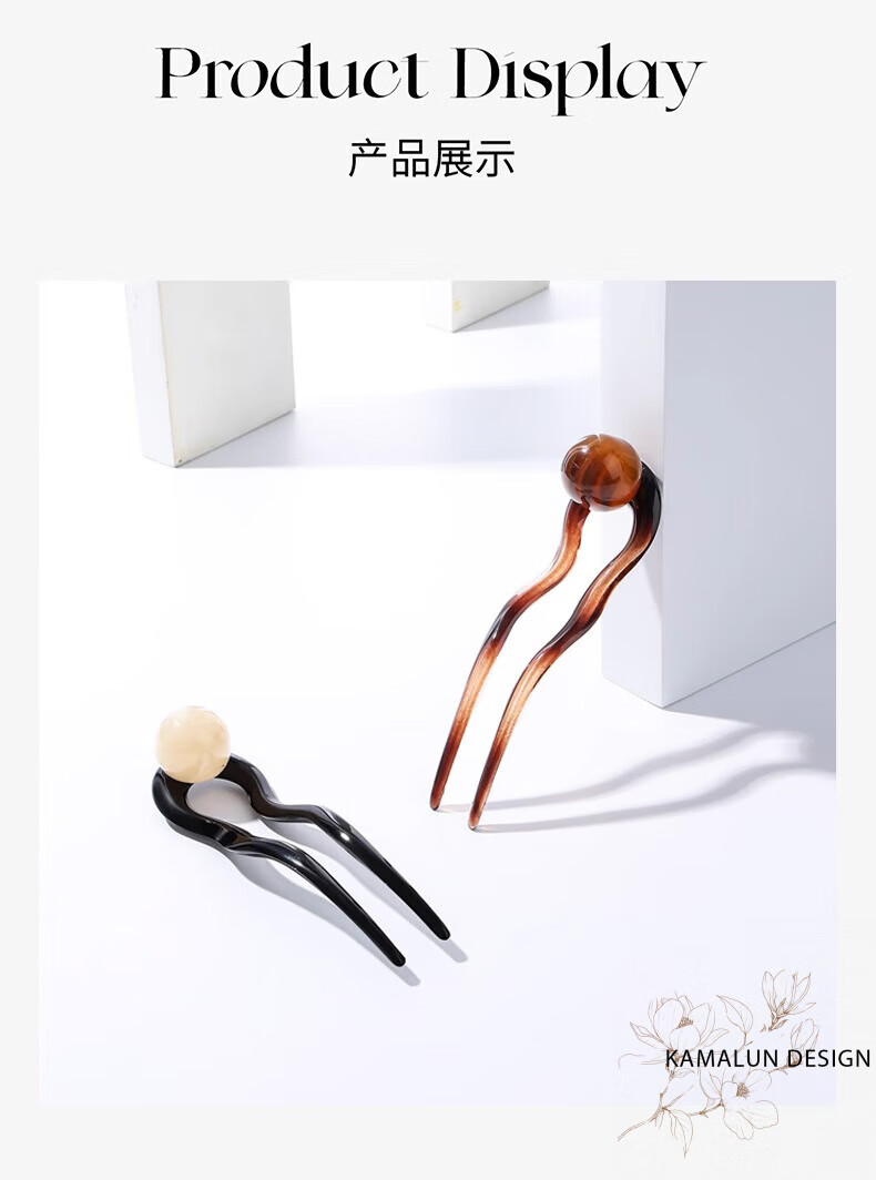 Kamalun (KAMALUN) retro U-shaped hairpin women's high-end hairpin 2025 new summer ball head hairpin hairpin at the back of the head gray black + brand gift box