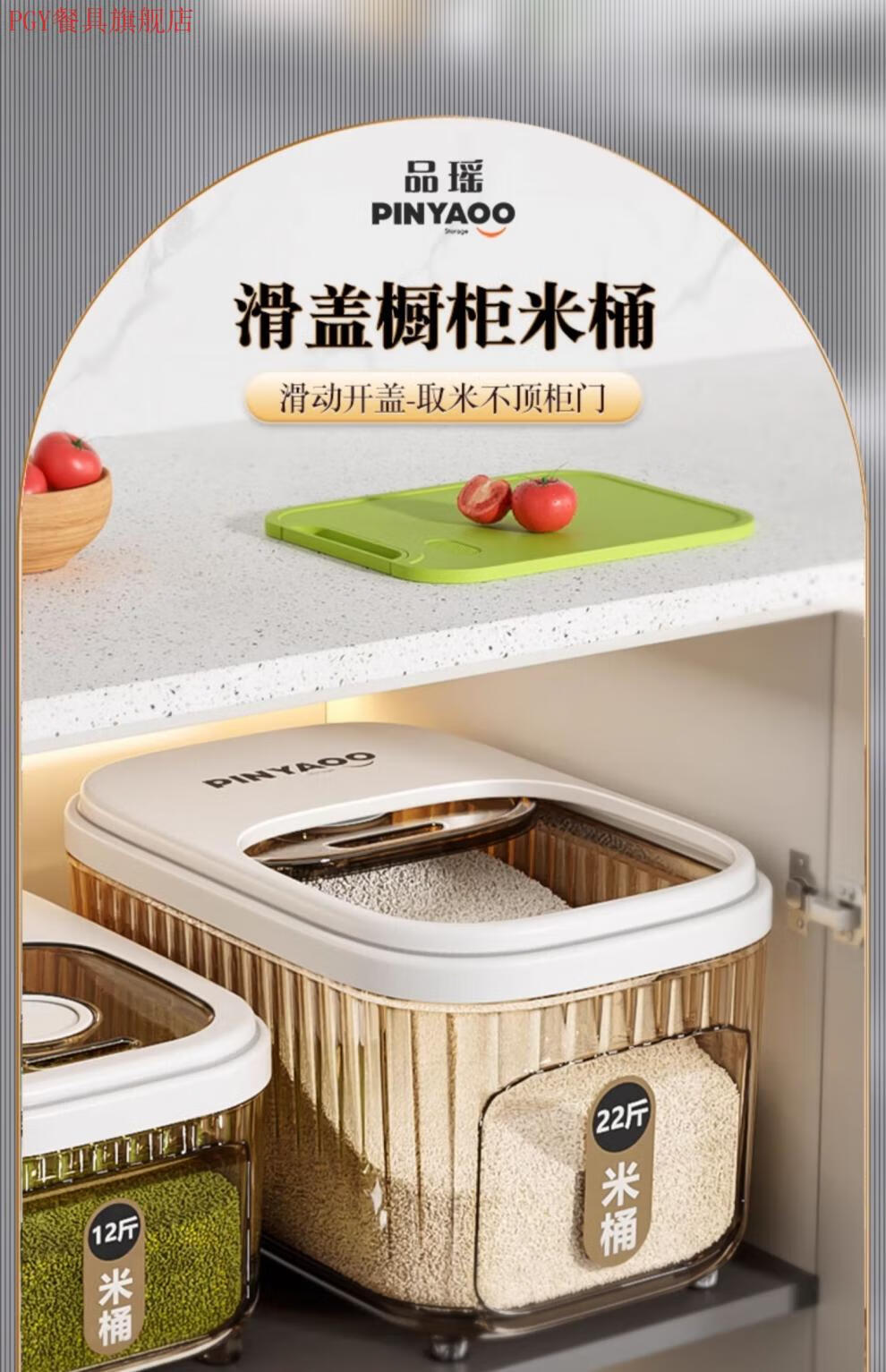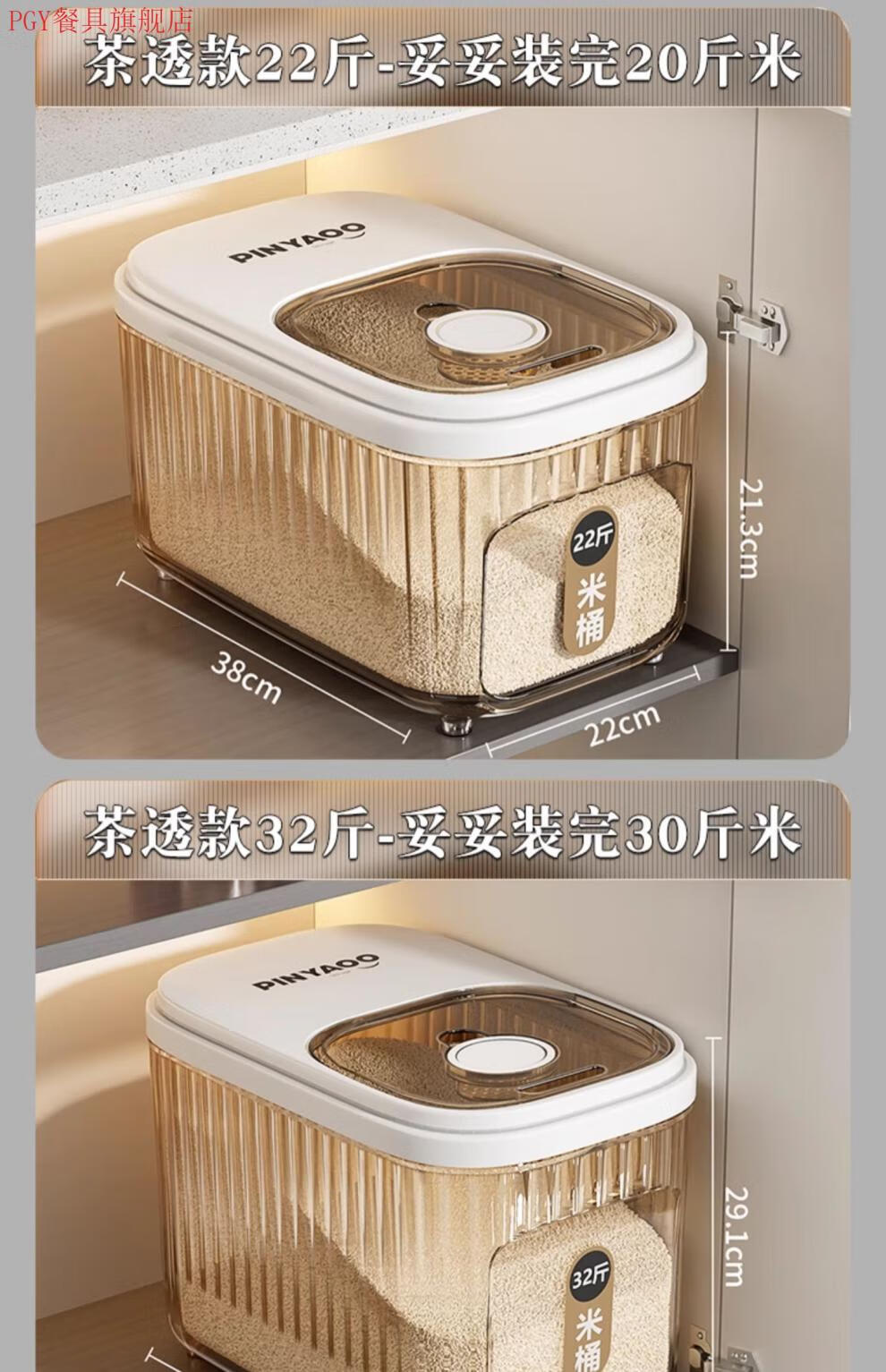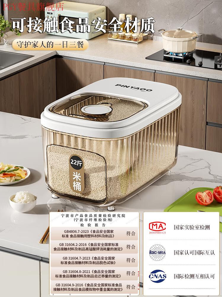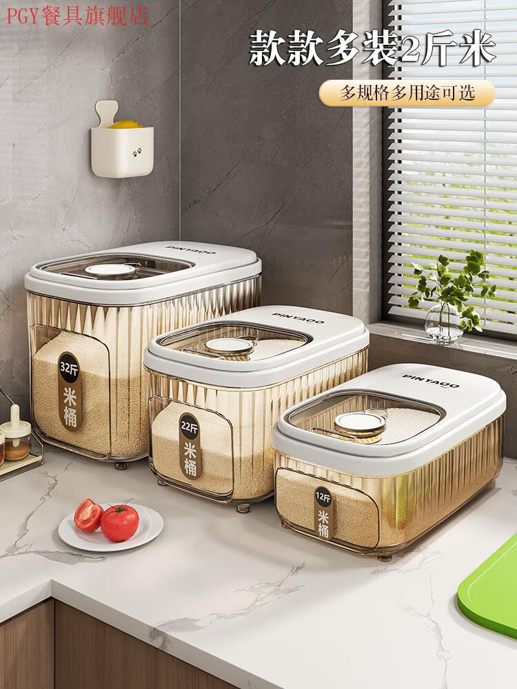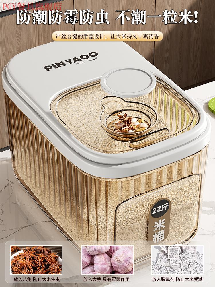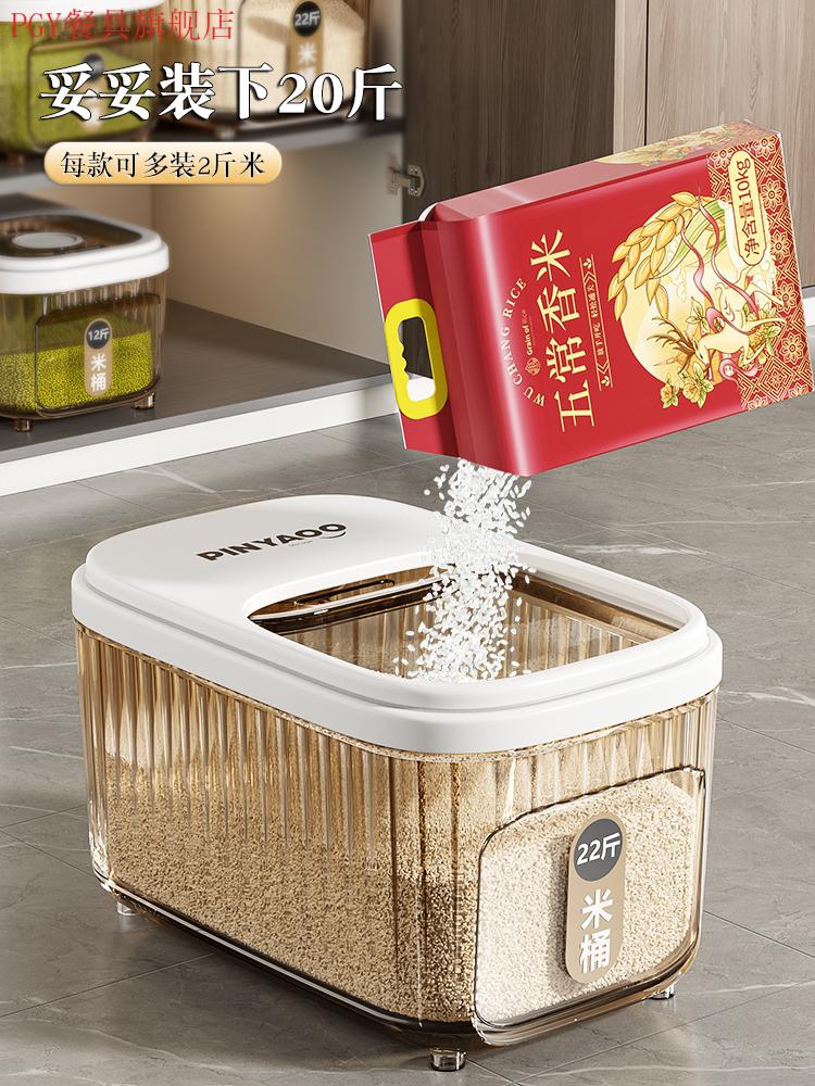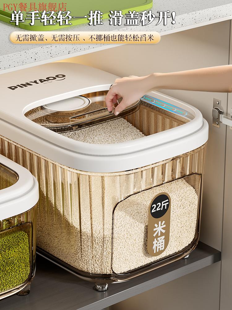 PGY Japanese quality food-grade rice bucket household 2025 new insect-proof and moisture-proof sealed grain storage box thickened tea see-through 22 Jin Jin equal to 0.5 kg sliding open lid without top cabinet