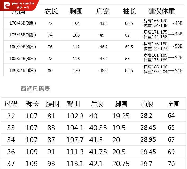 China (cm) 160-165/84-86 165-170 / 88-90 167-172 / 92-96 168-173 / 98-102 170-176 / 106-110