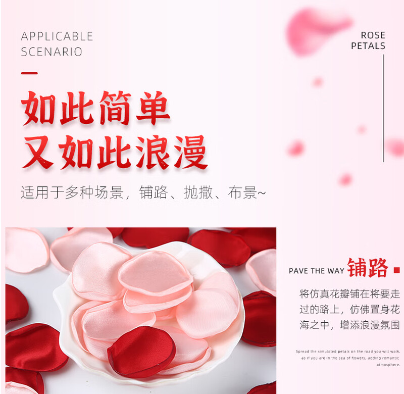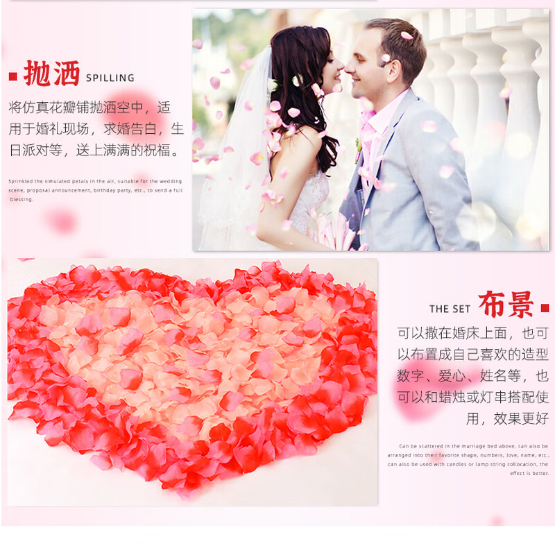 Simulated rose petals wedding hand-scattered flowers wedding room decoration Valentine's Day confession and proposal making romantic decoration sky blue single piece
