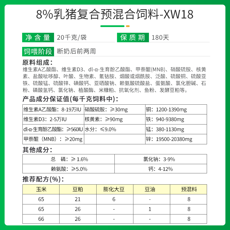 New Hope Liuhe premix pig feed for small pigs, medium pigs and large pig premix for growing fast suckling pigs-CW140 (40% concentrated feed, 20kg)