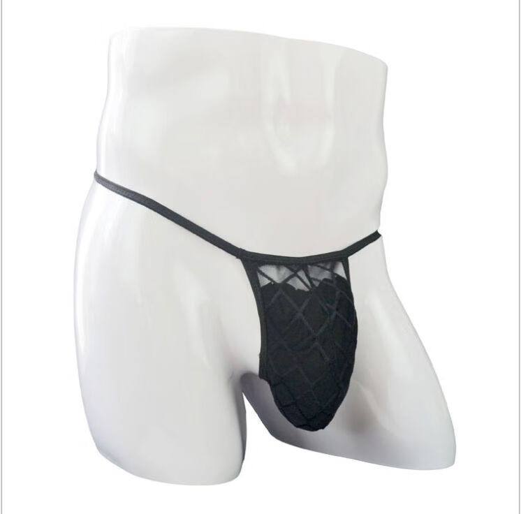 Men's Sexy Underwear Men's Special Thong Transparent Mesh T-Pants Showing Buttocks and Flirting Black M