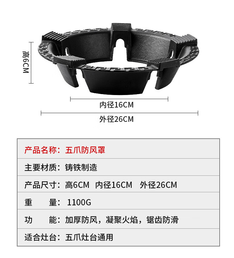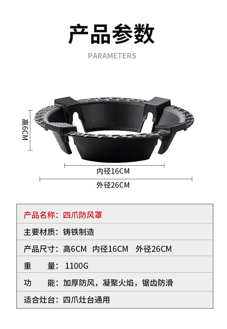 Qingchen German cast iron gas stove bracket windshield anti-slip support gas stove universal fire windshield stove shelf extra thick cast iron 4-claw universal 1 pack (double