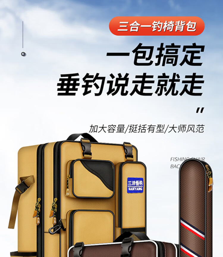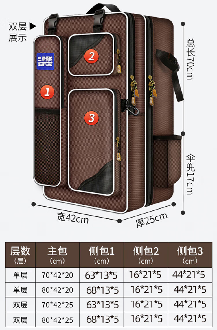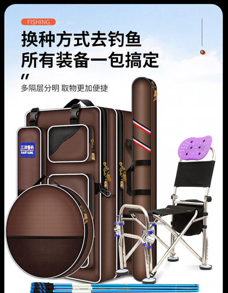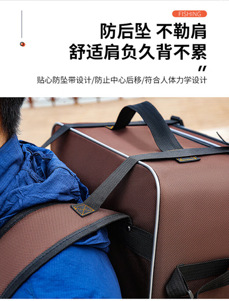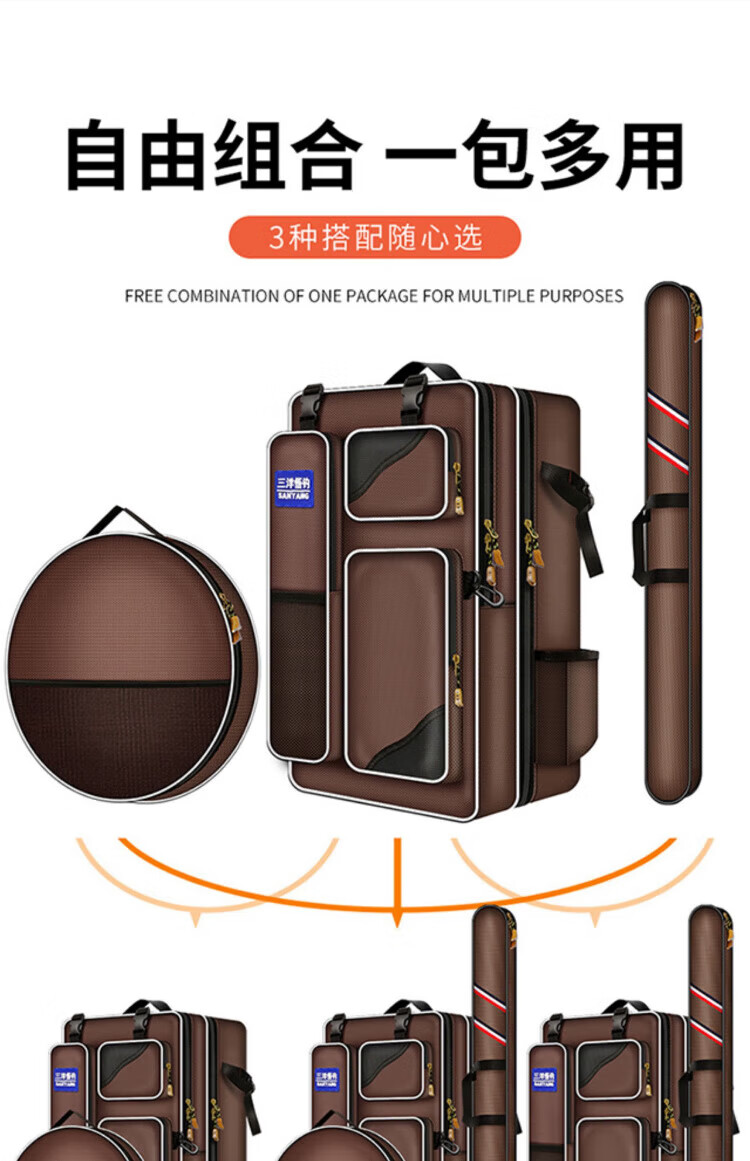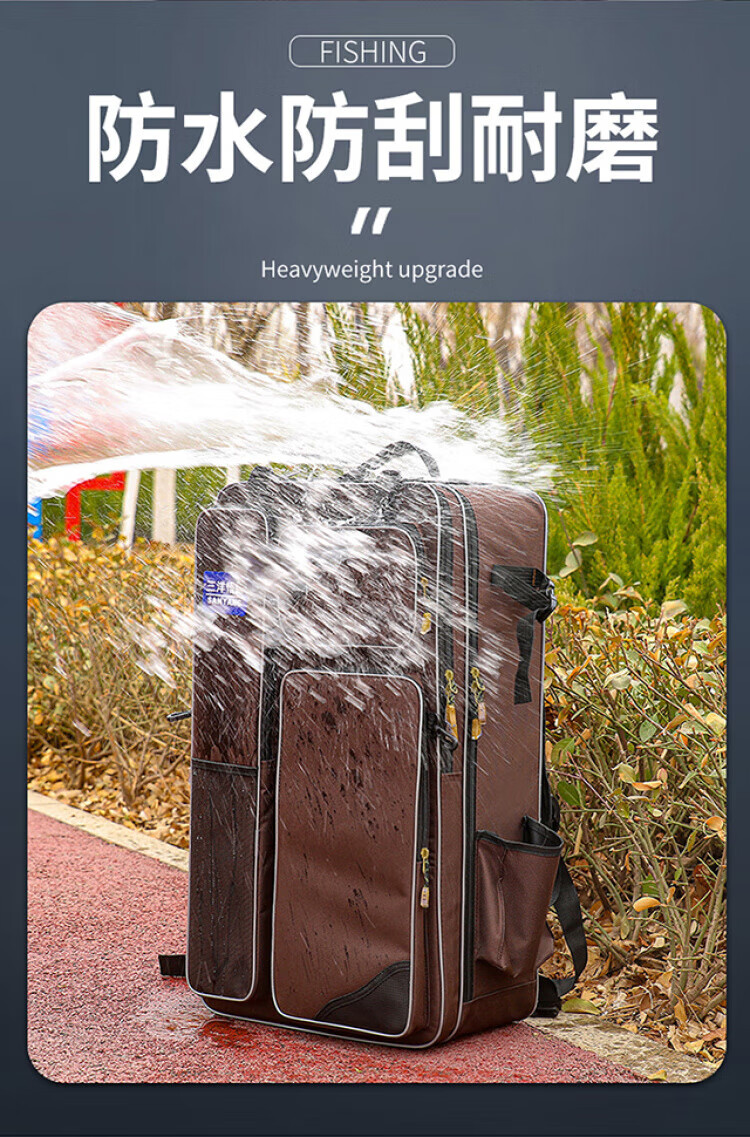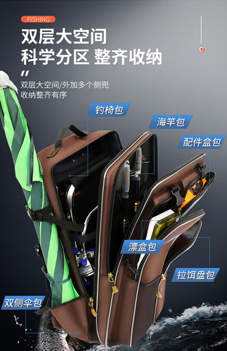 OIMG fishing rod bag, fishing chair backpack, fishing gear bag, fishing chair bag, backpack, fish bag, multifunctional fishing bag 7080, capacity 70cm, single layer brown, main bag only