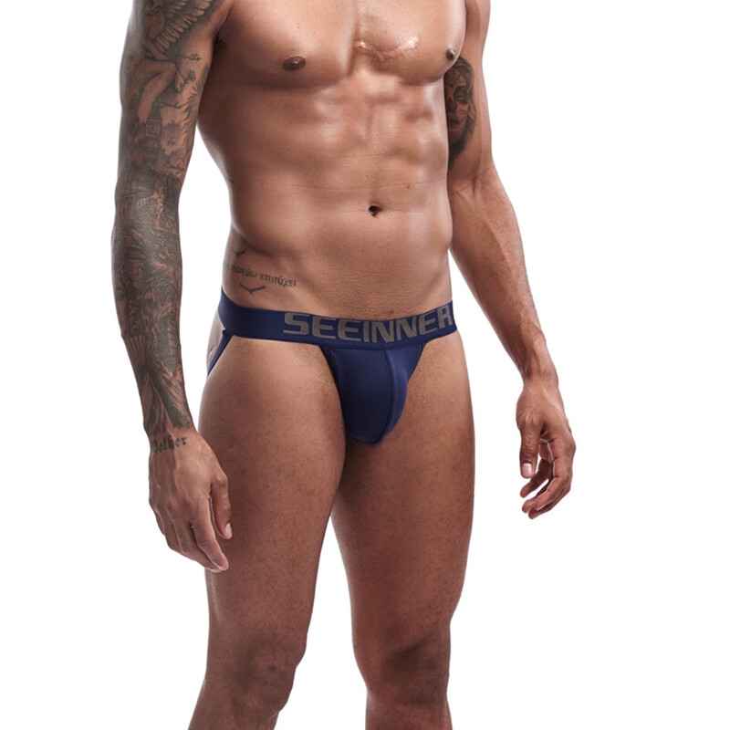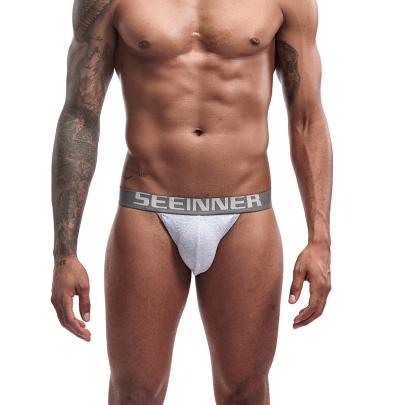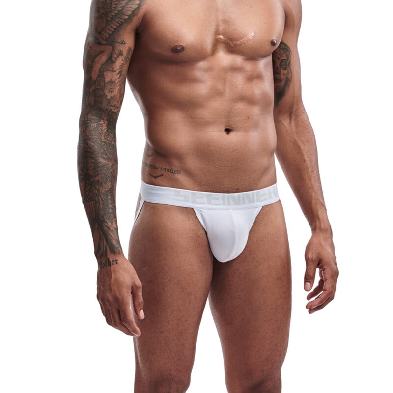 Tserekle men's double-butt underwear pure cotton thong solid color sexy comfortable buttocks breathable combed threaded cotton men's underwear trendy white M
