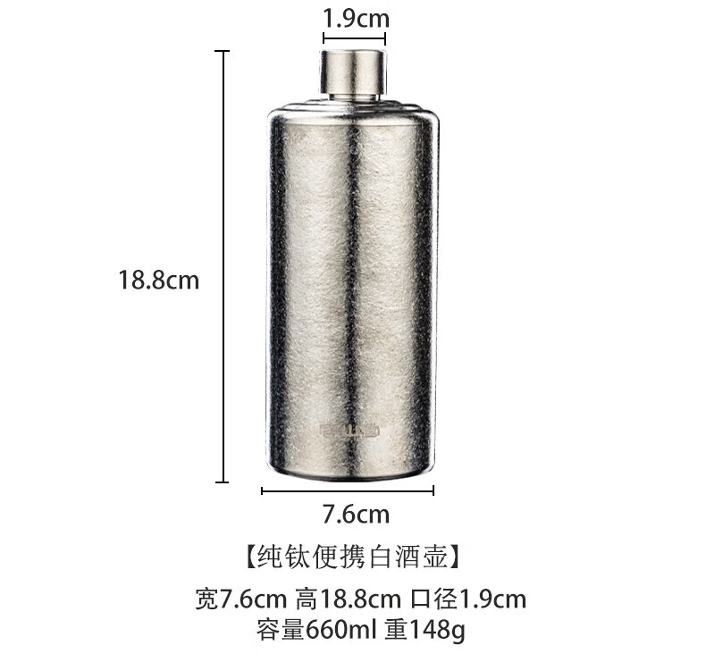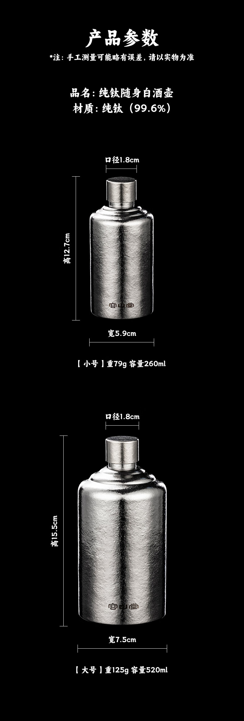 Rongshantang Pure Titanium Outdoor Portable Wine Bottle Portable High-End Exquisite Empty Wine Bottle White Wine Bottle Small Wine Bottle for White Wine Pure Titanium Portable White Wine Bottle - Medium 520ml