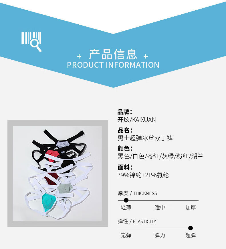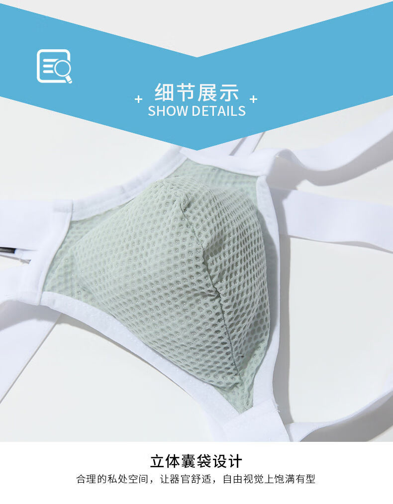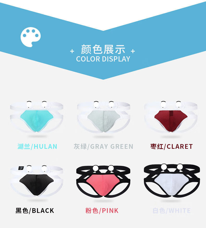GAY men's gay low-waist stretch thong breathable hollow U convex color matching sexy adult sexy adult underwear Lake Blue S