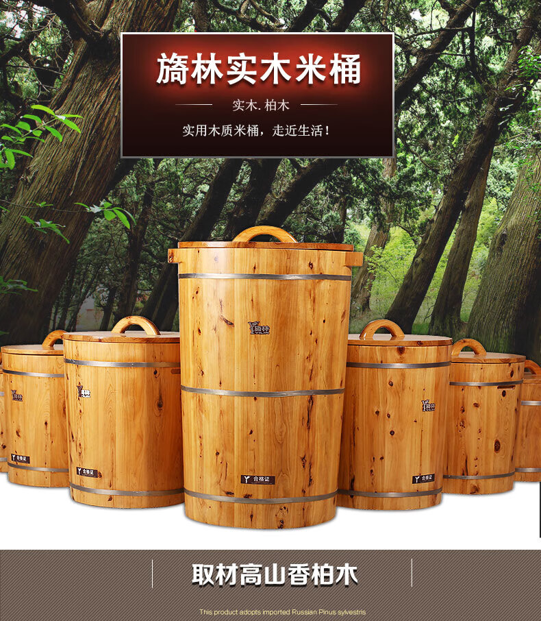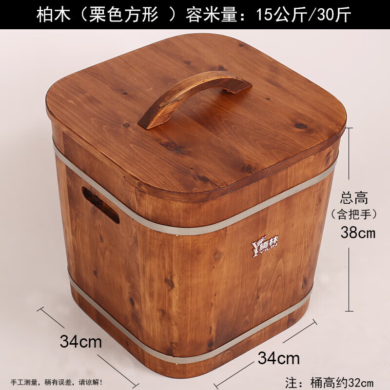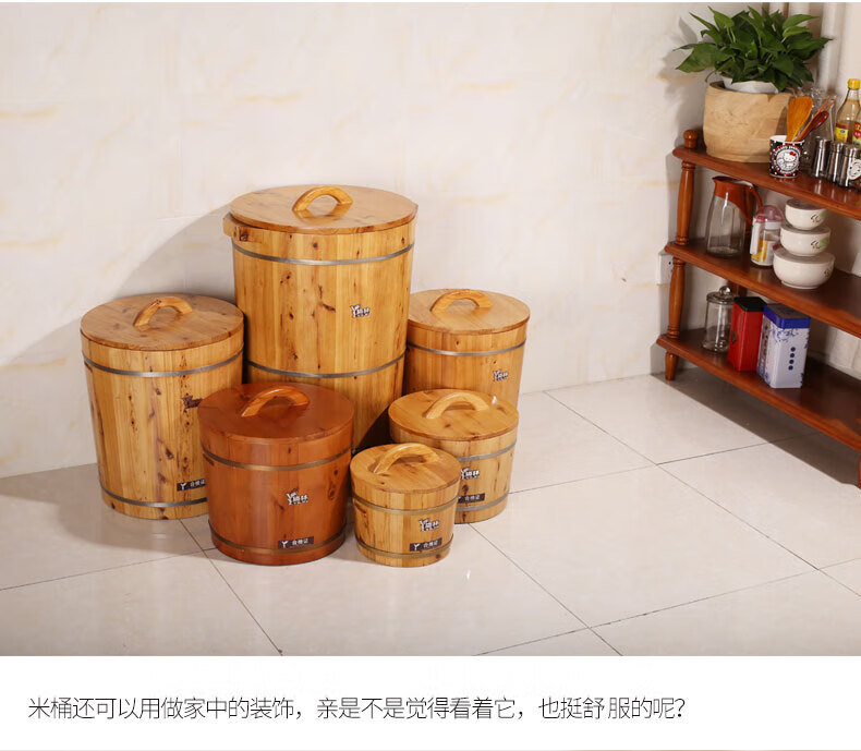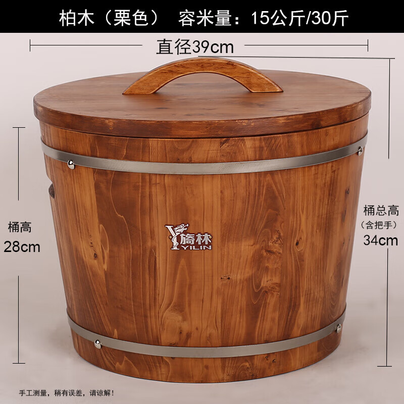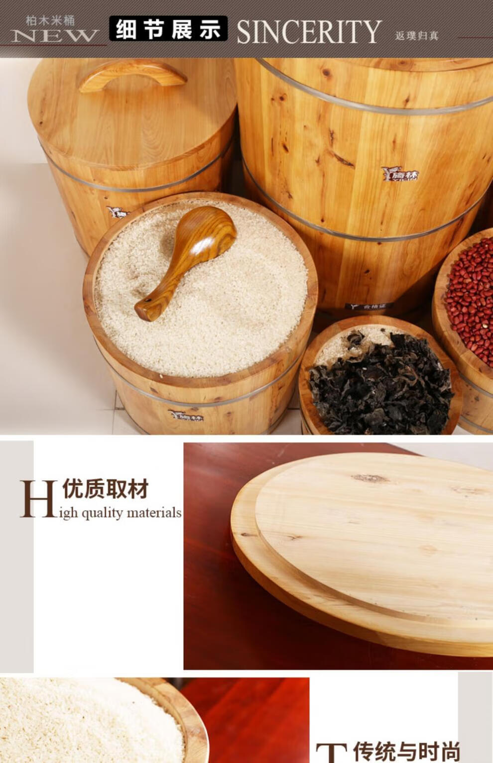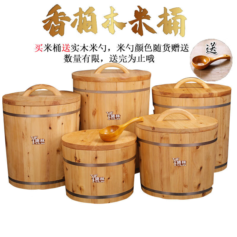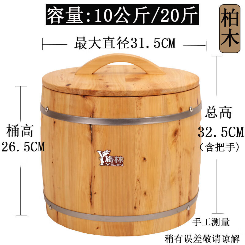 LISM solid wood rice bucket 50 Jin Jin equals 0.5 kg, sealed, moisture-proof 100 Jin Jin equals 0.5 kg Rice storage box household noodle bucket rice cylinder 20 Jin Jin equals 0.5 kg 30 Jin Jin equals 0.5 kg cedar black walnut (drum-shaped)_meter capacity (10_kg_20