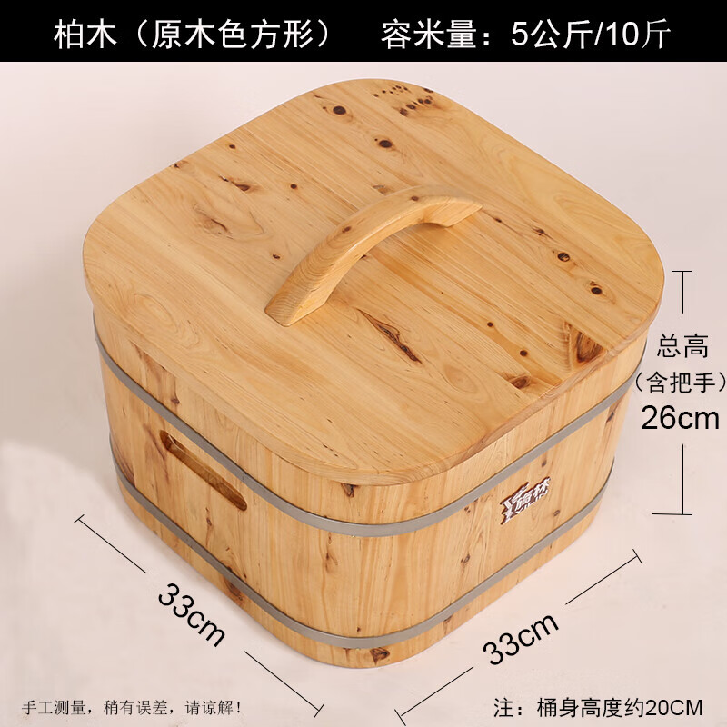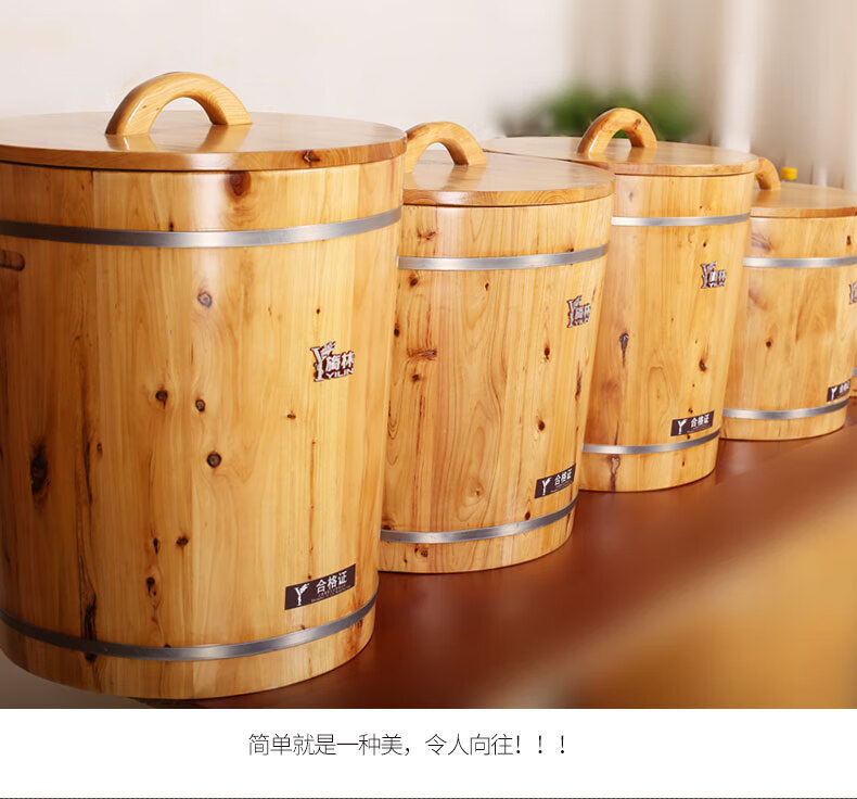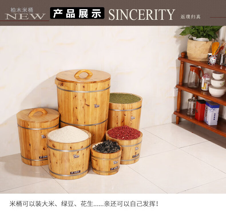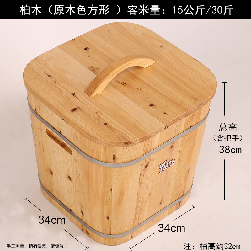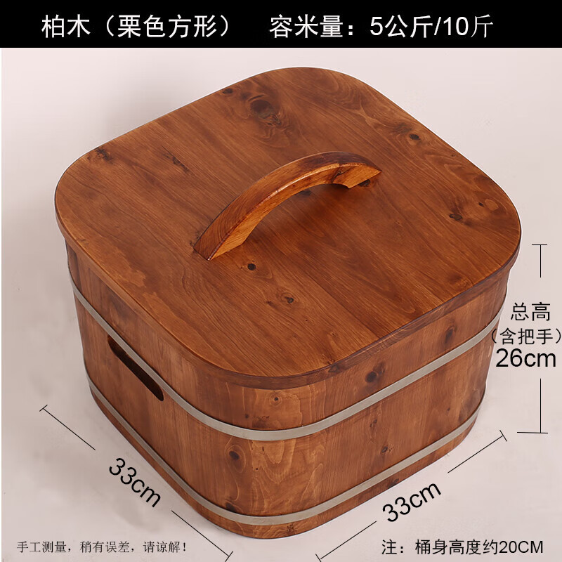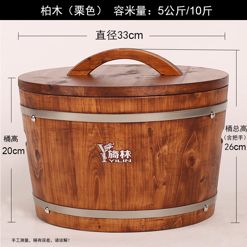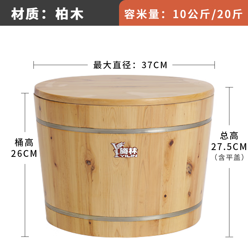 LISM solid wood rice bucket 50 Jin Jin equals 0.5 kg, sealed, moisture-proof 100 Jin Jin equals 0.5 kg Rice storage box household noodle bucket rice cylinder 20 Jin Jin equals 0.5 kg 30 Jin Jin equals 0.5 kg cedar black walnut (drum-shaped)_meter capacity (10_kg_20