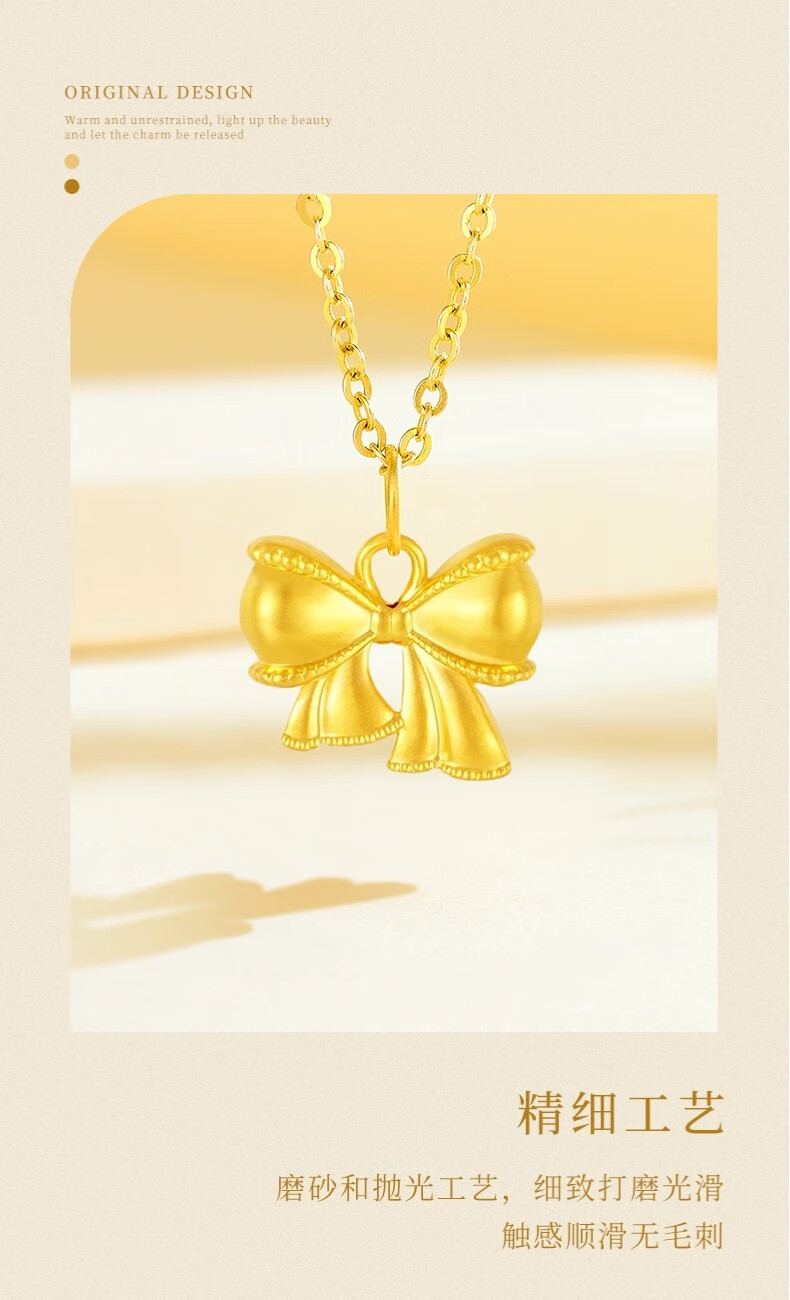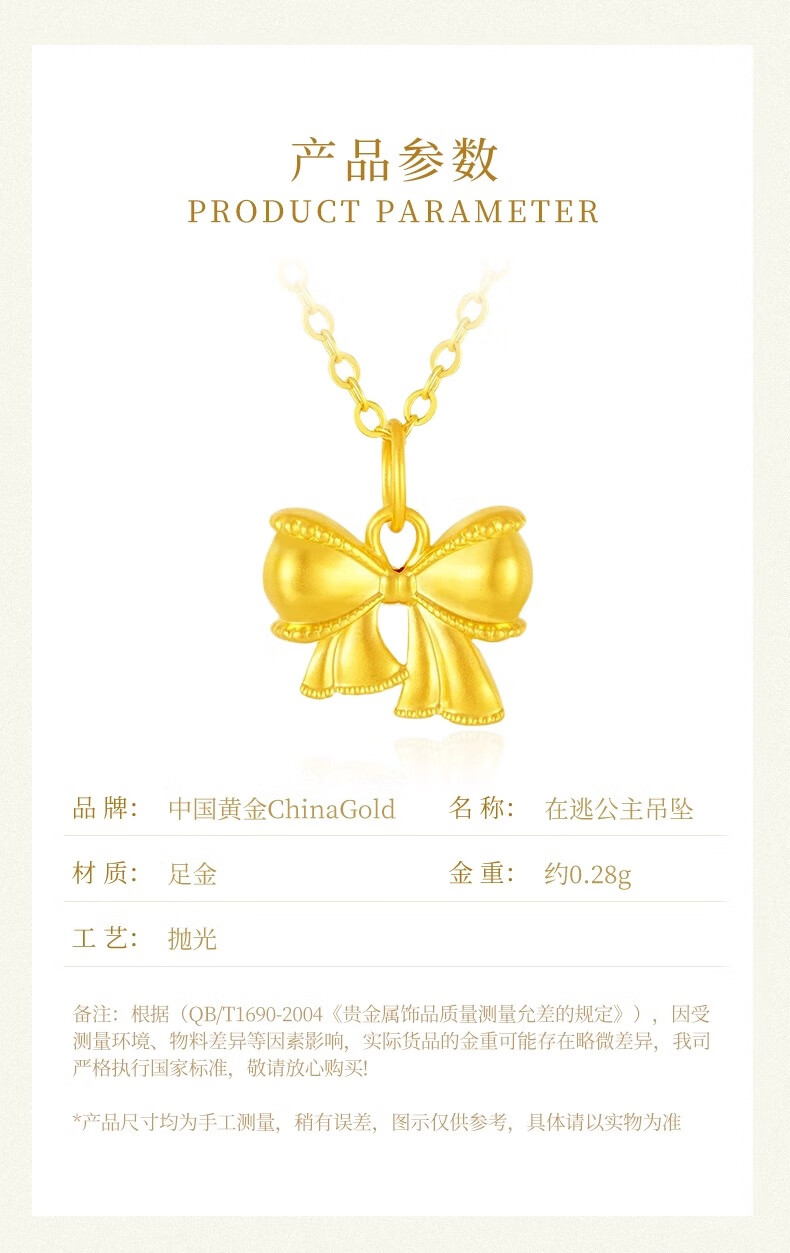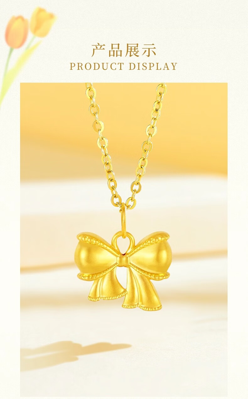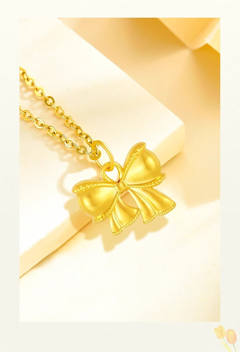 China Gold (CHINA GOLD) pure gold bow pendant for women, new fugitive princess necklace, birthday and wedding gift for girlfriend, pure gold pure gold bow, about 0.28g-0.3g, free sterling silver chain