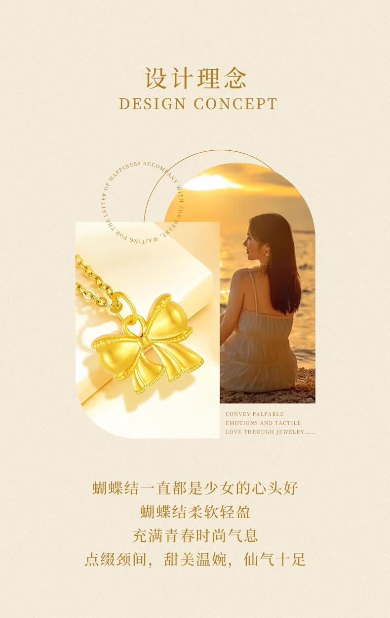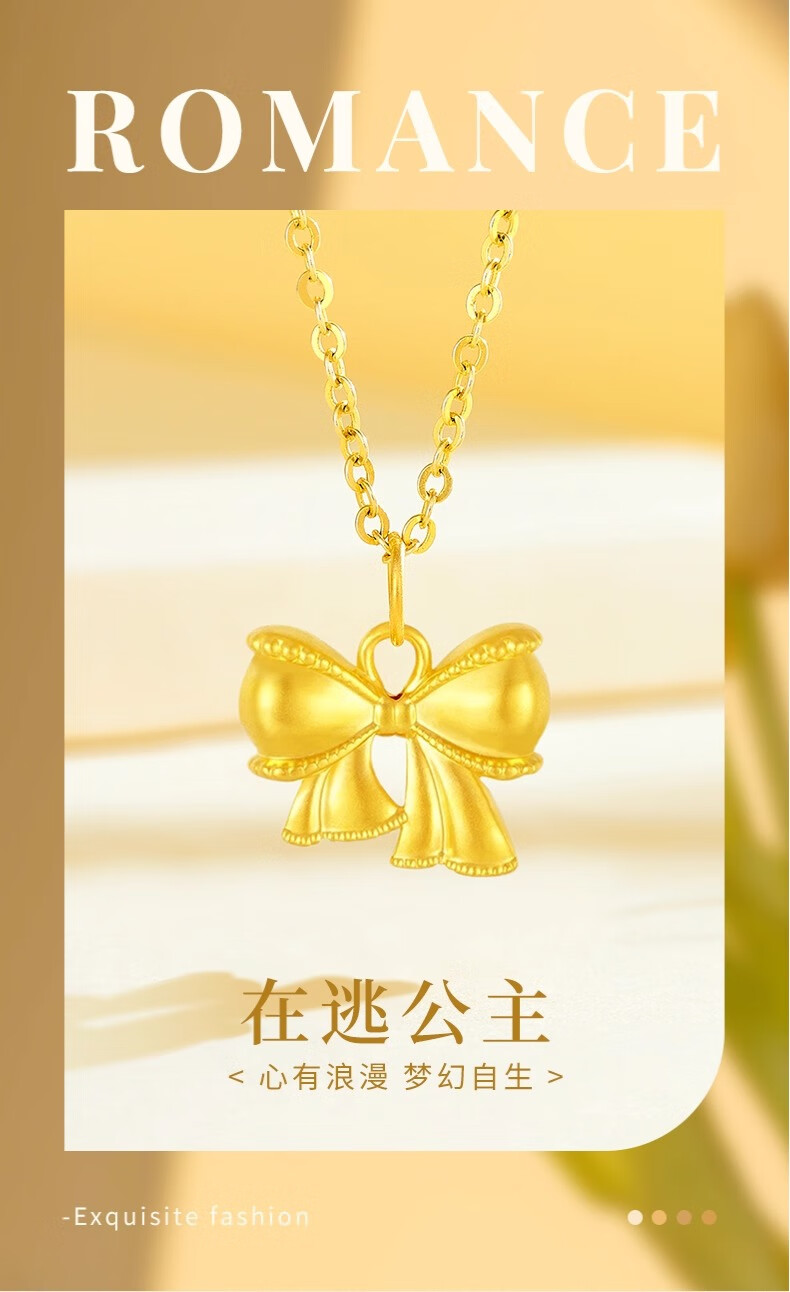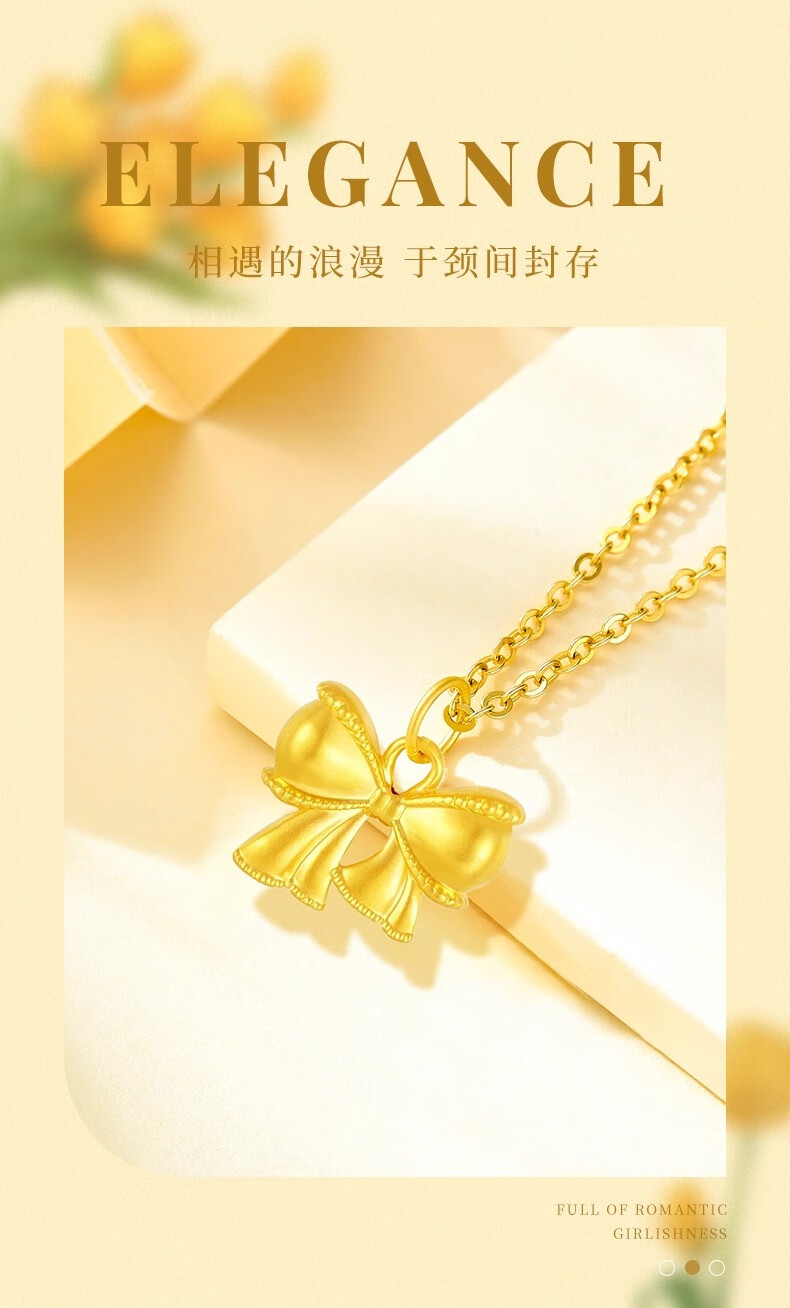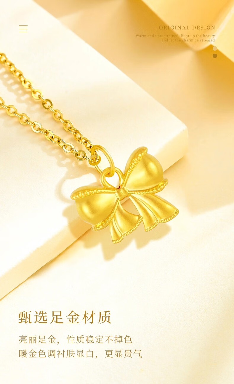 China Gold (CHINA GOLD) pure gold bow pendant for women, new fugitive princess necklace, birthday and wedding gift for girlfriend, pure gold pure gold bow, about 0.28g-0.3g, free sterling silver chain