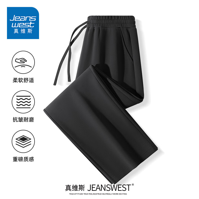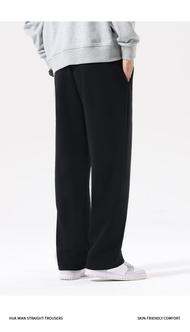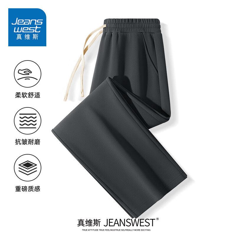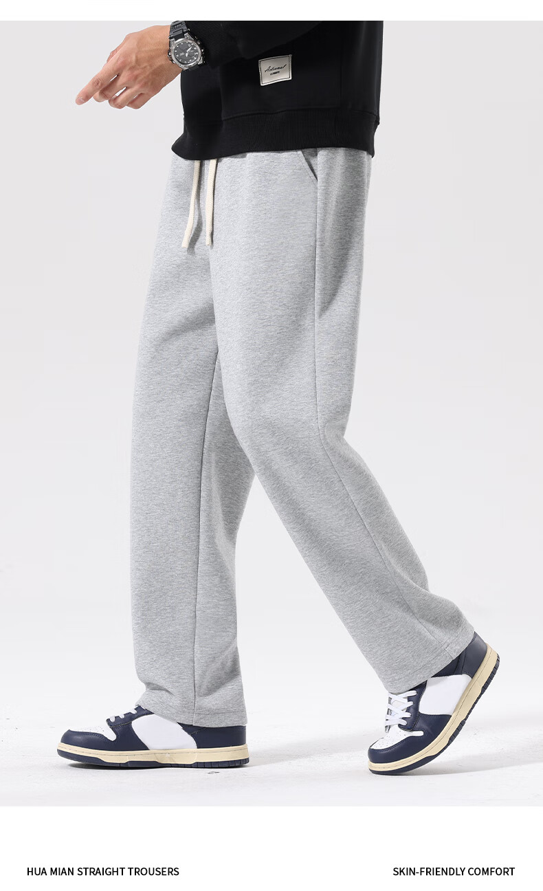 Jeanswest Cotton Feel Straight Pants Men's Autumn and Winter Heavy Loose Sports Thickened One-piece Velvet Pants Men's Wide-Leg Casual Pants Navy (Solid Color) L (175) (Priority for collection and purchase)